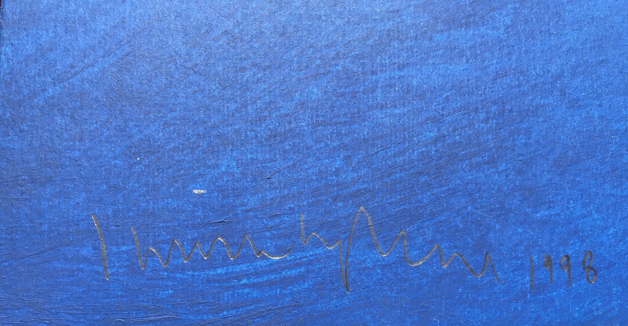 Ik verkoop een mooi uniek werk van Gilbert Swimberghe. Het betreft olieverf op dik papier. Je kan de diverse blauwe lagen boven mekaar zien. Afmetingen 76cm x 56cm. Het werk is gehandtekend in potlood en gedateerd 1998. Het werk is in zeer goede staat.