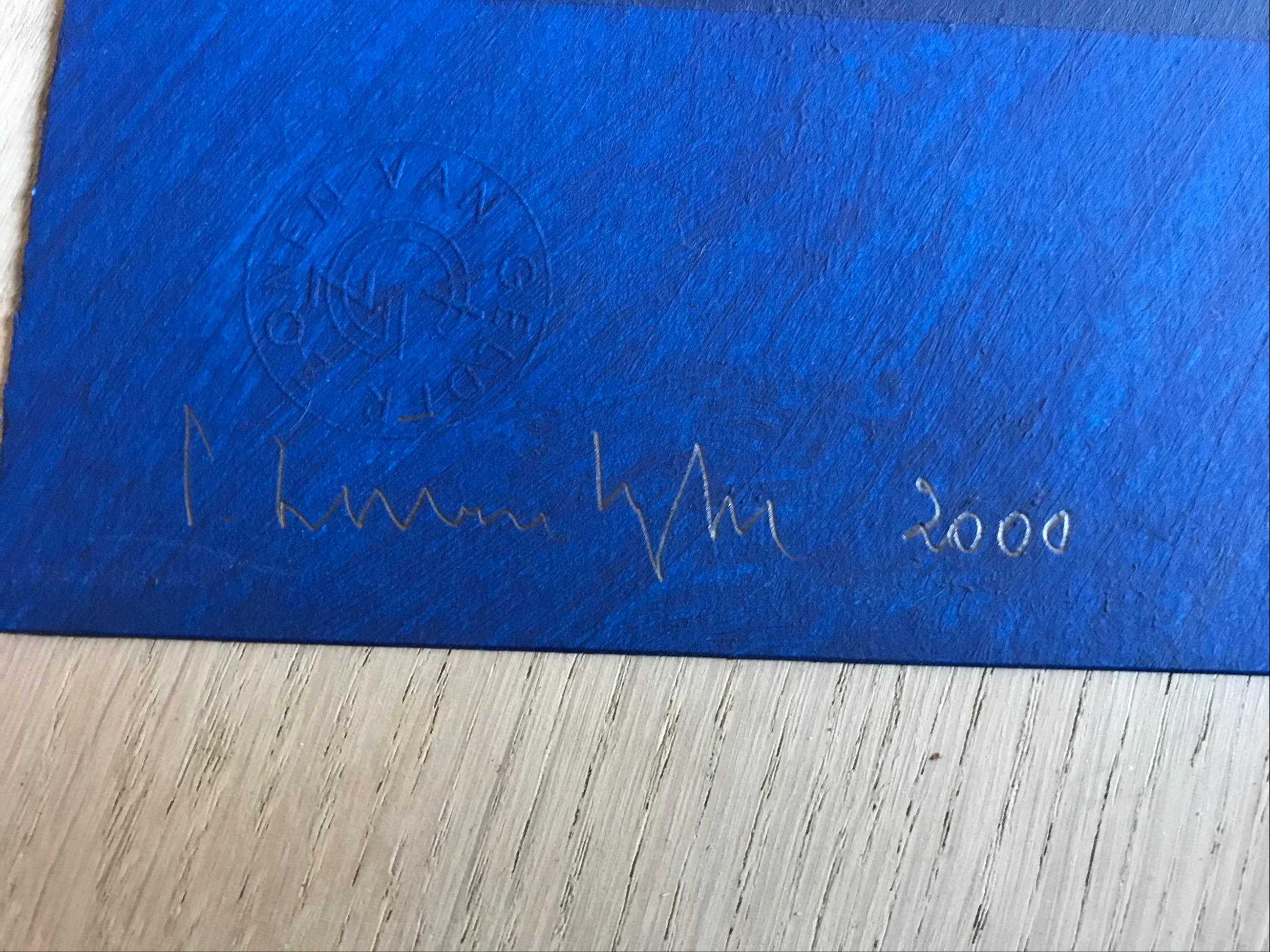 Ik verkoop een mooi uniek werk van Gilbert Swimberghe. Het betreft olieverf op dik papier. Je kan de diverse blauwe lagen boven mekaar zien. Afmetingen 76cm x 56cm. Het werk is gehandtekend in potlood en gedateerd 2000. Het werk is in zeer goede staat.