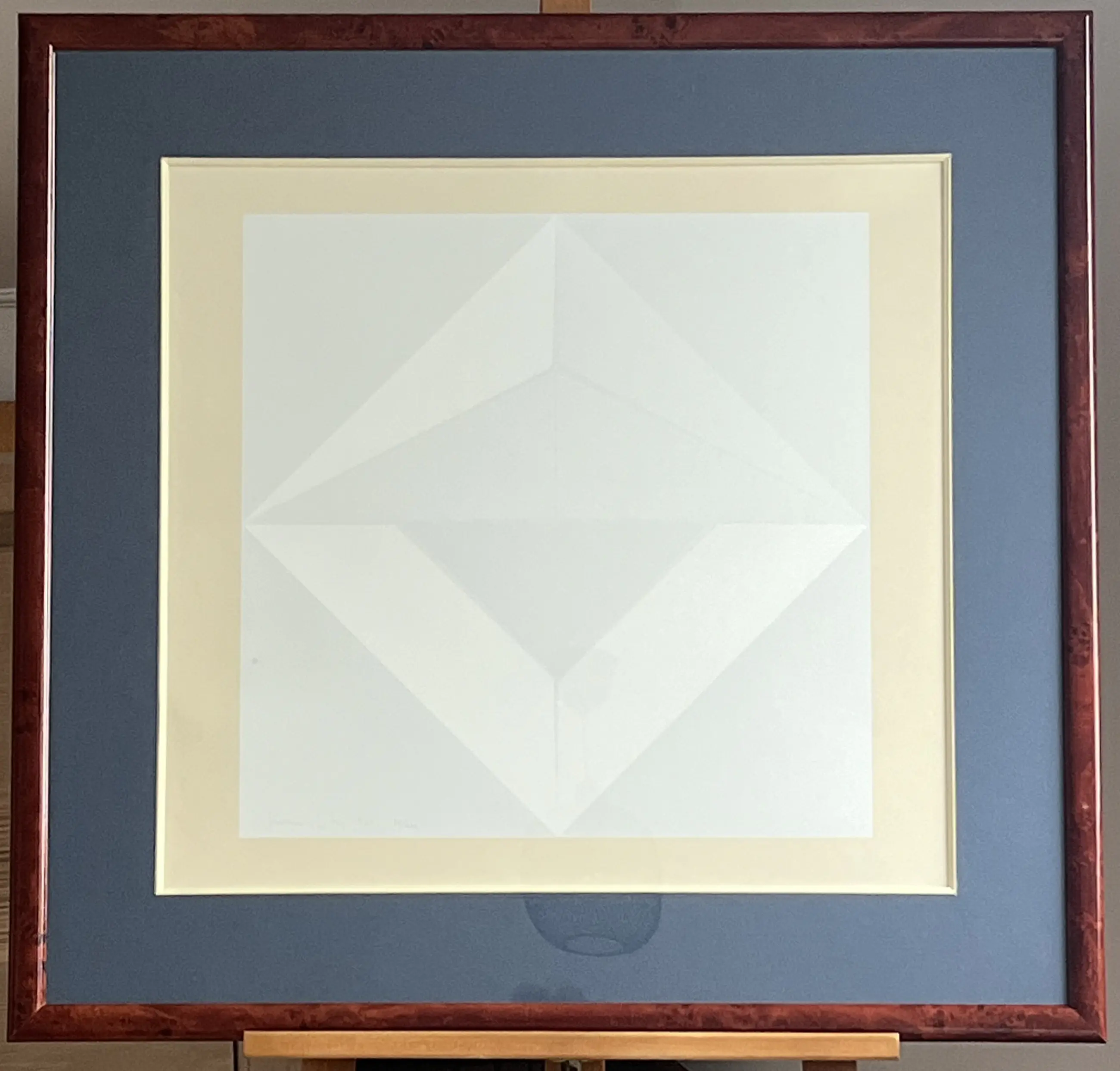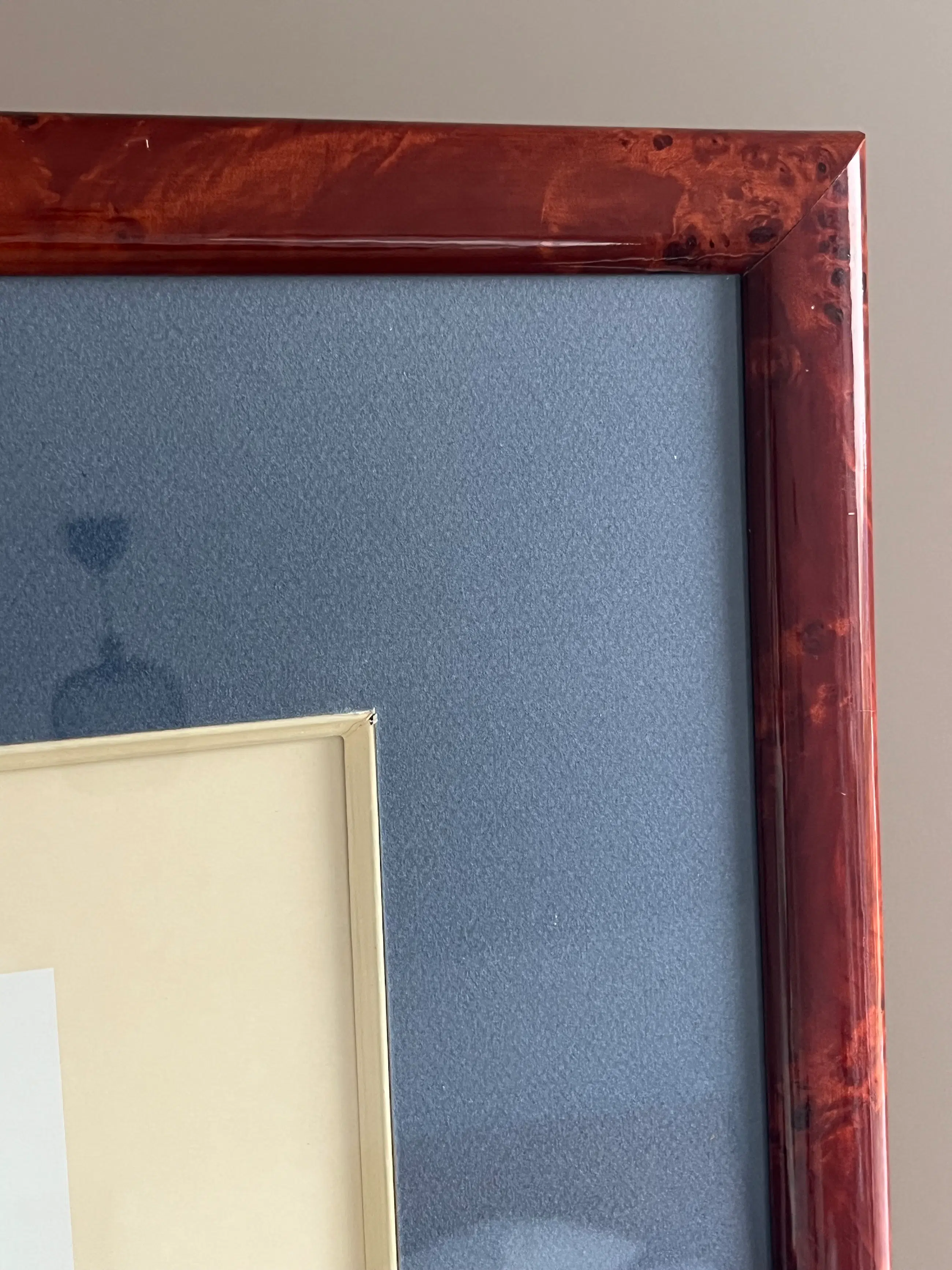 Zeldzaam en decoratief werk Degelijk passe-partout in harmonie met houten kader in prachtig wortelhout. Werk zit achter glas.