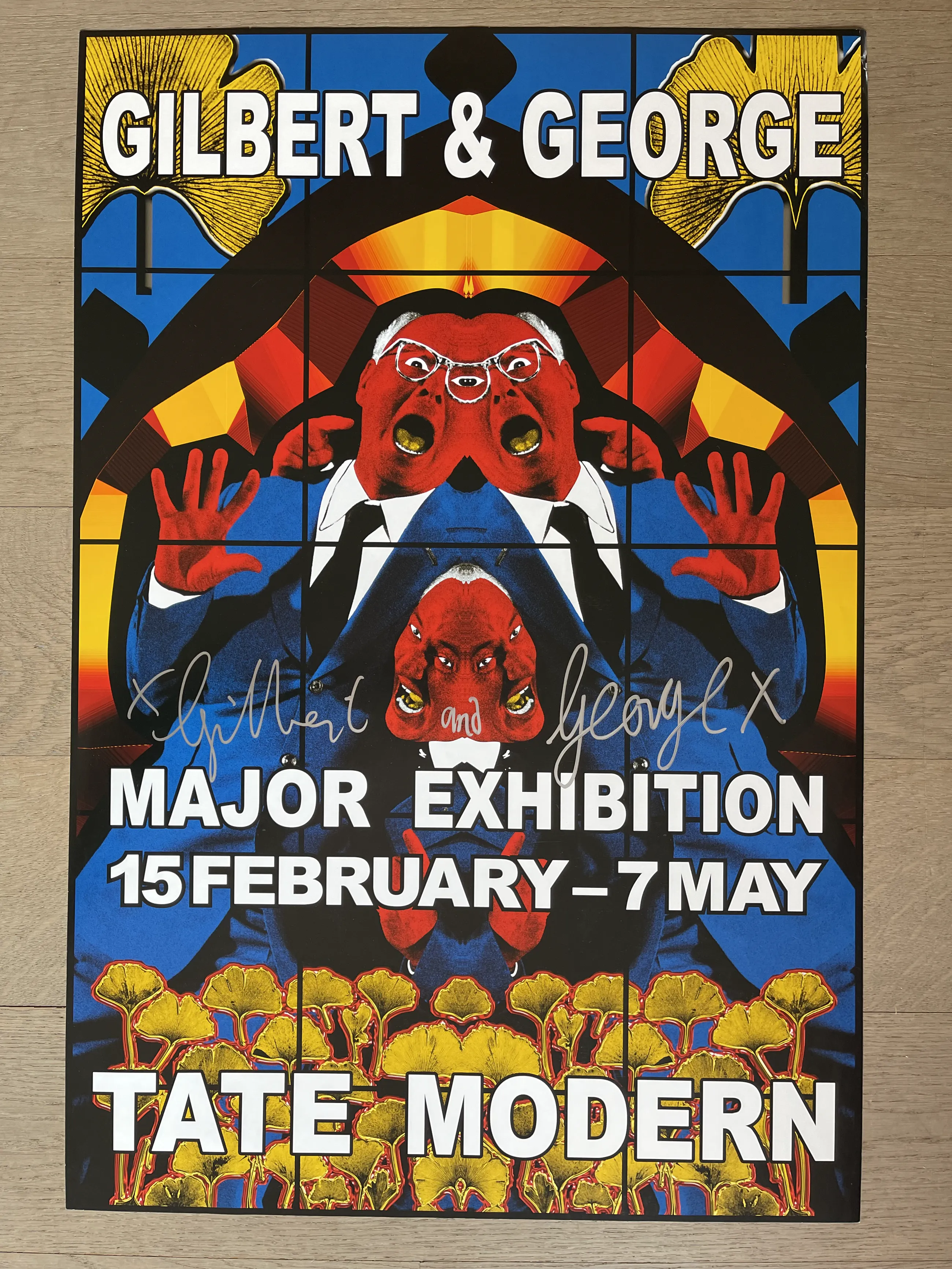 Hierbij verkoop ik deze affiche van Gilbert & George. Dit is een affiche van een tentoonstelling van het Museum Tate Modern London. De affiche is handgetekent in viltstift door de kunstenaars Gilbert & George