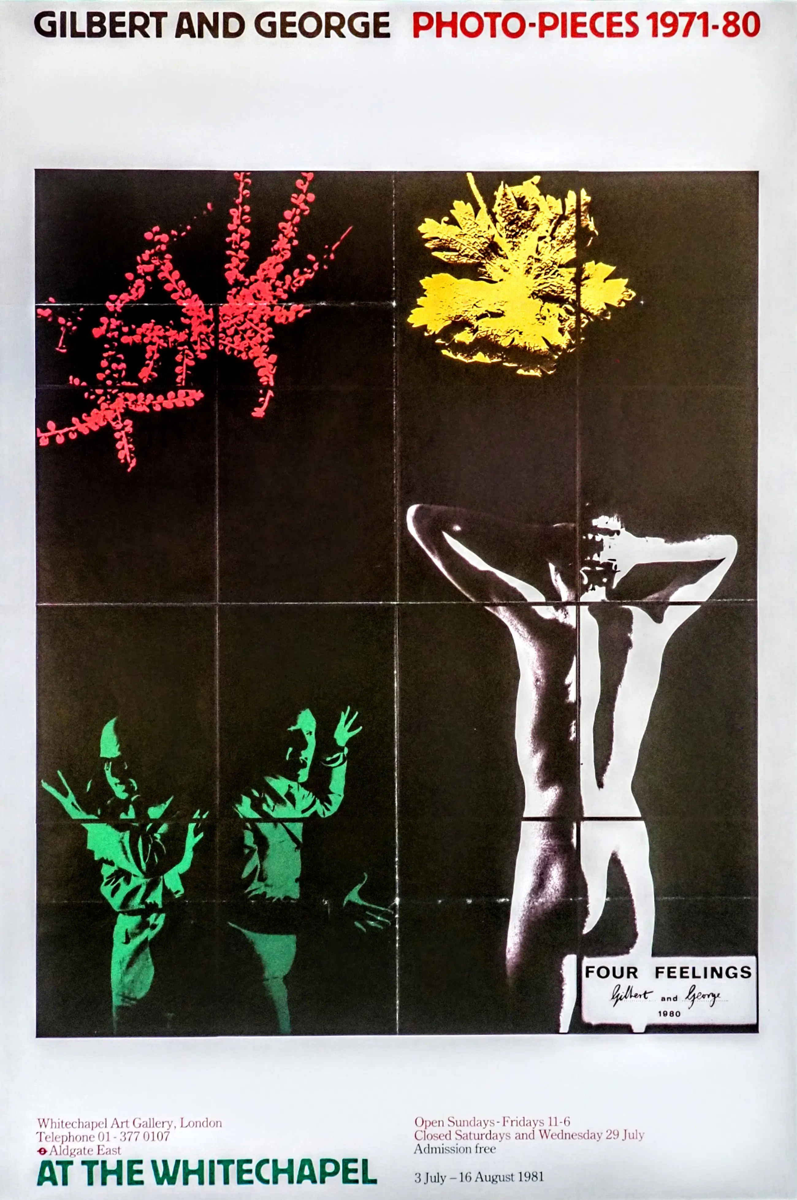 Tentoonstellingsaffiche uitgegeven ter gelegenheid van de tentoonstelling van Gilbert & George bij de White Chapel Gallery. Het is het originele affiche