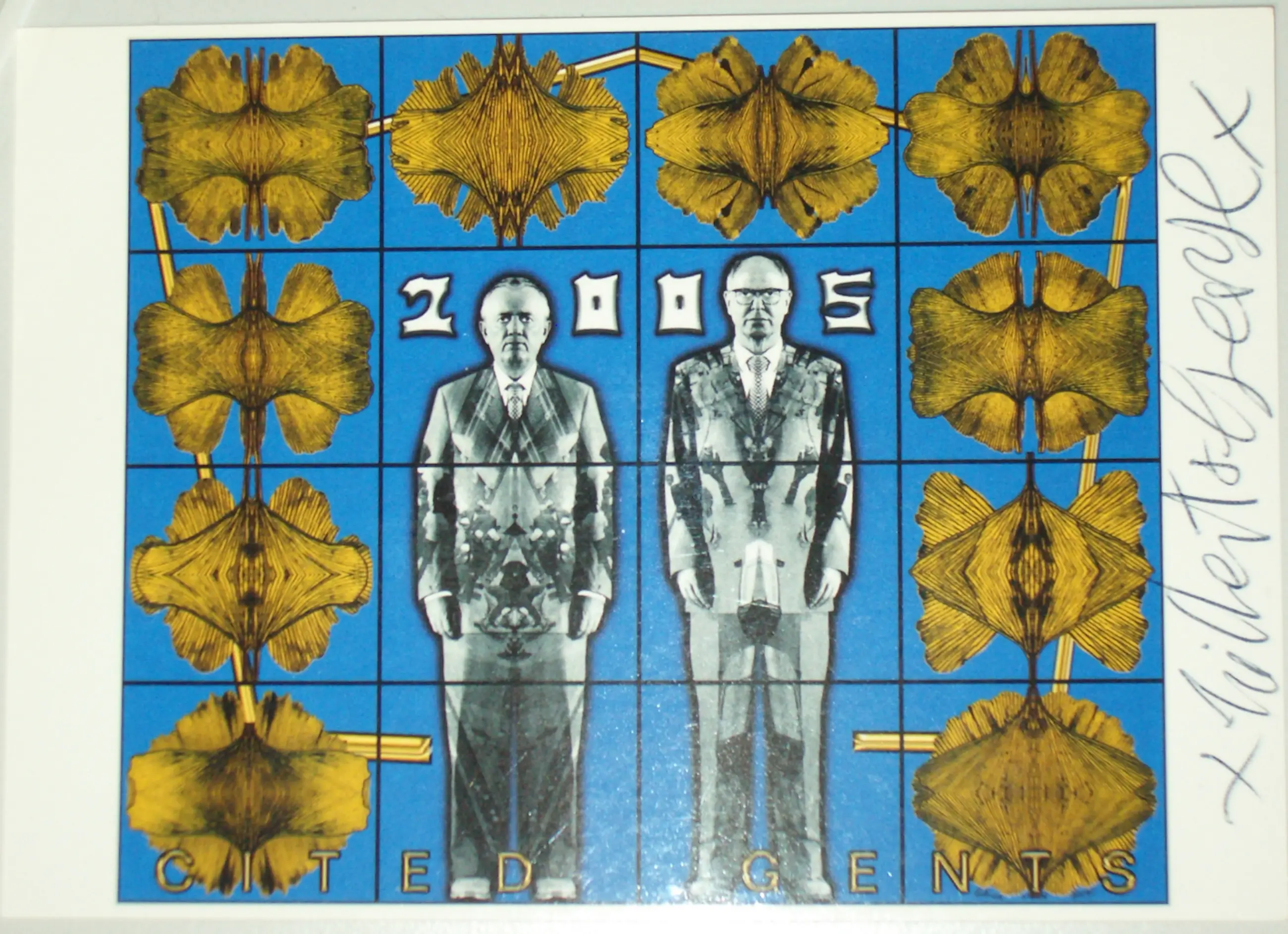 GILBERT & GEORGE | GINKO FOTO'S (KUNST ANSICHTKAART PRINT VAN HET WERK - " CITED GENTS" uit 2005)