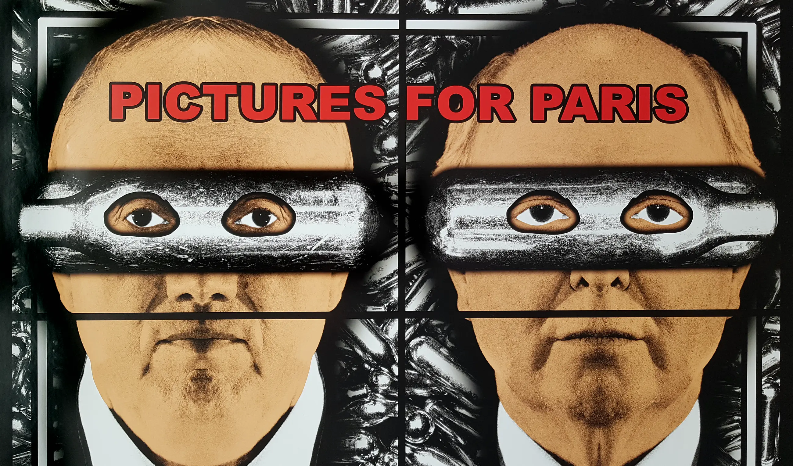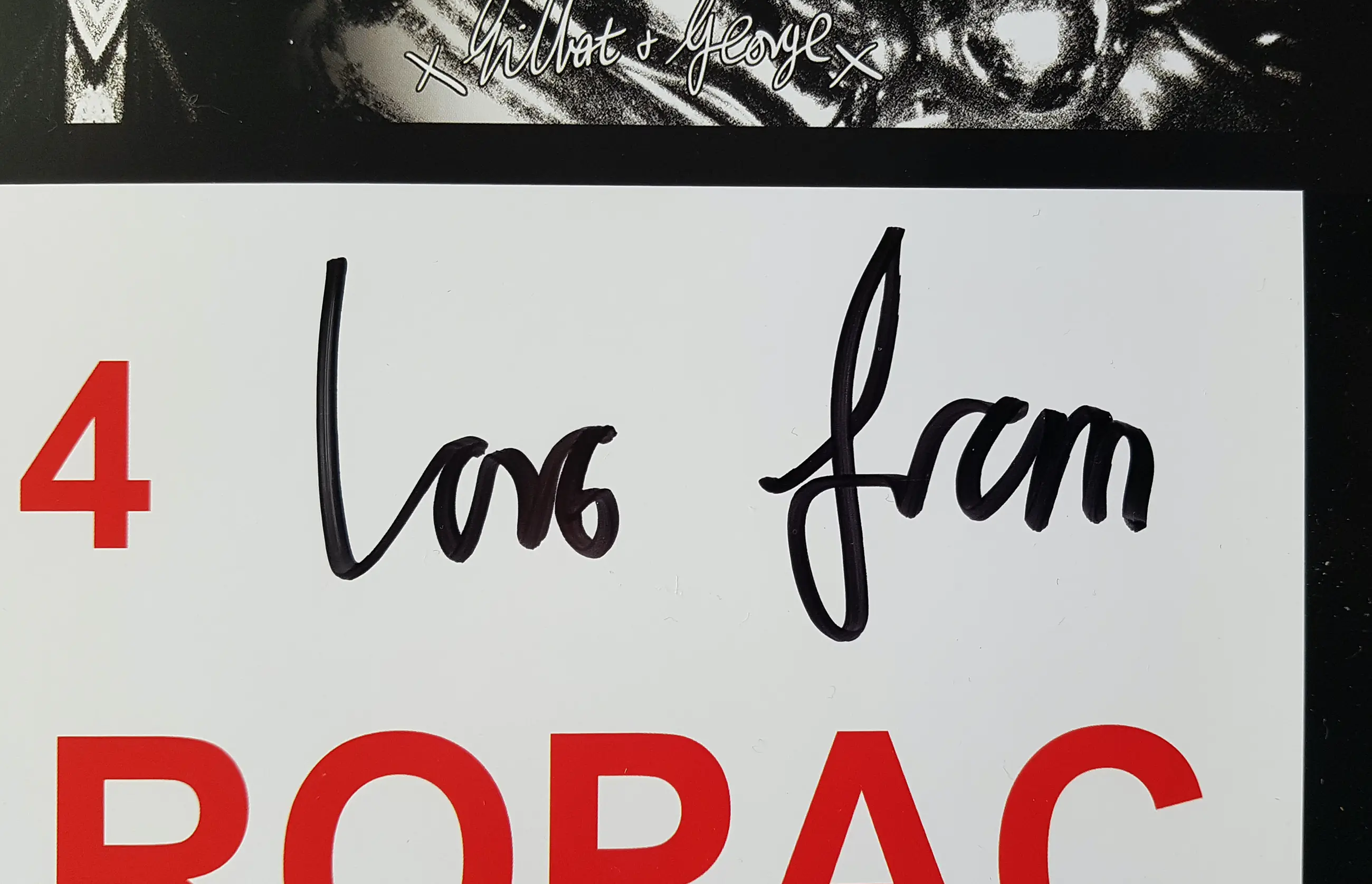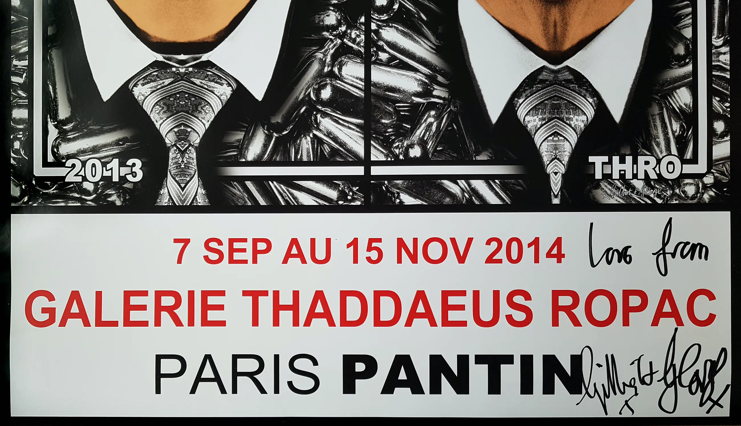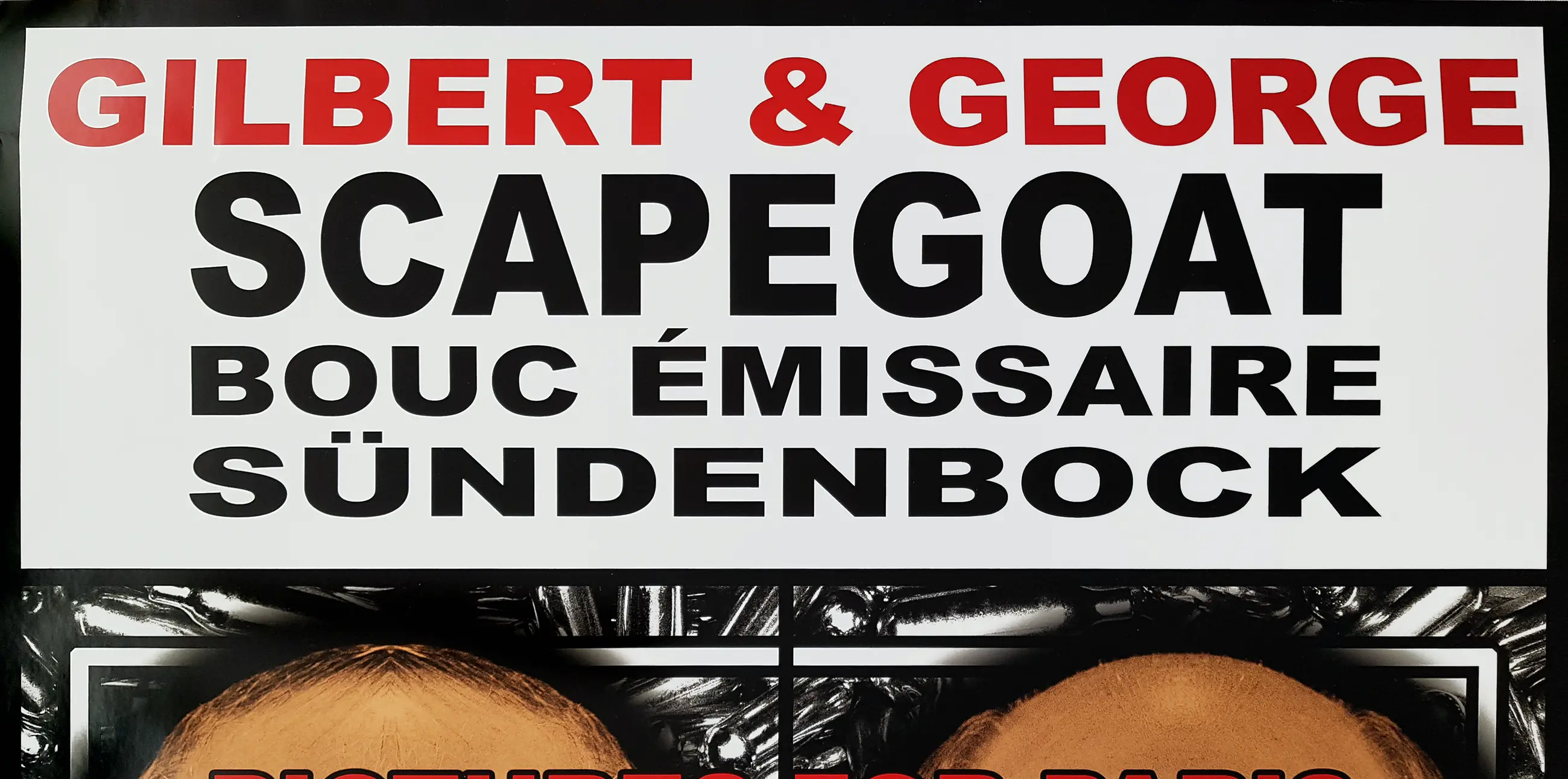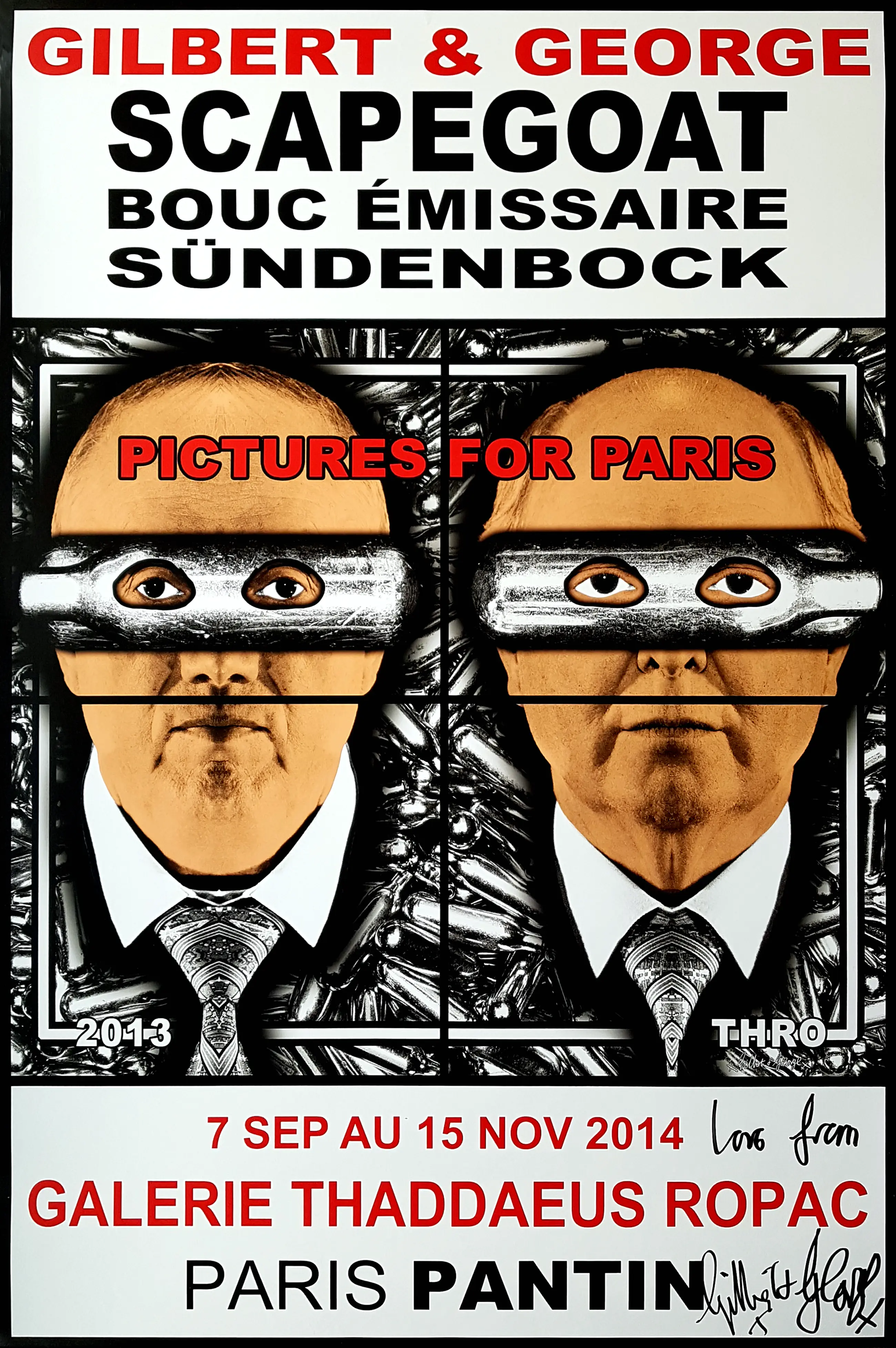 Zur Ausstellung 'Scapegoat Pictures' (2014) in Paris von den Weltstars Gilbert and George erschienen in kleiner Auflage streng limitierte Offsetdrucke mit zwei verschiedenen Motiven.