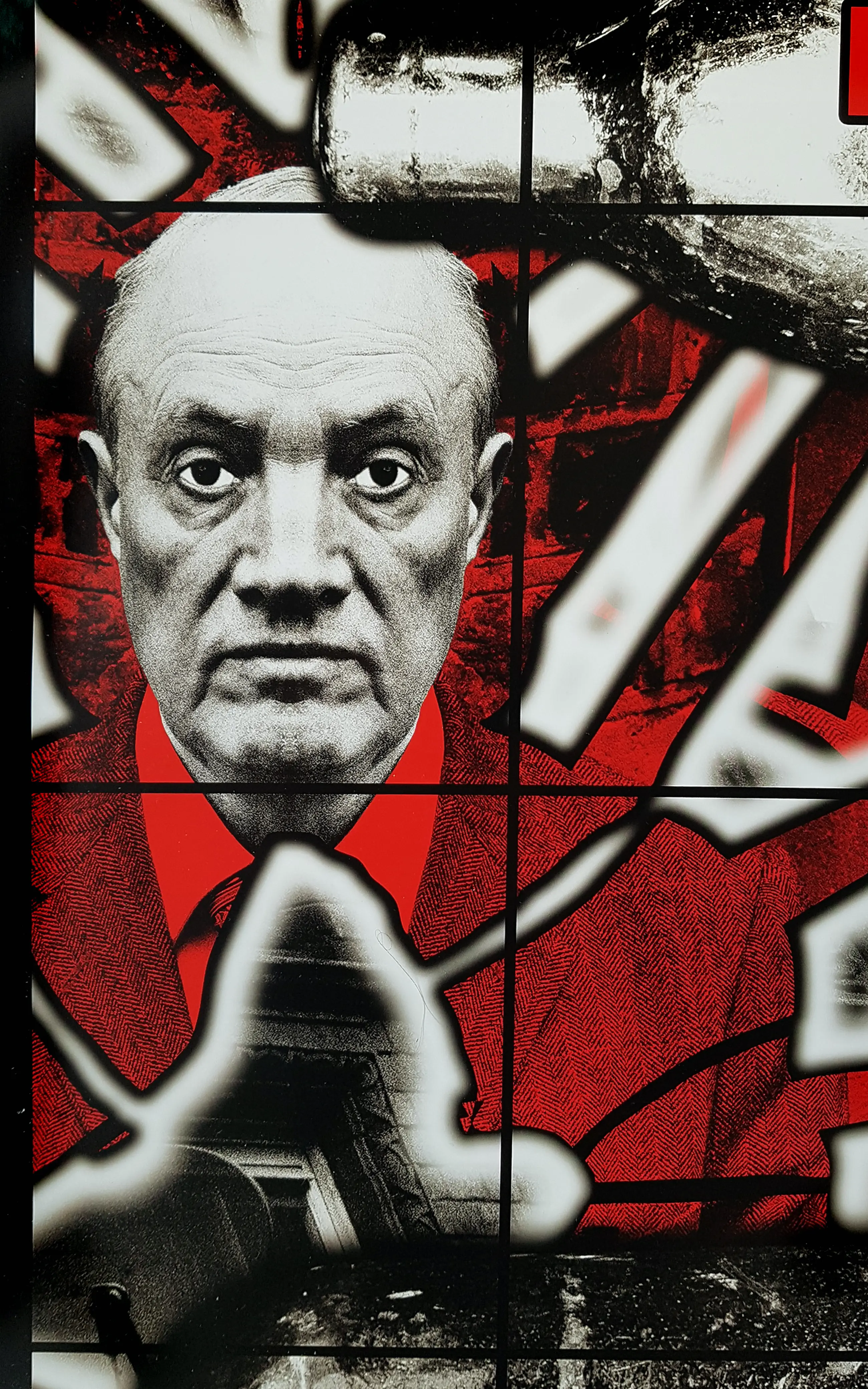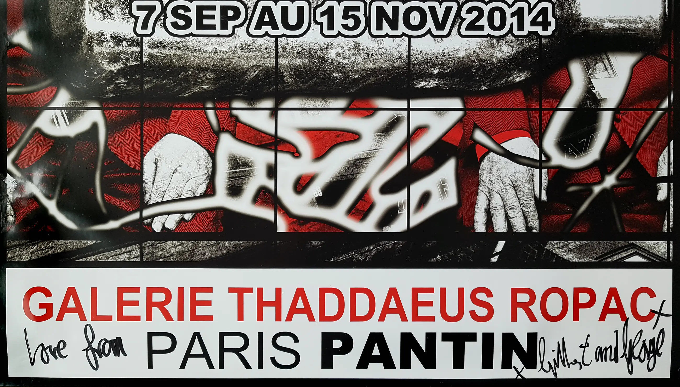 Zur Ausstellung 'Scapegoat Pictures' (2014) in Paris von den Weltstars Gilbert and George erschienen in kleiner Auflage streng limitierte Offsetdrucke mit zwei verschiedenen Motiven.