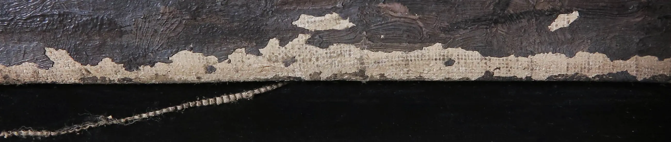 De voorstelling is in redelijke staat. Er zijn echter een aantal beschadigingen in de verf te zien. Zo zijn er op enkele plaatsen gaten in de verf te zien. Daarnaast is er een deuk waarneembaar aan de linkerkant. Tevens zijn er langs de randen van het doek slijtagesporen zichtbaar. Zie de detailfoto's voor een indruk van de huidige staat van het werk.