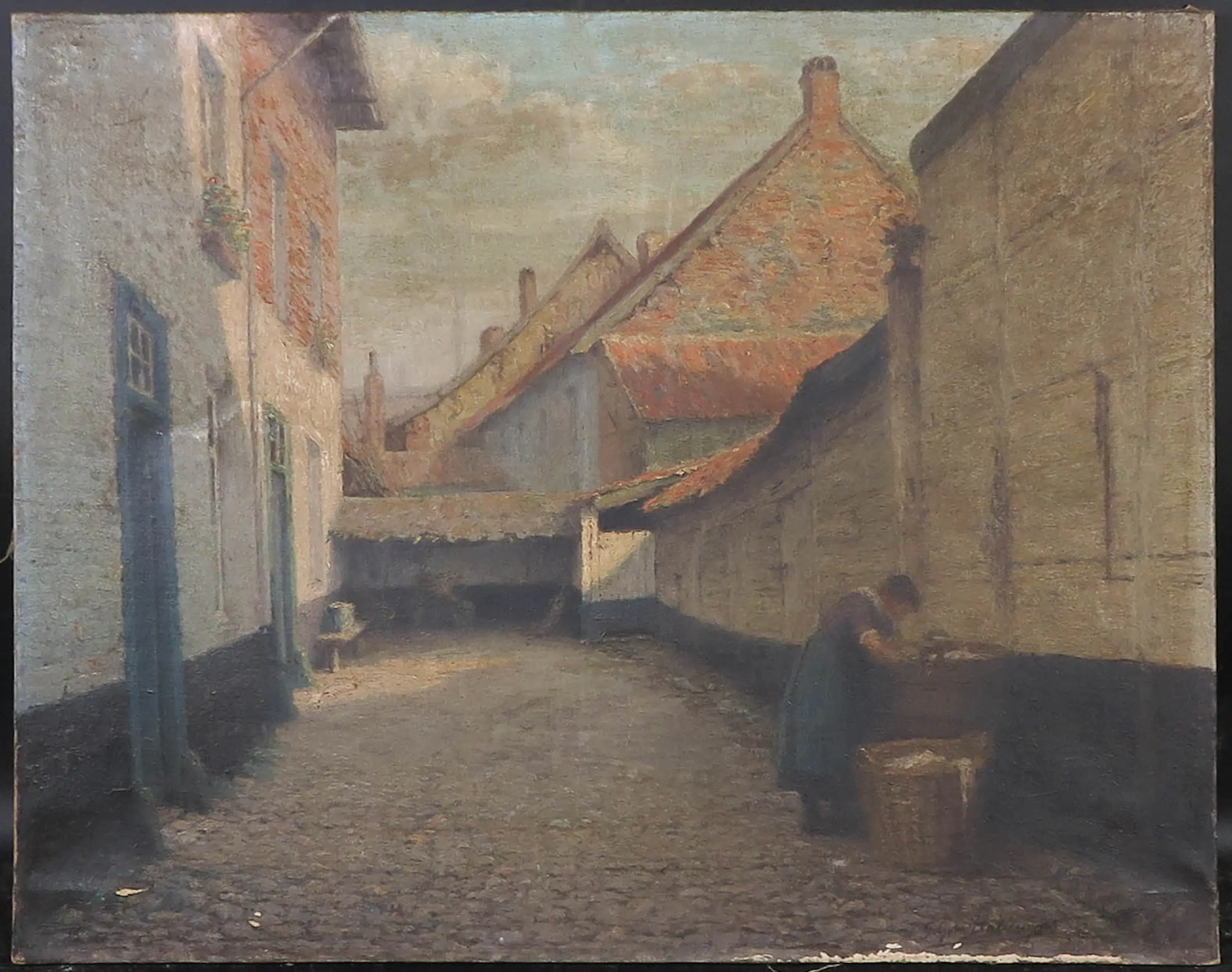 Olieverfschilderij van kunstenaar Giljom Ballewijns. Ballewijns was een Belgische kunstschilder. Hij staat bekend om zijn alledaagse taferelen. Het werk is rechtsonder handgesigneerd door de kunstenaar.