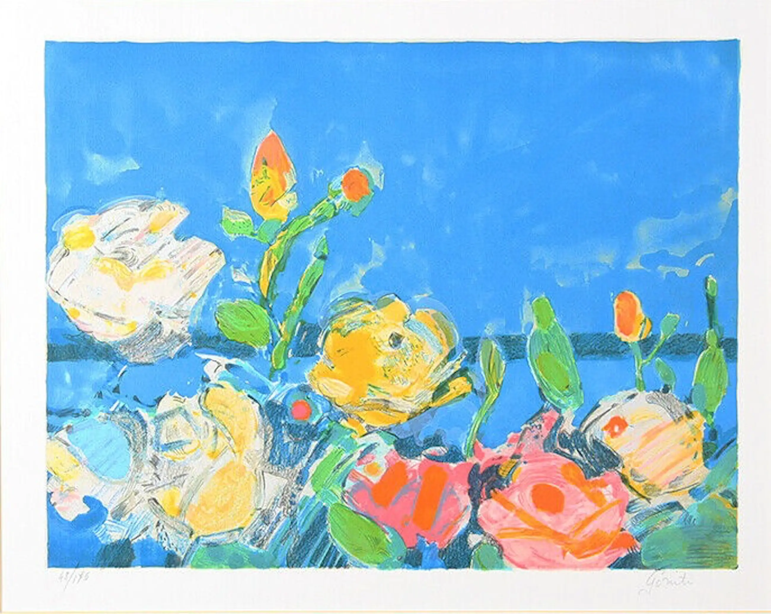 Handgesigneerde lithografie op handgeschept papier