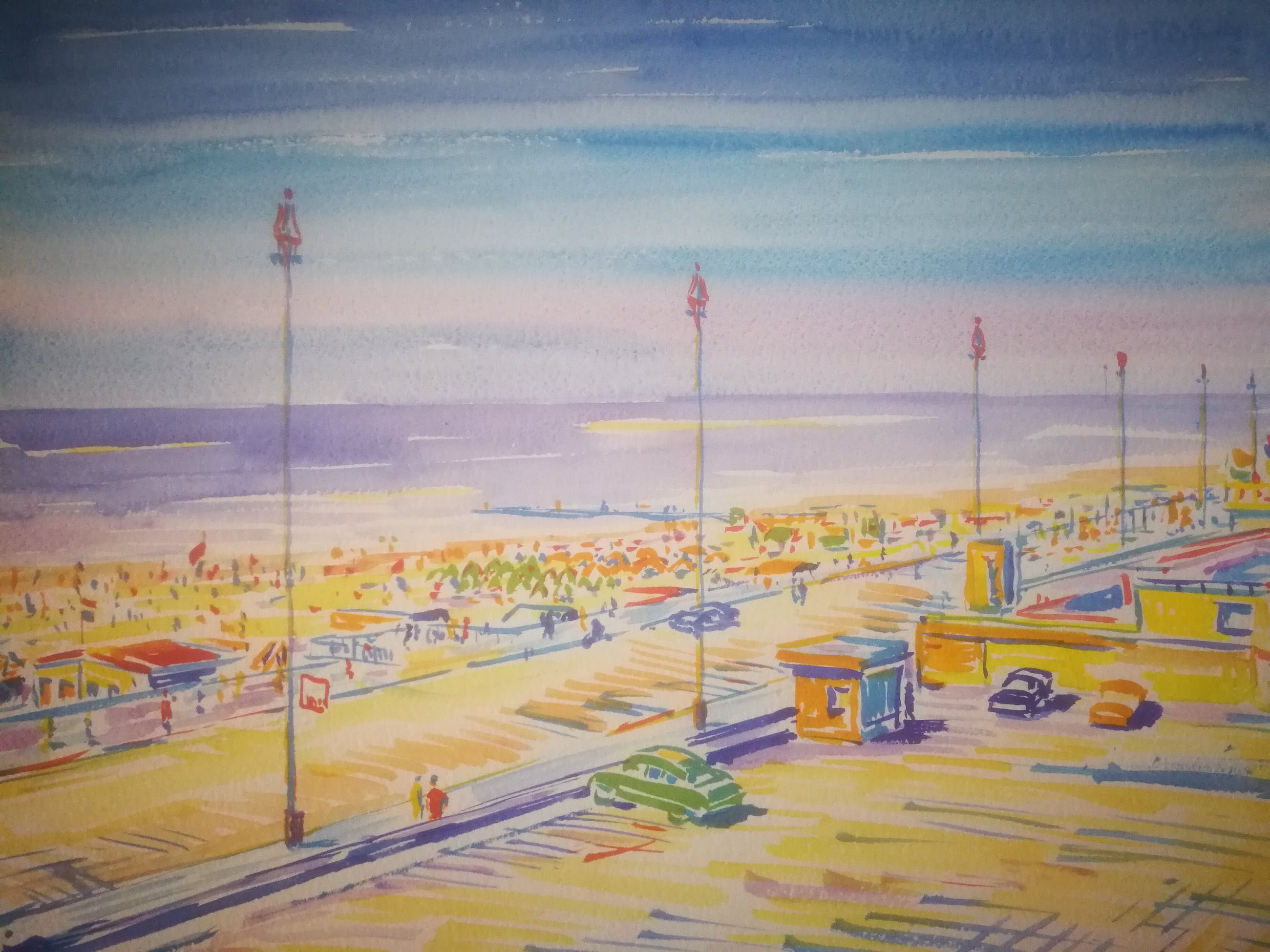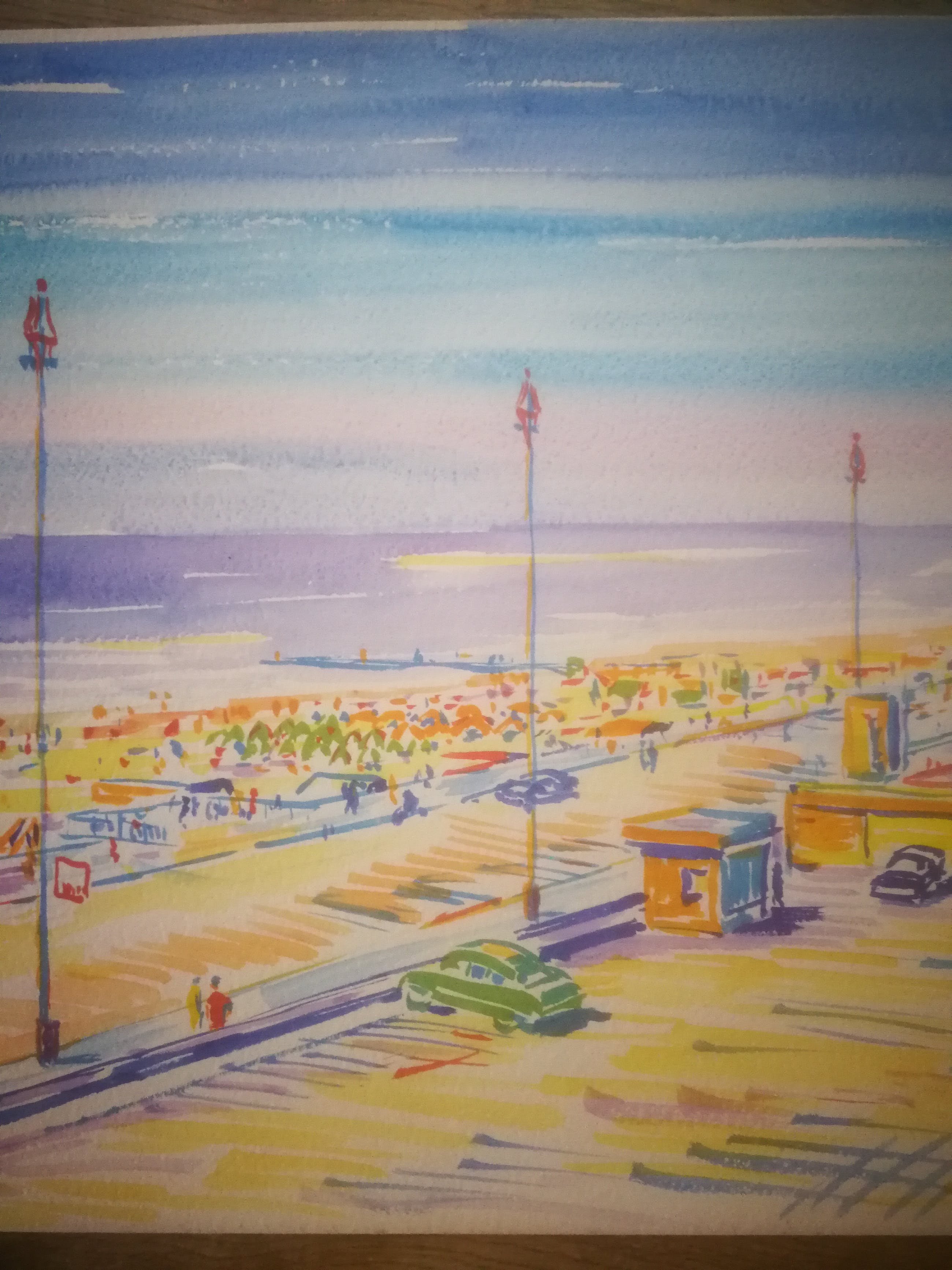 Mooi werk. Goede staat. Fris en vrolijk. Op zwaar aquarelpapier. Annotatie / naam achterzijde. Datering achterzijde.