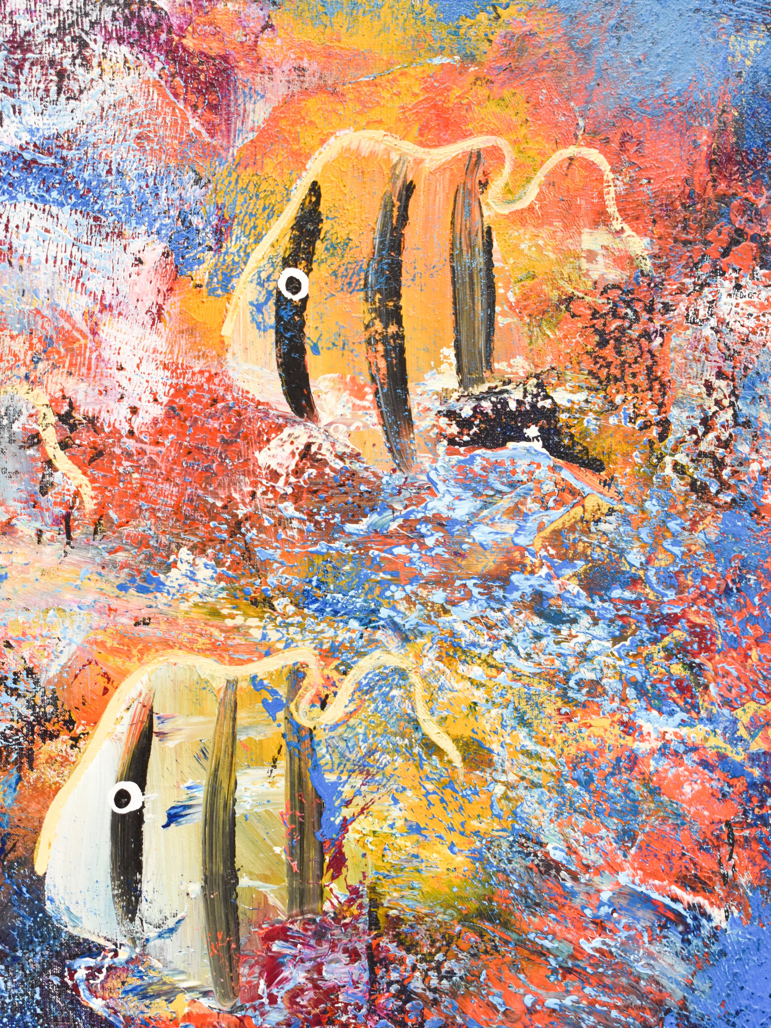 De schilderijen van Sauerbier tonen hoe hij de wereld het liefst zou zien. Vol vreugde, kleuren, magie en het onverwachte. De westerse realiteit is helaas vaak het tegenovergestelde. Daarom laat hij zich inspireren door verre volkeren en primitieve stammen.