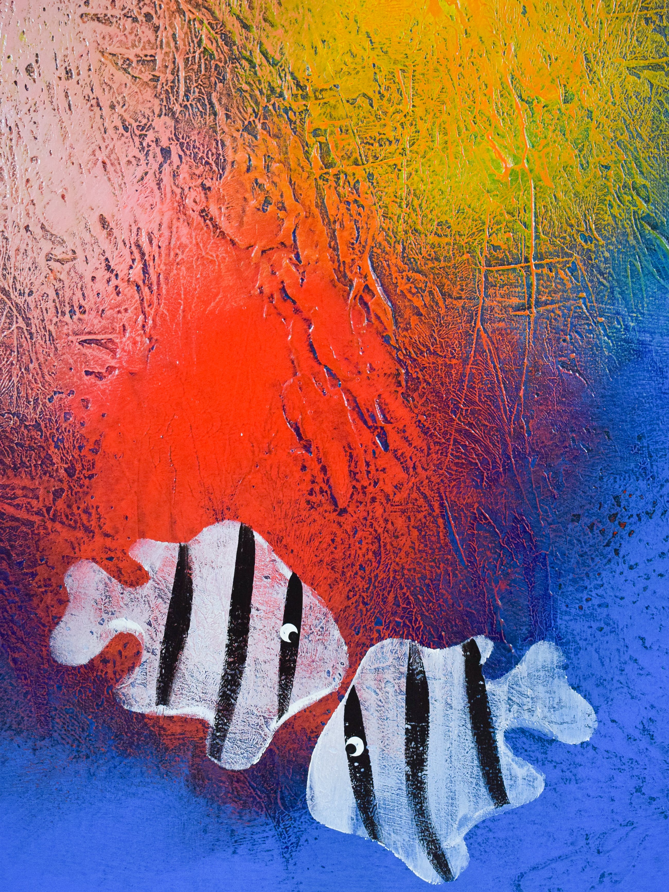 De schilderijen van Sauerbier tonen hoe hij de wereld het liefst zou zien. Vol vreugde, kleuren, magie en het onverwachte. De westerse realiteit is helaas vaak het tegenovergestelde. Daarom laat hij zich inspireren door verre volkeren en primitieve stammen.