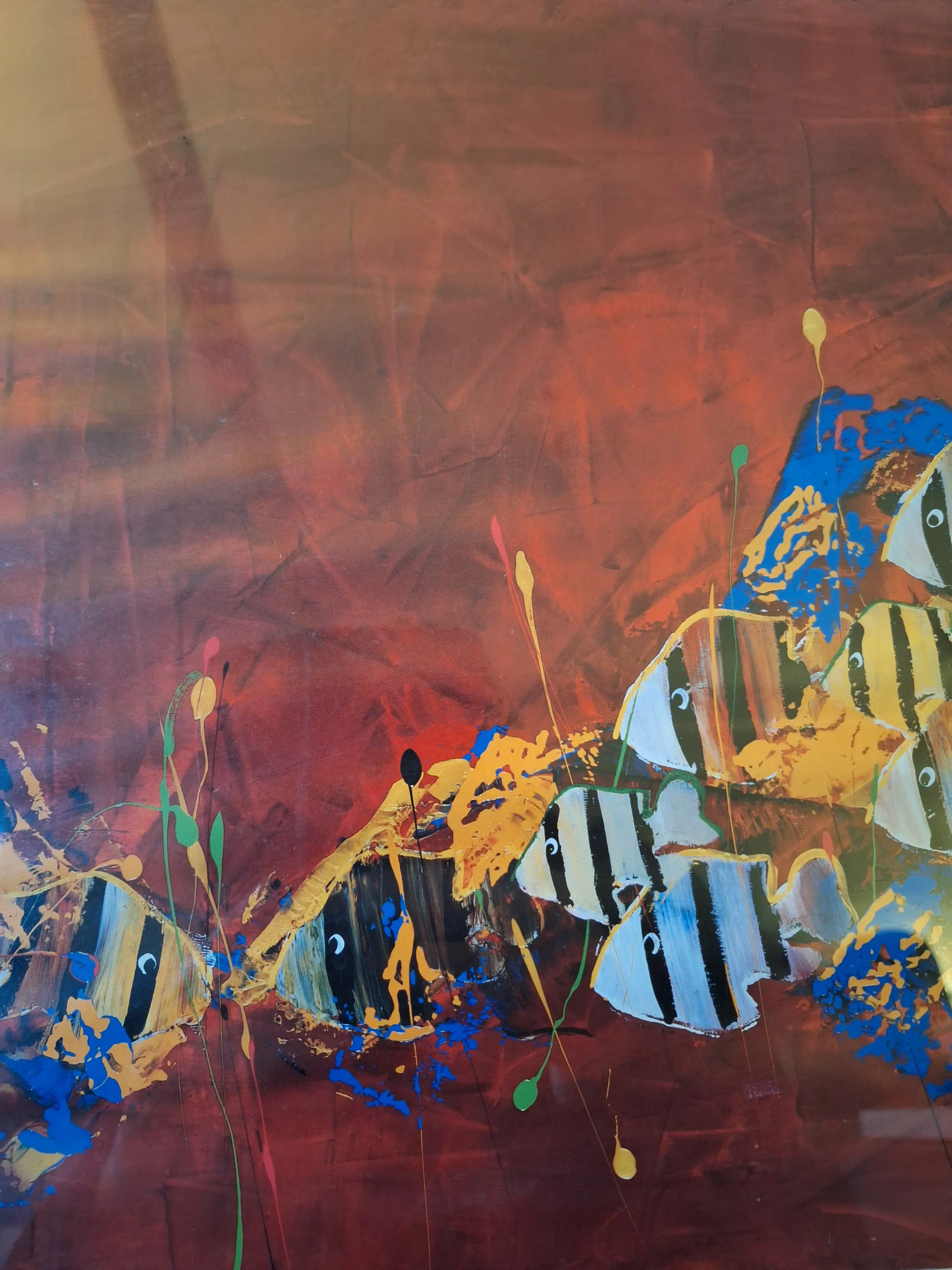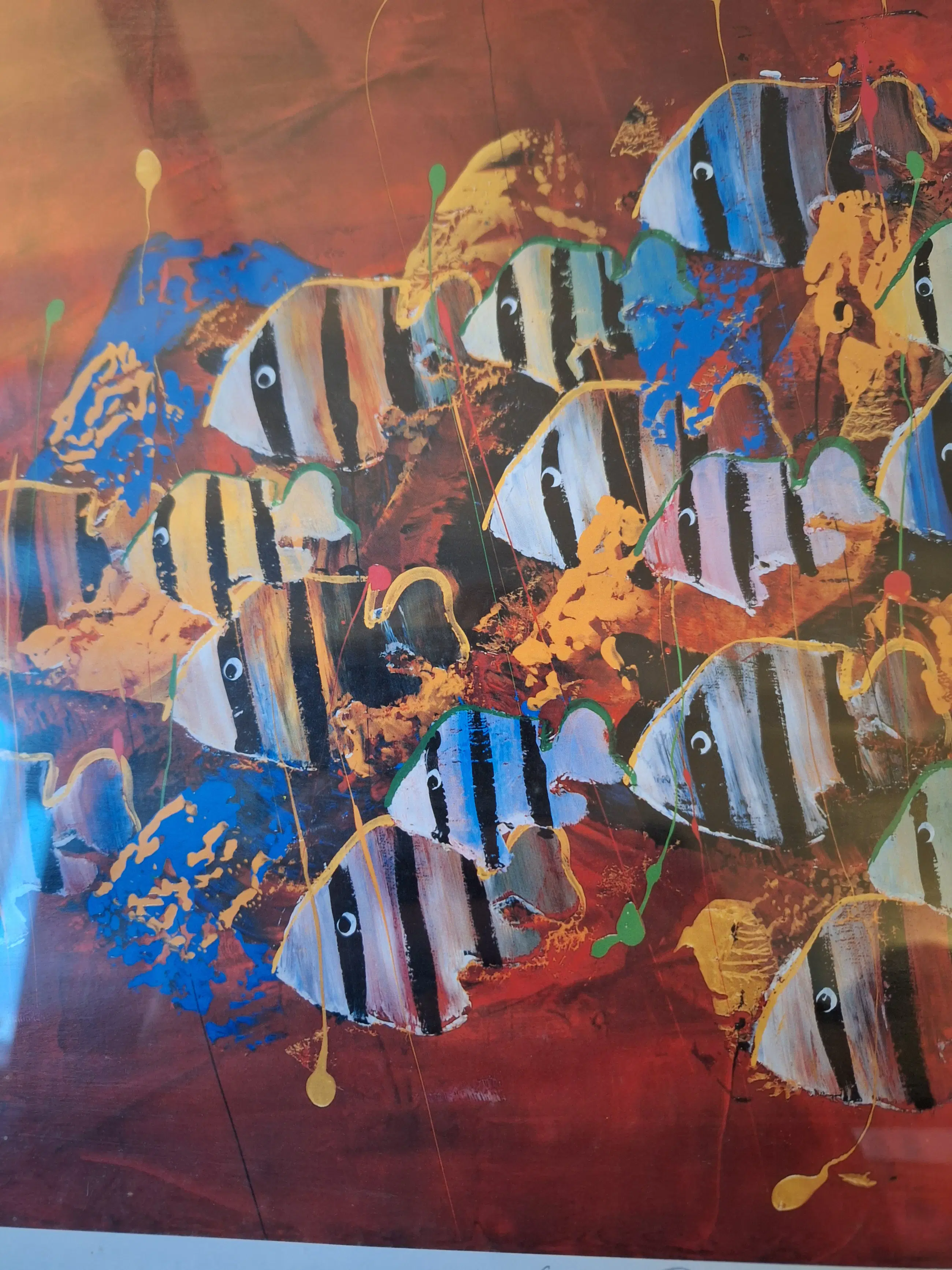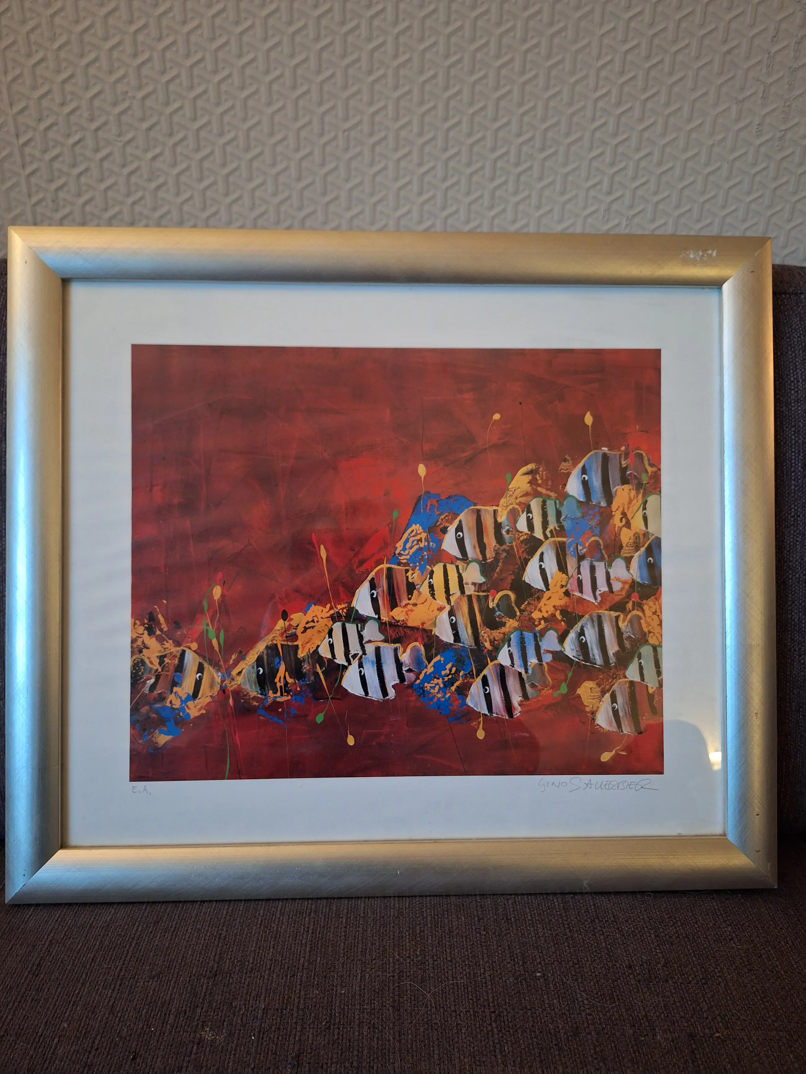 Gino Sauerbier - Unieke proefdruk (E. A. ) vissen op rode achtergrond