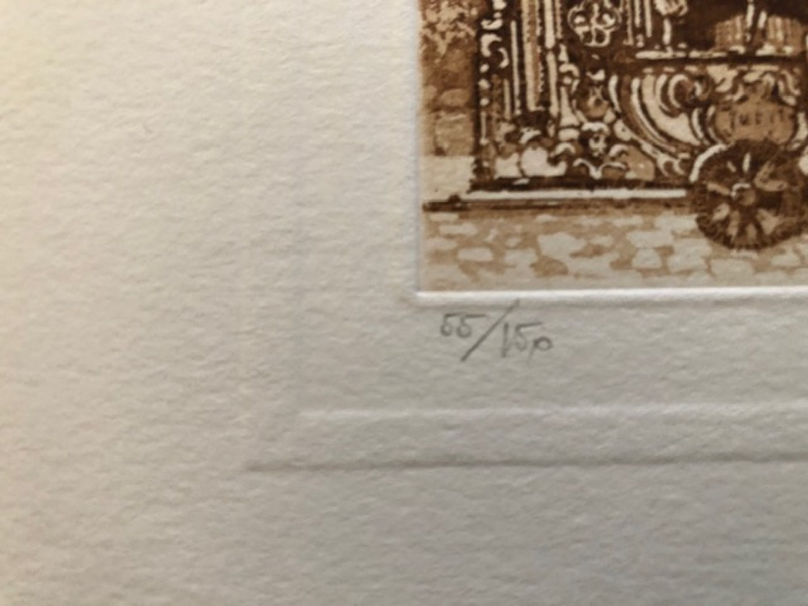 De etsen zijn stuk voor stuk handmatig gedrukt (zinken plaat) en daarna met de hand ingekleurd (aquatint). Kwaliteit en kleurgebruik zijn subliem. Heel verfijnd en met meesterlijke hand gemaakt. Vervaardigd op Fabriano kwaliteitspapier, speciaal geschikt voor ets en aqua verf. In het papier is als het ware een passe-partout gestanst. Zeer fraai. In potlood voorzien van oplage en signatuur. Zie foto's. Over de kunstenaar: Giorgio Ferrari is geboren in Milaan in 1936. Autodidact. Leeft en werkt in de regio Modena. Maat van de afbeelding: 8,6 / 5,8 cm.