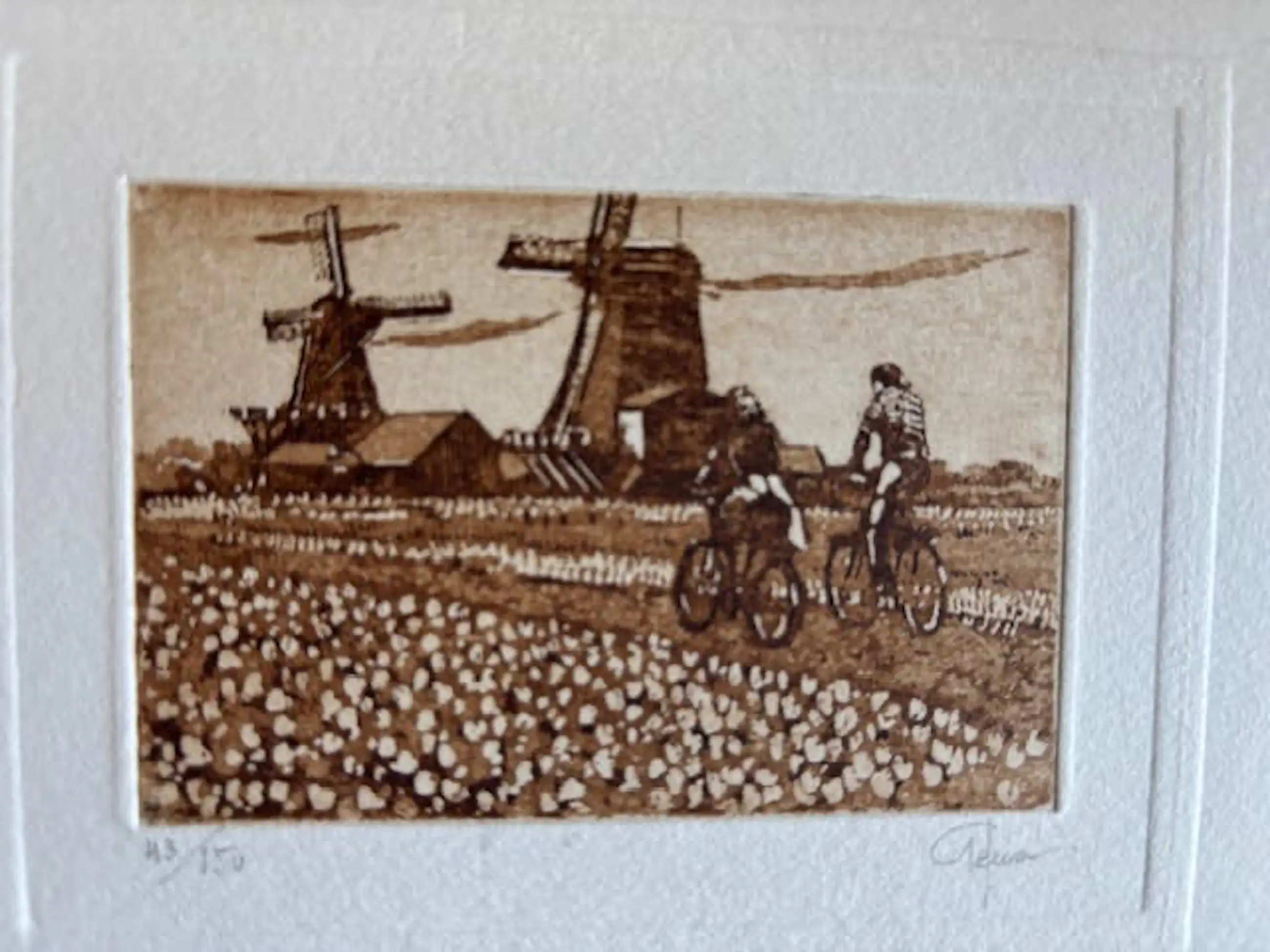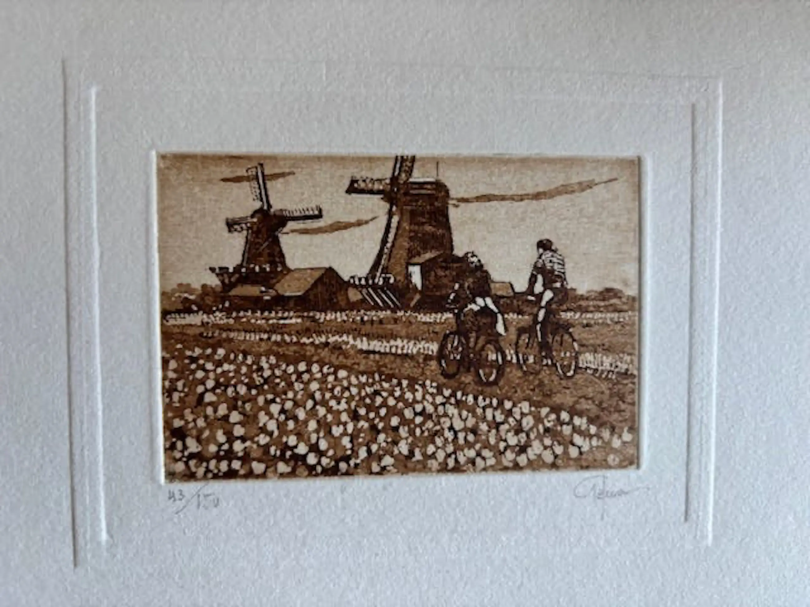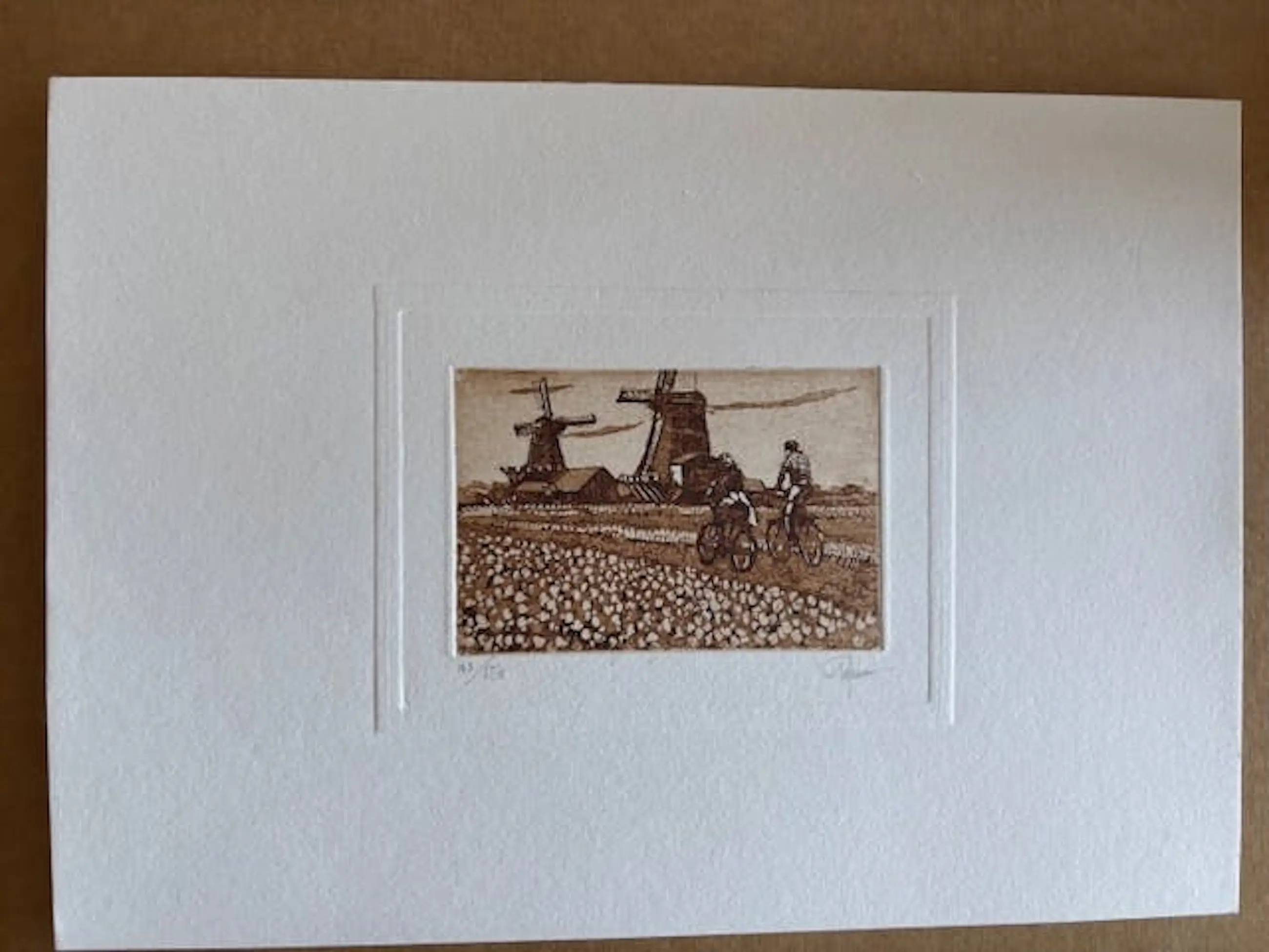 De etsen zijn stuk voor stuk handmatig gedrukt (zinken plaat) en daarna met de hand ingekleurd (aquatint). Kwaliteit en kleurgebruik zijn subliem. Heel verfijnd en met meesterlijke hand gemaakt. Vervaardigd op Fabriano kwaliteitspapier, speciaal geschikt voor ets en aqua verf.