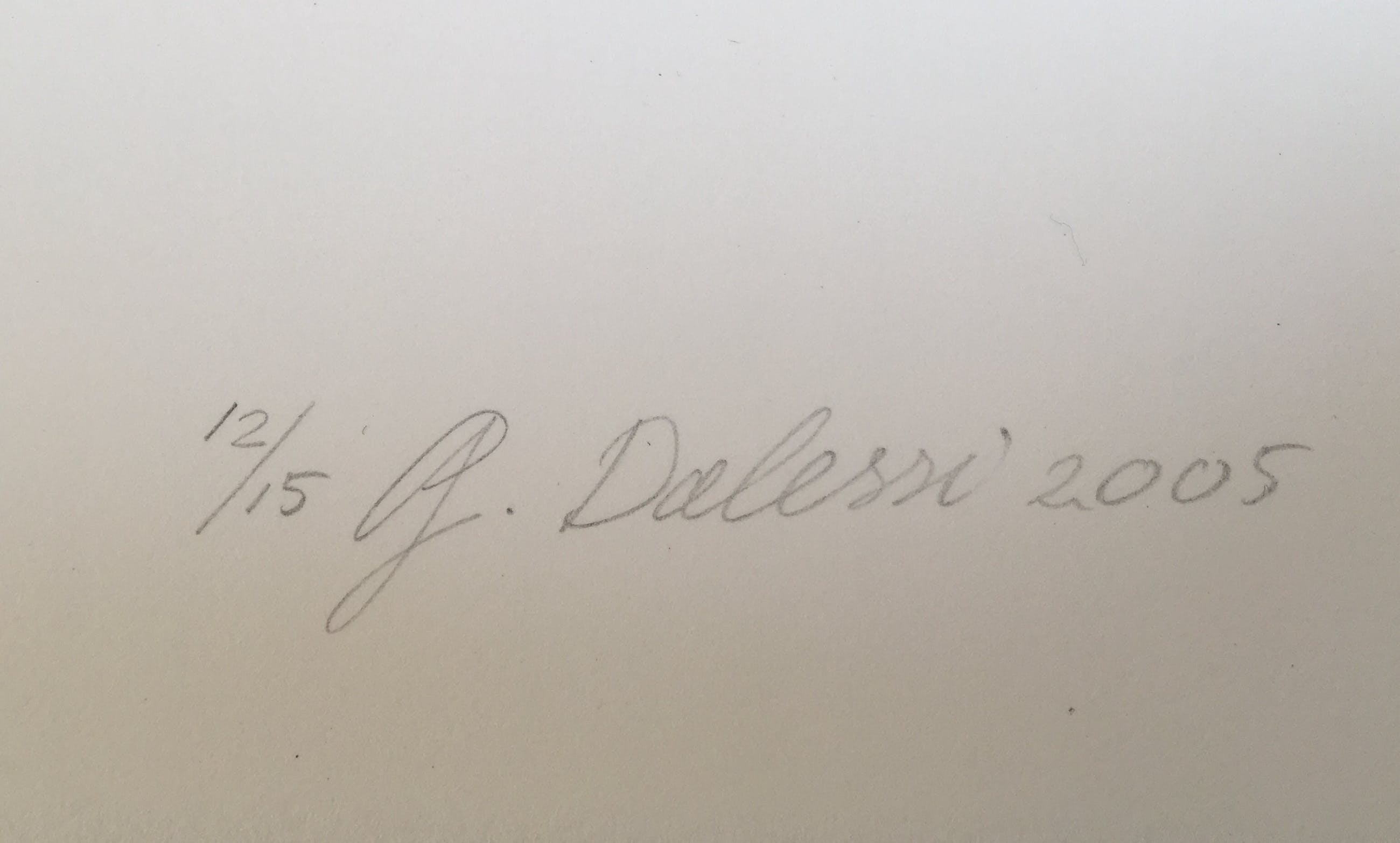 Mooi werk van Giovanni Dalessi. Deze litho lijkt bijna een potloodtekening. Hij is door de kunstenaar met aquarel, met de hand ingekleurd waardoor ieder exemplaar van deze uitgave uniek is. Het werk is in perfecte staat!