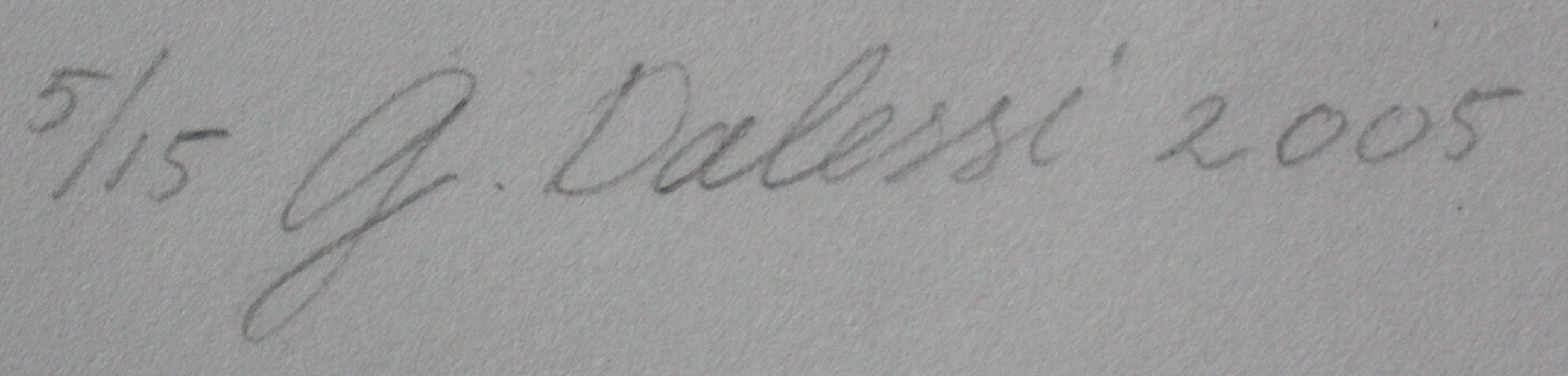 Zeefdruk van Giovanni Dalessi uit 2005. Nr: 5/15. Afmetingen blad: H27.5 x b36.5cm. Afmetingen voorstelling: H14 x b24cm. Het werk is midden onder gesigneerd door de kunstenaar. De authenticiteit van het aangeboden werk wordt volledig gegarandeerd. Een certificaat van echtheid kan, op aanvraag, worden gemaild.