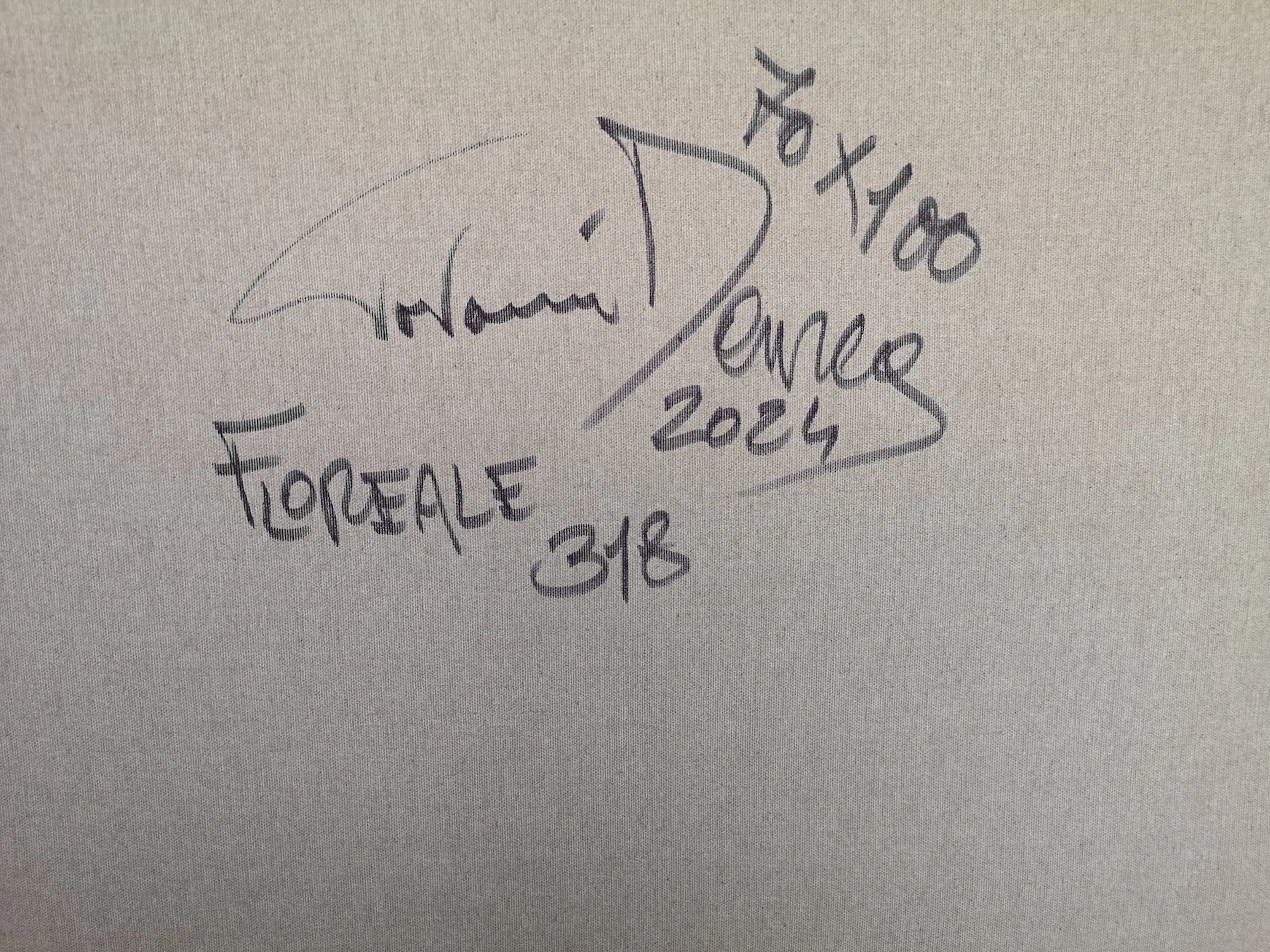 Deze ‘’Floreale’’ van Giovanni Daurea uit 2024 is rechtstreeks van de schilder verworven. Signatuur en datering zijn op de achterkant. Het schilderij is 70 x 2 x 100 cm. (h x b x l) en is klaar om opgehangen te worden.