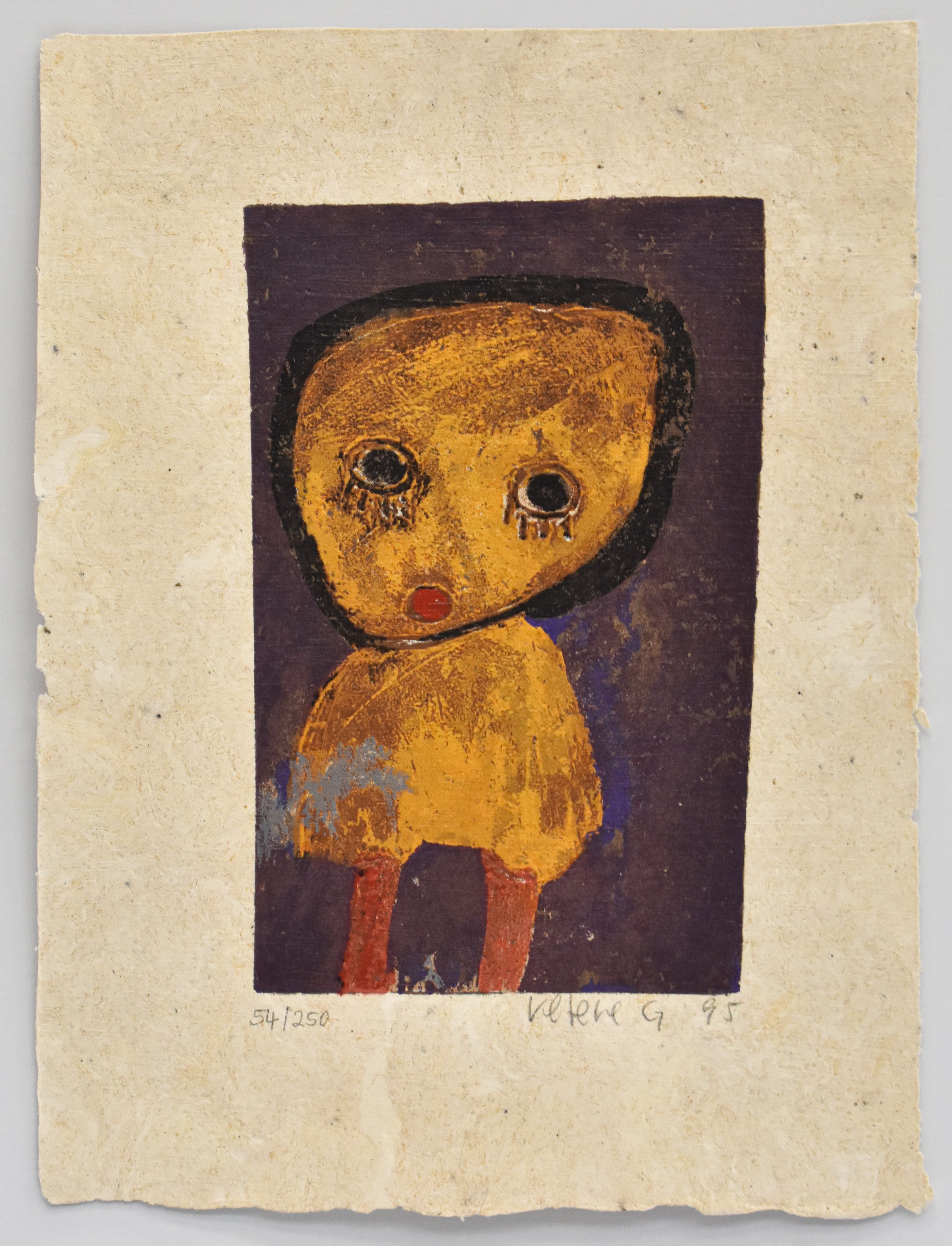 Giovanni’s gedisciplineerde werkhouding en onuitputtelijke scheppingsdrang leidde tot het ontstaan van een oeuvre dat niet alleen zeer omvangrijk is, maar ook diverse facetten toont en een constante ontwikkeling laat zien. In zijn zoektocht naar essentie staat de menselijke figuur in zijn relatie tot de natuur en de maatschappij centraal. De natuur en haar elementen worden vertegenwoordigd door bloemvormen, kleine vogels en vissen, die in vereenvoudigde vorm opduiken als driehoeken en circels. De directheid en weerloosheid waarmee de figuren ons aankijken ontmaskeren ons als toeschouwers en herinneren ons wat er onder het masker van het maatschappelijke leven schuilgaat.