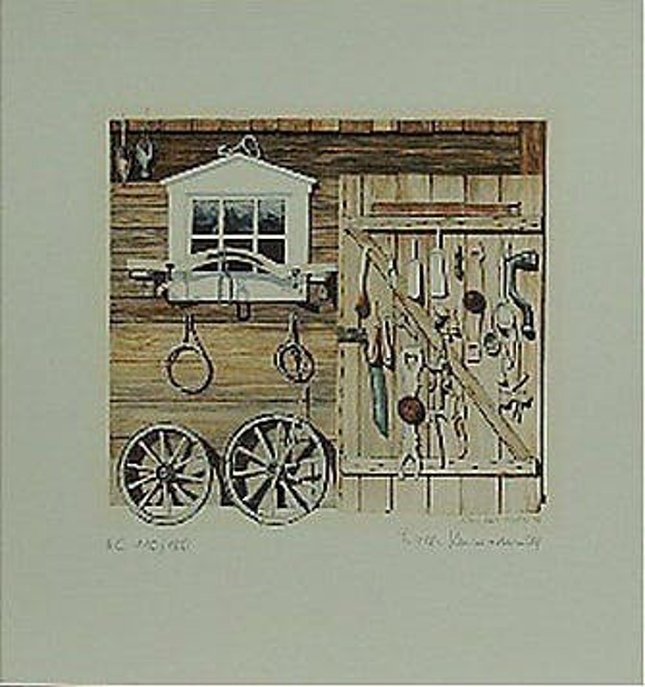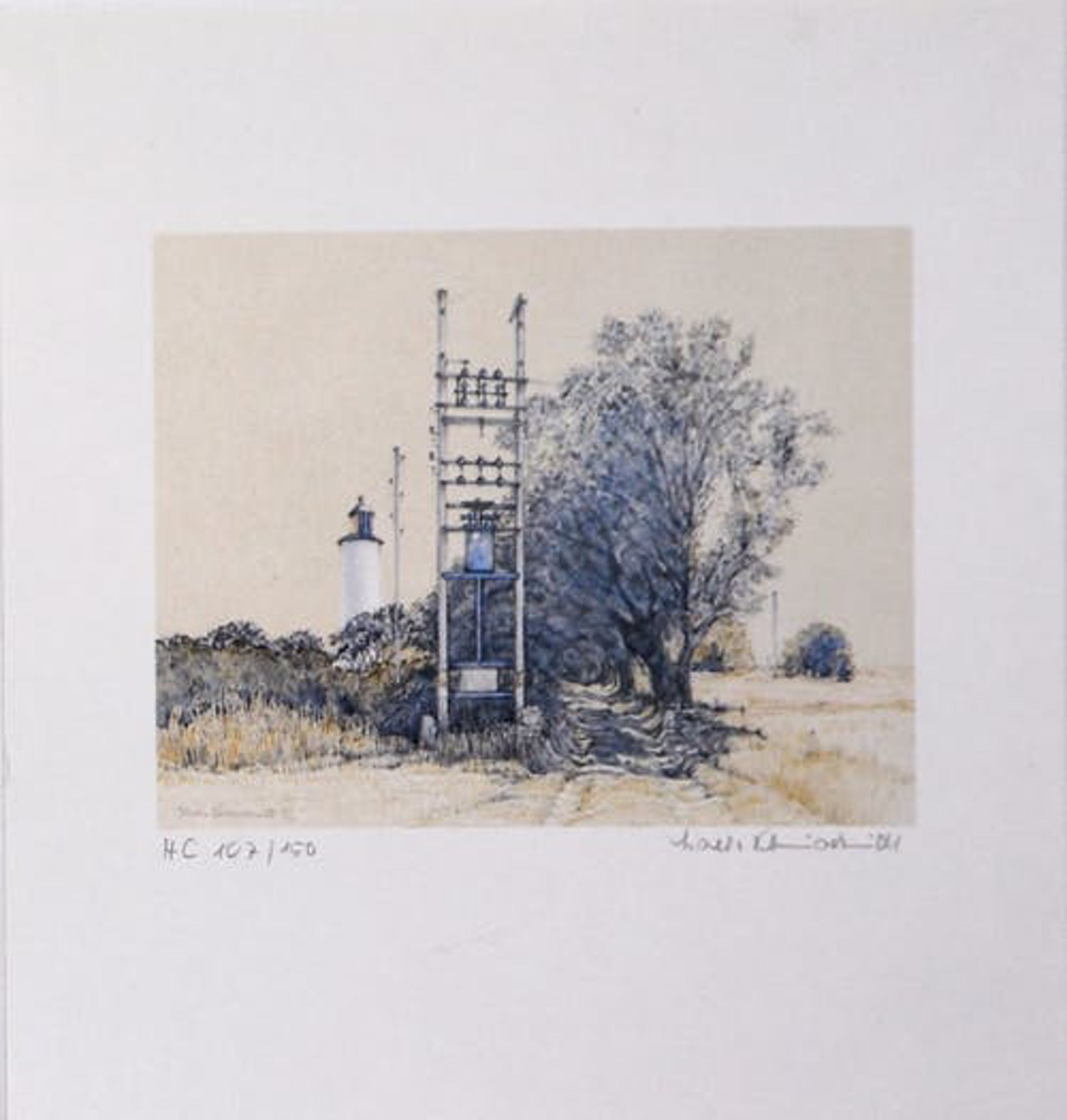 Collectie van drie handgesigneerde lithografien van Gisela Kleinschmidt. Titels: Landschap, Composities I en II. Afmetingen: 15 x 14 cm.