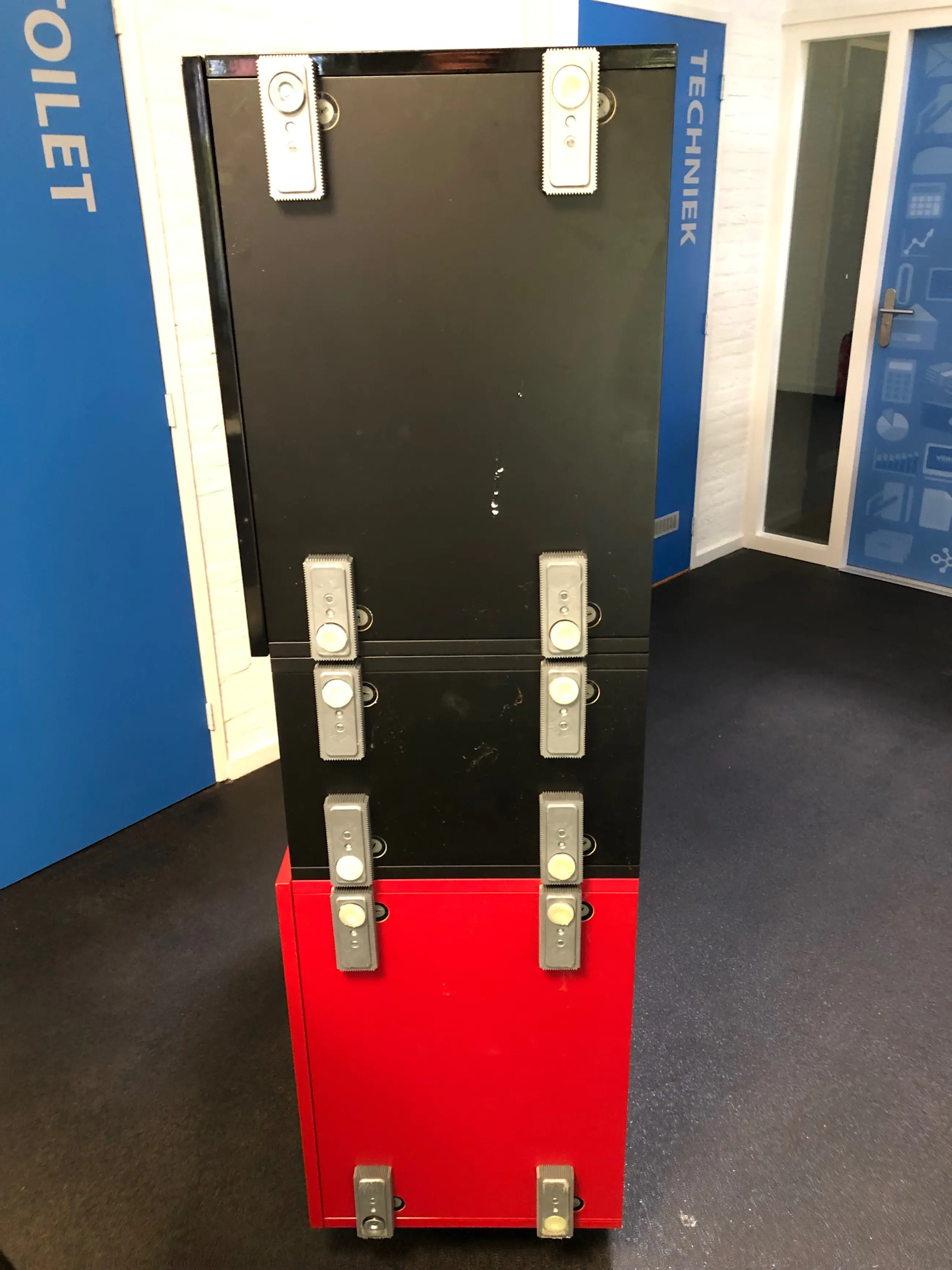 Conditie: Zeer goed, met minieme sporen van gebruik, zoals lichte krasjes, wat verfverlies in één van de lades en twee missende plastic pootbeschermertjes (niet hoogst noodzakelijk overigens). Verder mooi, zie ook de foto's voor een goede indruk. Er lijkt wat speling bovenin bij de deurtjes te zitten op de foto maar dat is alleen vanwege het voor de foto's in elkaar zetten van de kast (dat kan strakker). Een heuse eyecatcher in welke omgeving dan ook.