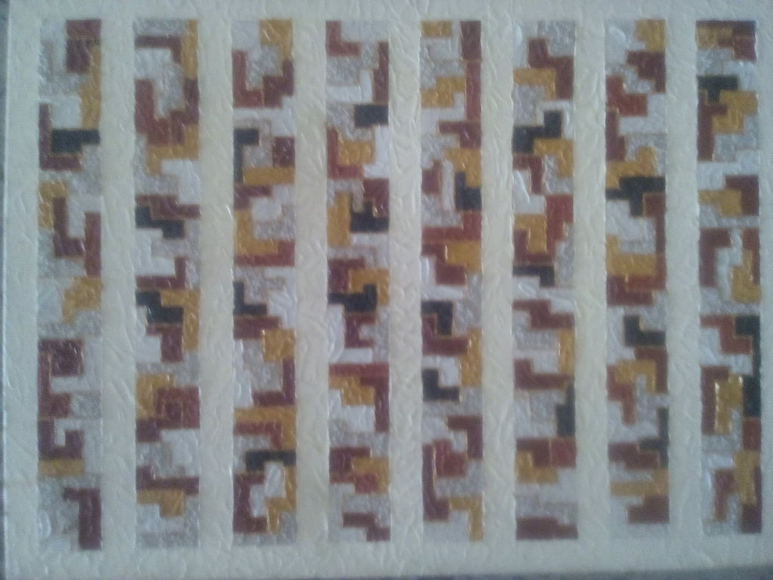 Mooie klassieke kleurencombinatie waarbij uiteraard de blokken weer centraal staan, zoals in veel van mijn werken. Acrylverf gemengd met diverse primers en gel mediums.