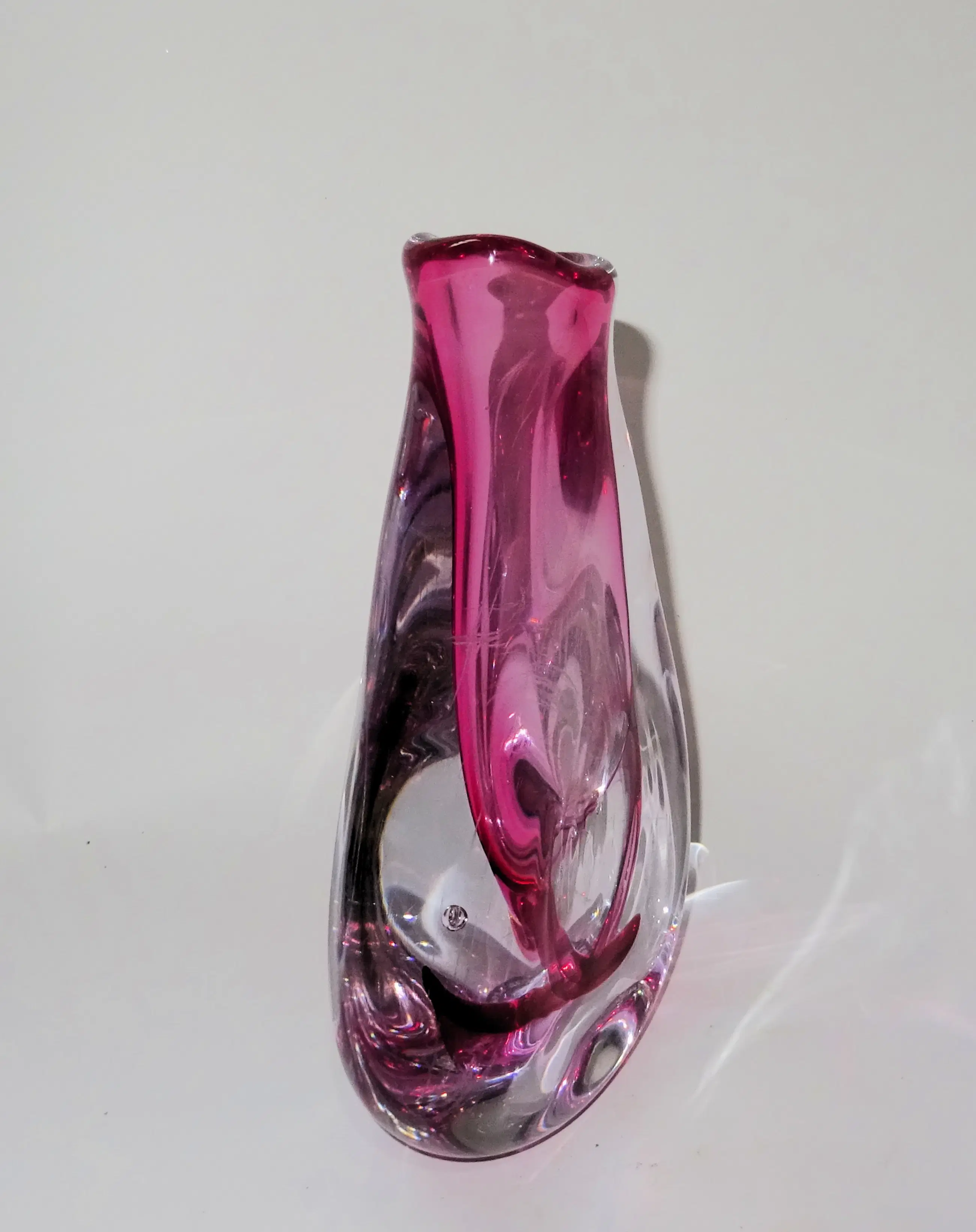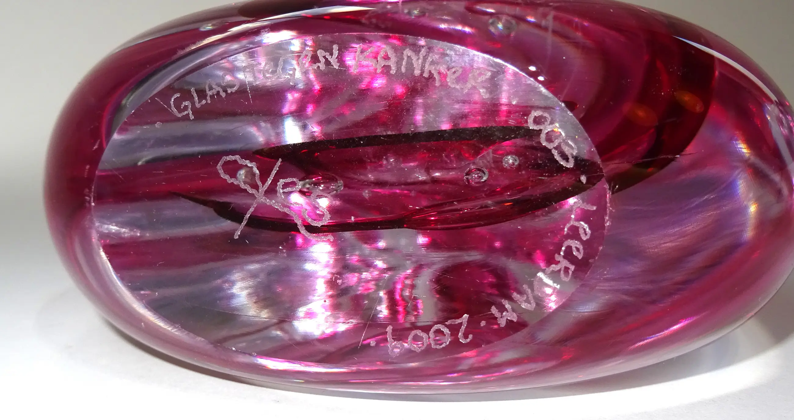 Een zware dikwandige vaas, ontwerp en uitvoering Jessica Homich bij Glasblazerij Leerdam 2004. Vaas is gemaakt voor de actie glas tegen kanker.