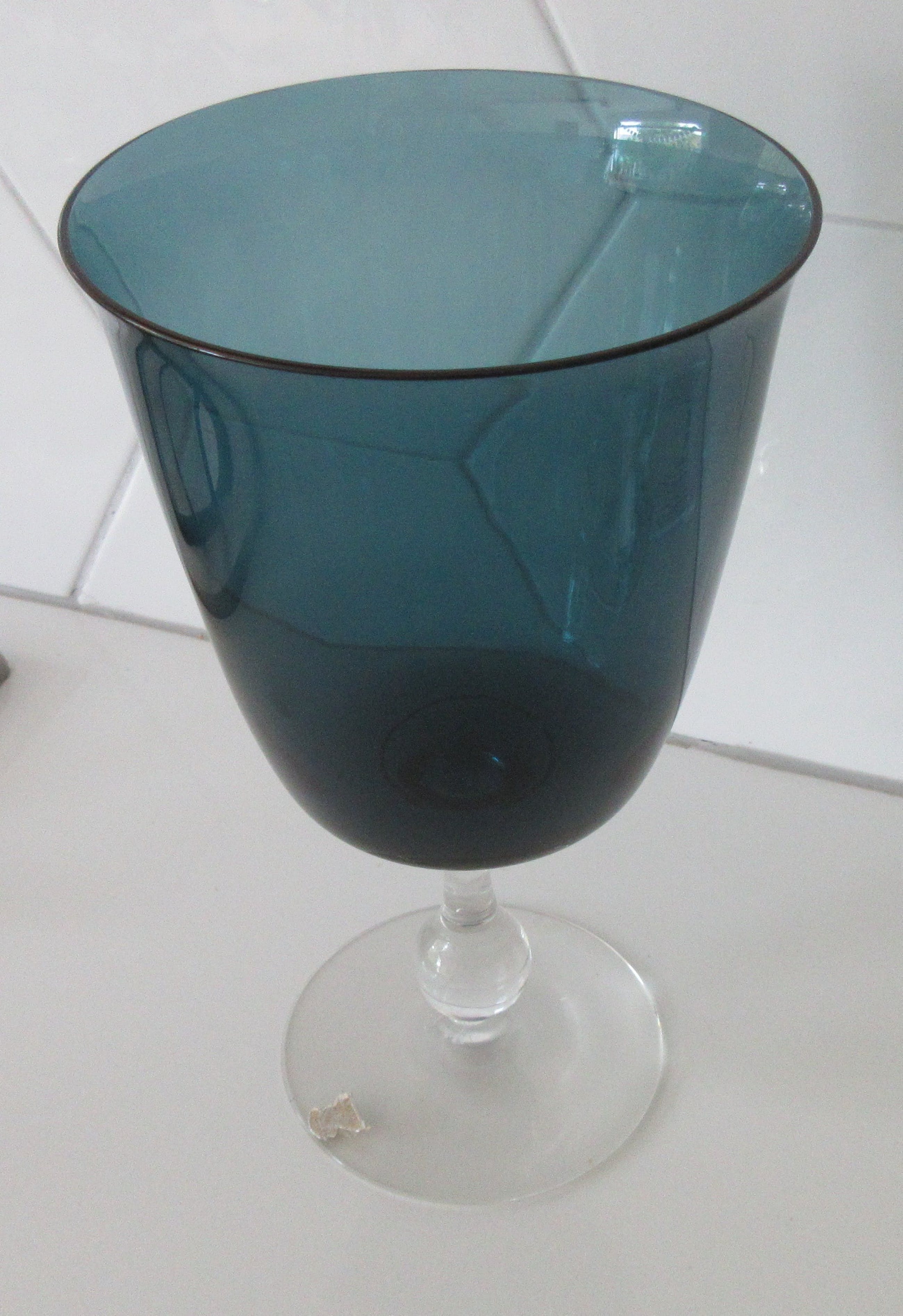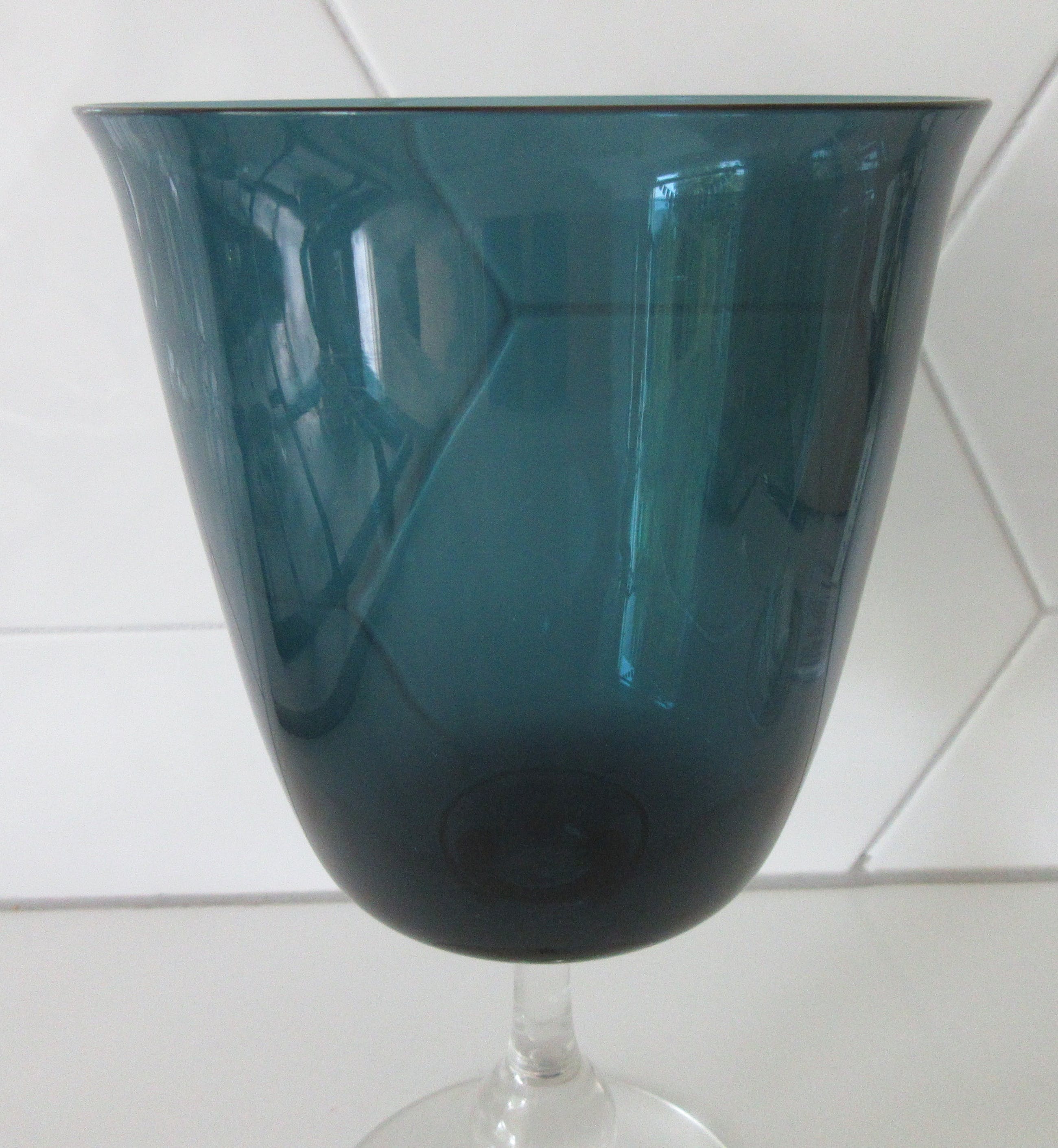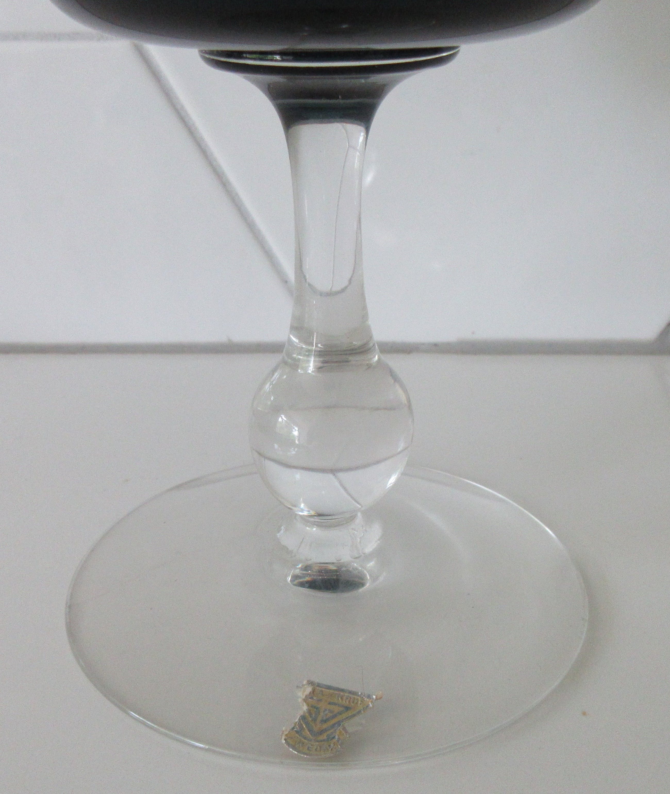 Mooie vintage bokaalvaas met blauwgrijze kelk en blank glazen steel en voet. Ontworpen door Hugo Gehlin voor Gullaskruf Glasbruk in de jaren zestig. Op de voet voorzien van originele papieren merksticker. Onbeschadigde conditie.
