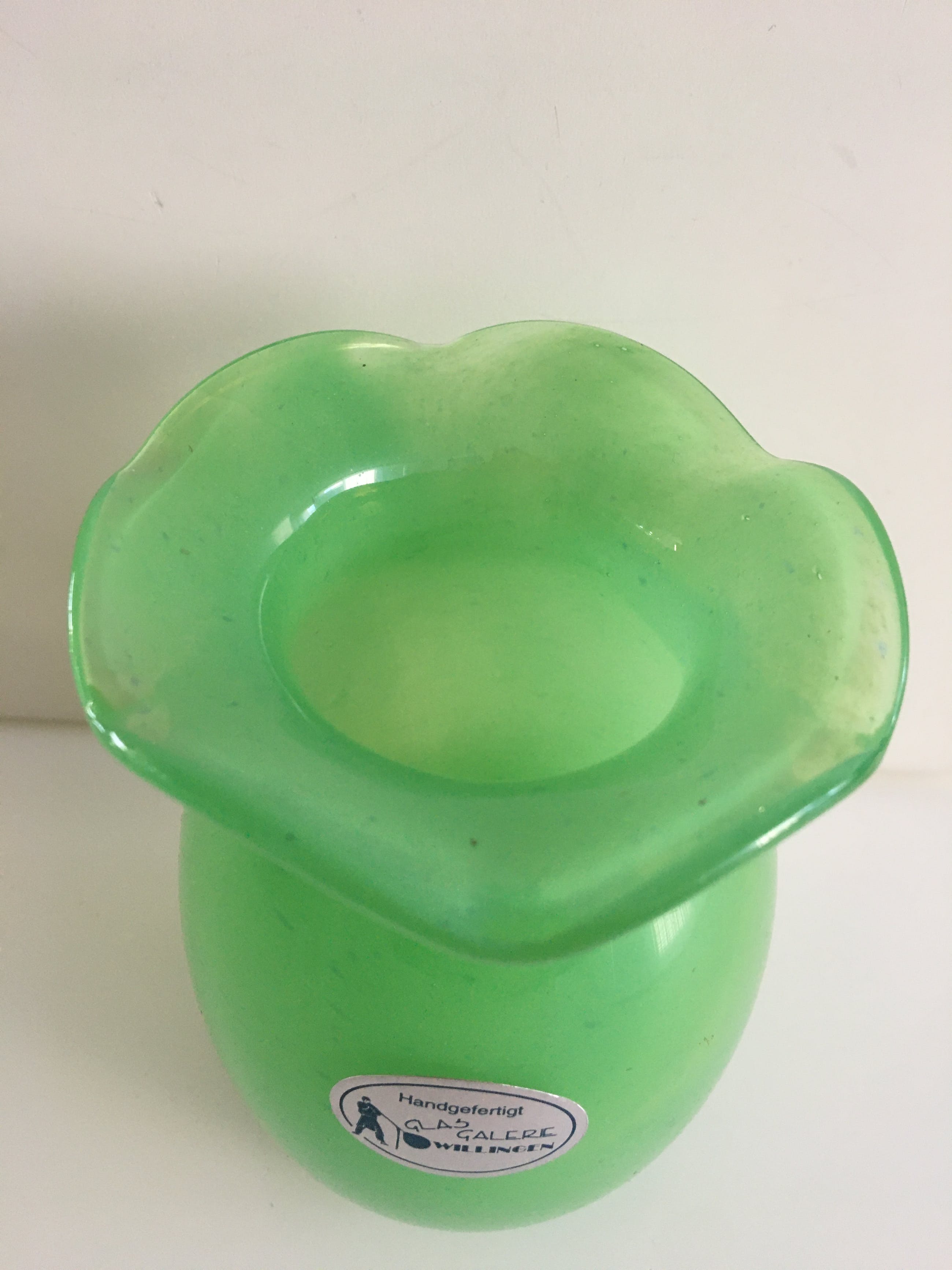 Mooi licht groen vaasje Uit de Duitse Glasgalerie Willingen.