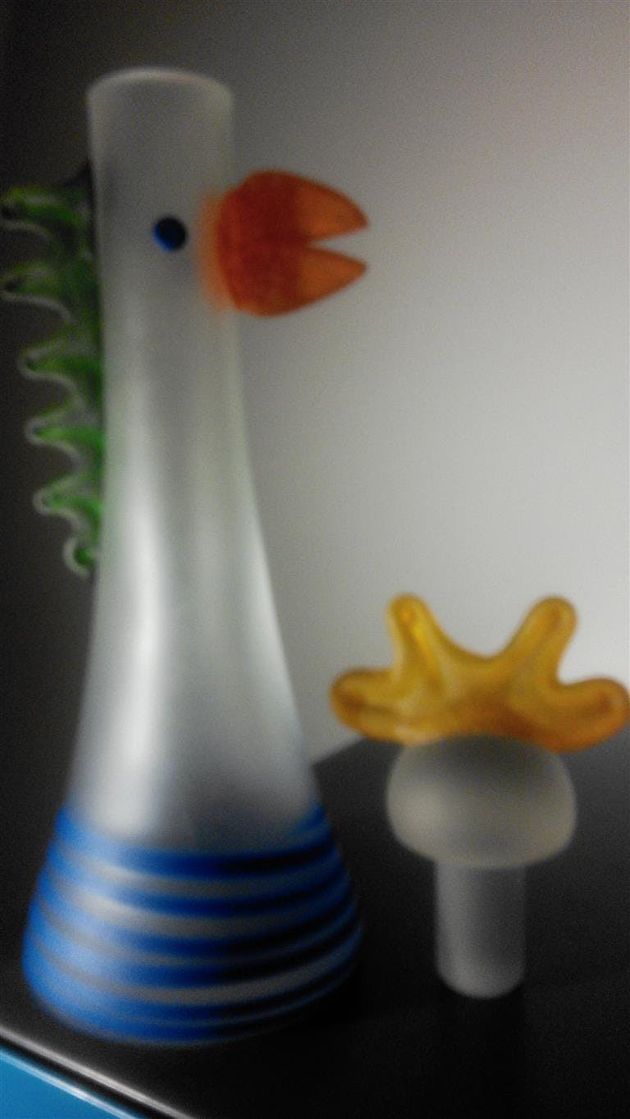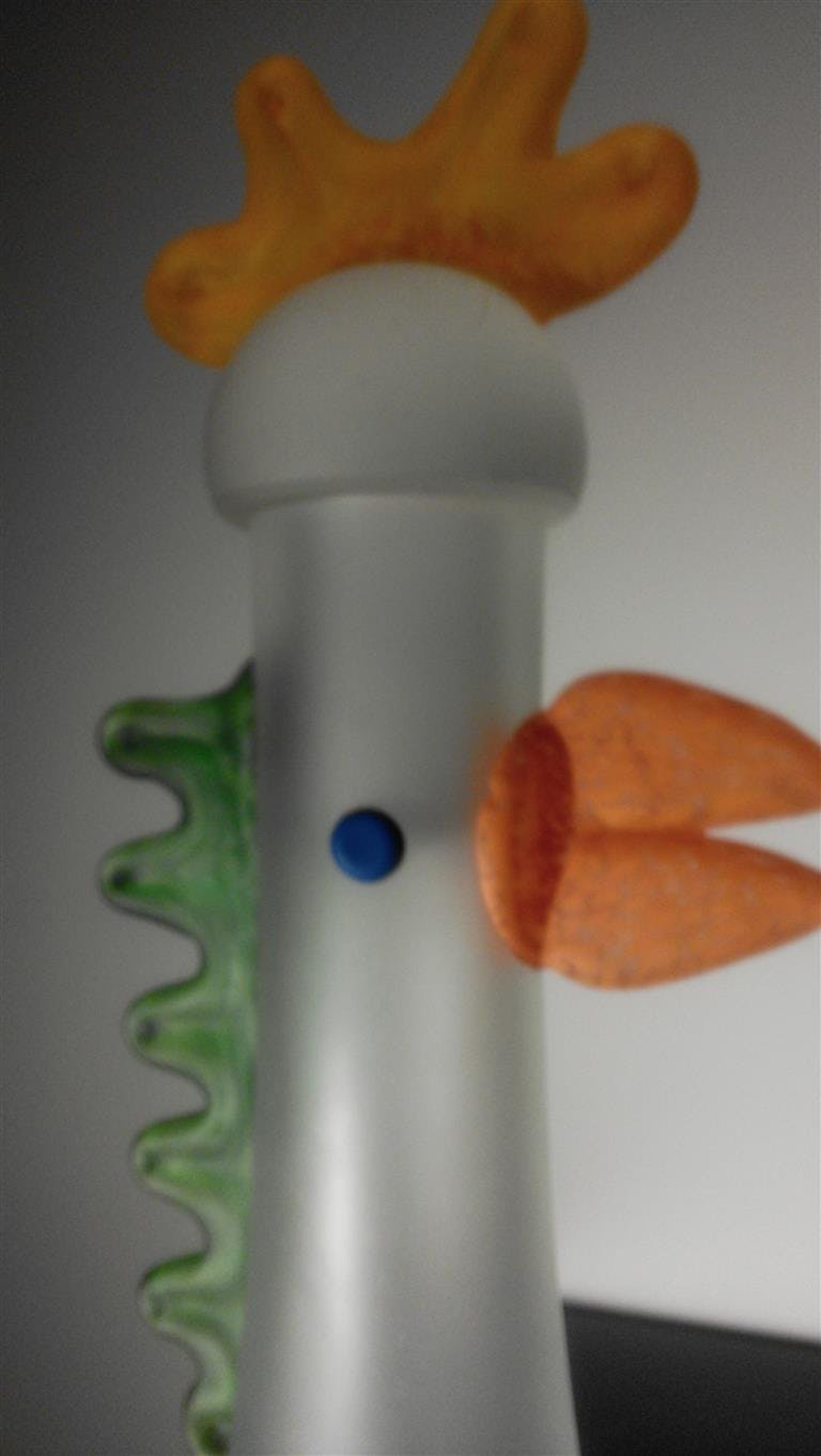 Vrolijk, kleurrijk typisch Glasstudio Borowski Karaf met stop in de vorm van een haan Met sticker en geëtst op de bodem