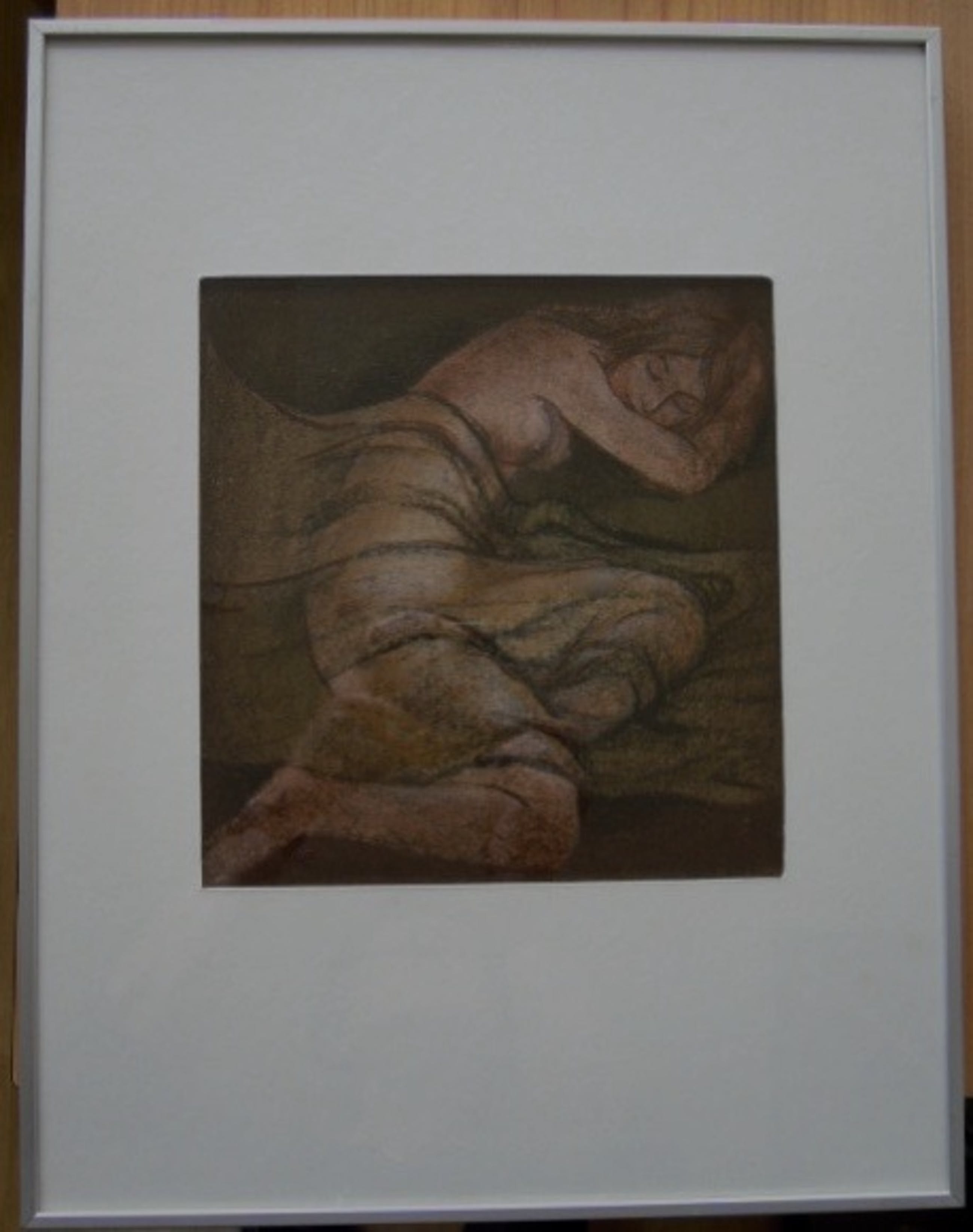 Het schilderij zit in een prachtige strakke lijst met glas en passe - partout.