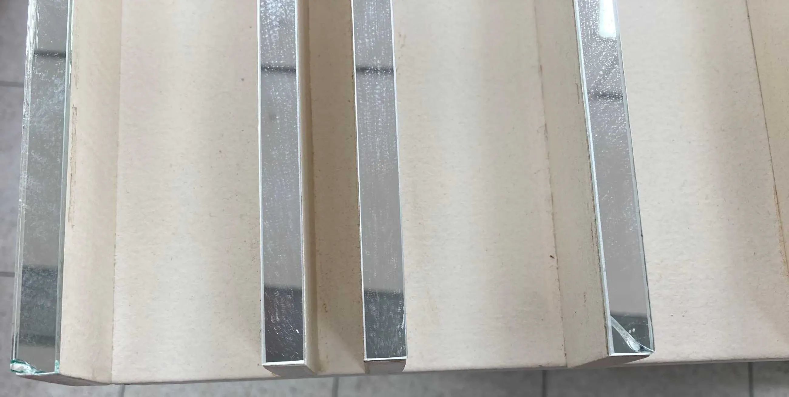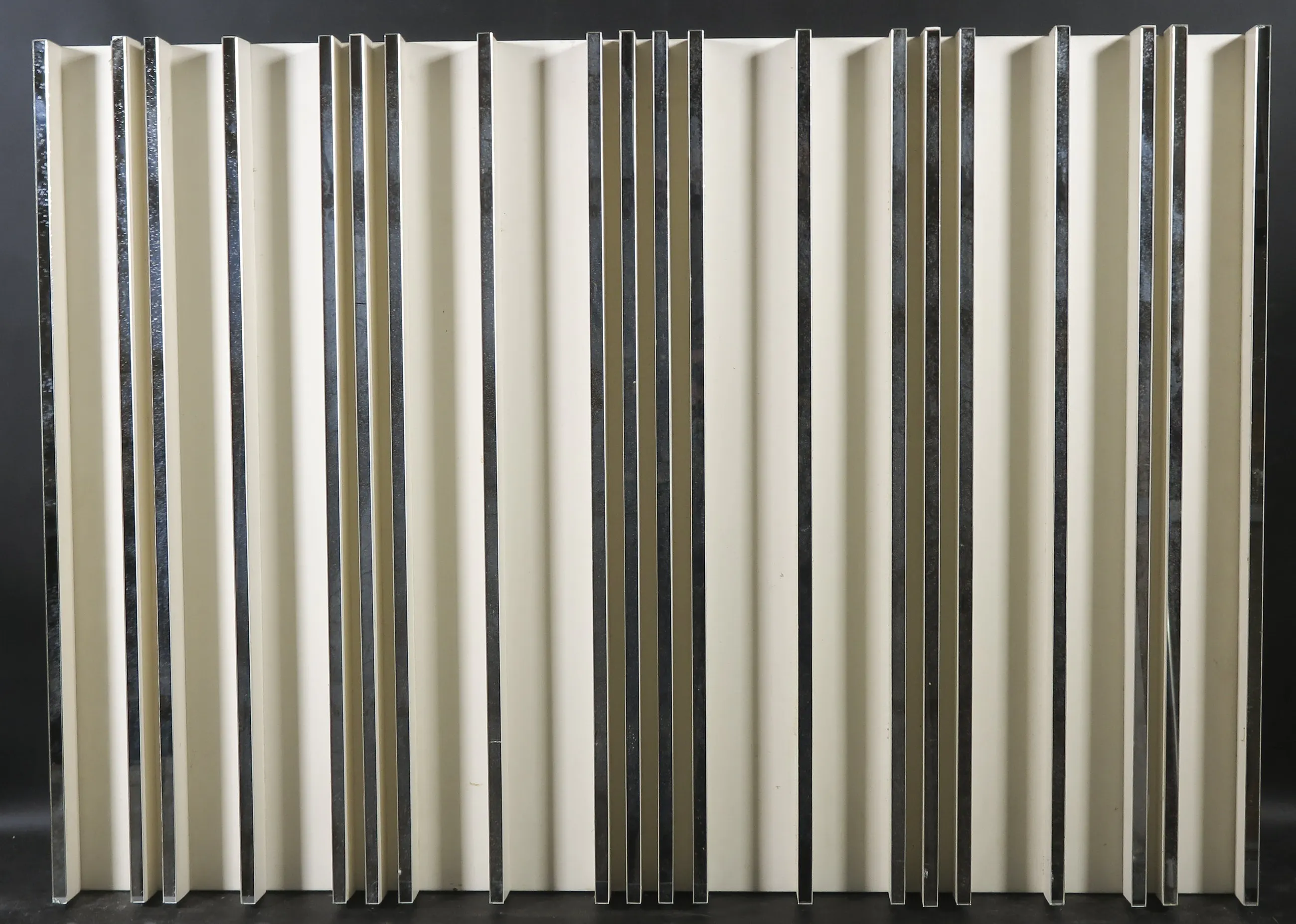 Oppervlaktevuil en wat lichte beschadigingen, waaronder breuk in een van de spiegeltjes (zie detailfoto) aan boven en onderzijde, dit spiegeltje zit ook wat los, en wat kleine beschadigingen aan het hout | |