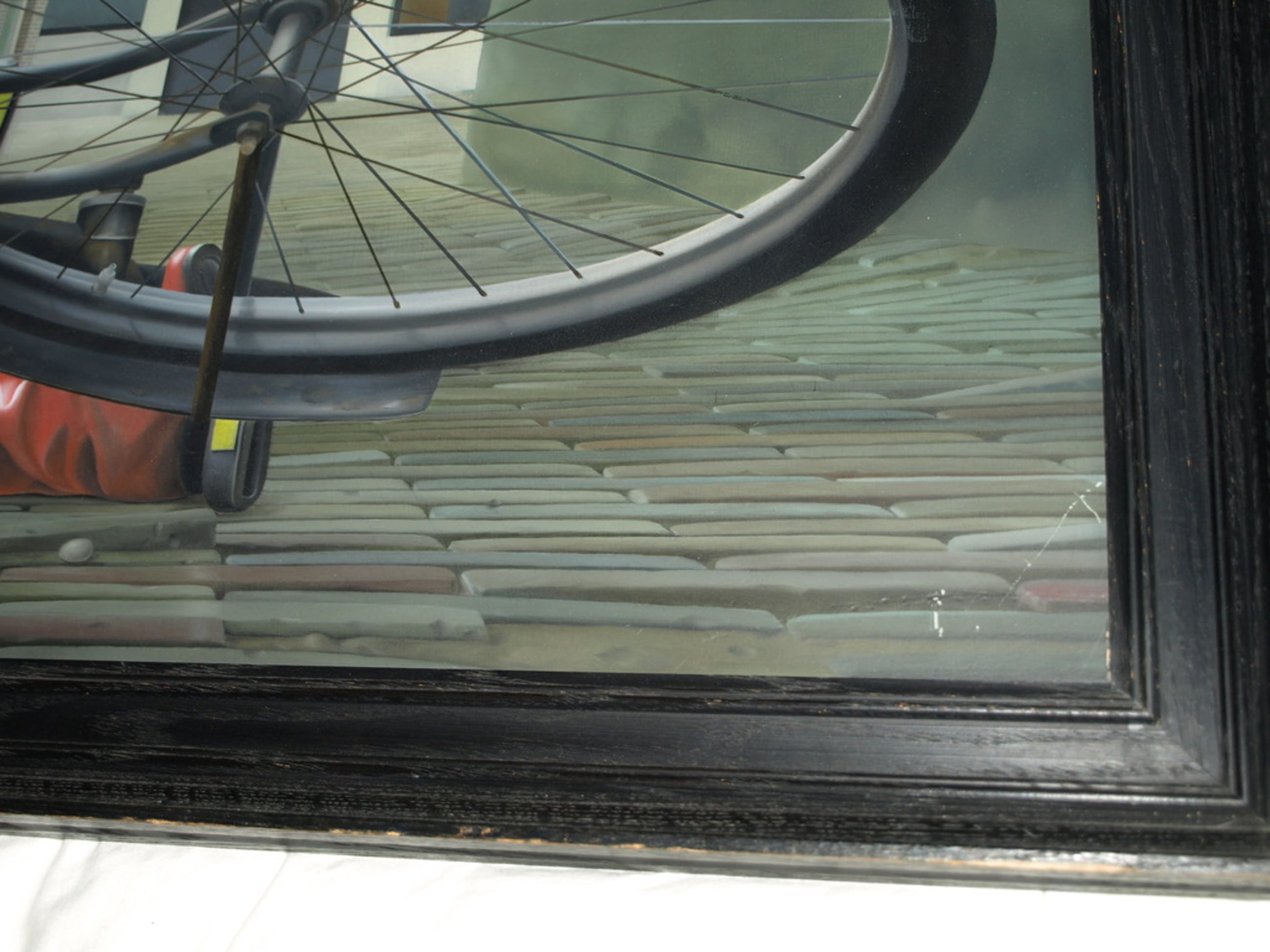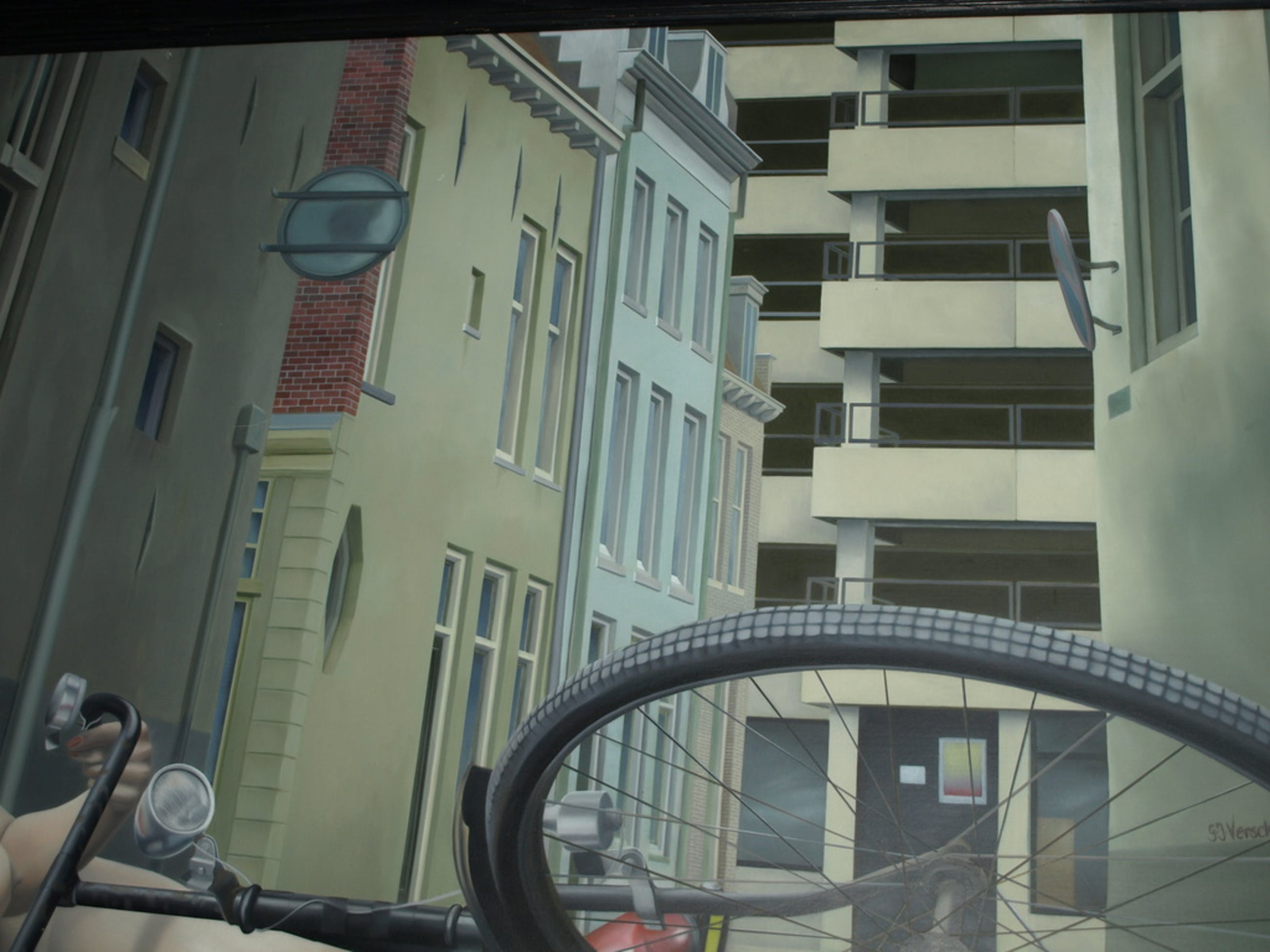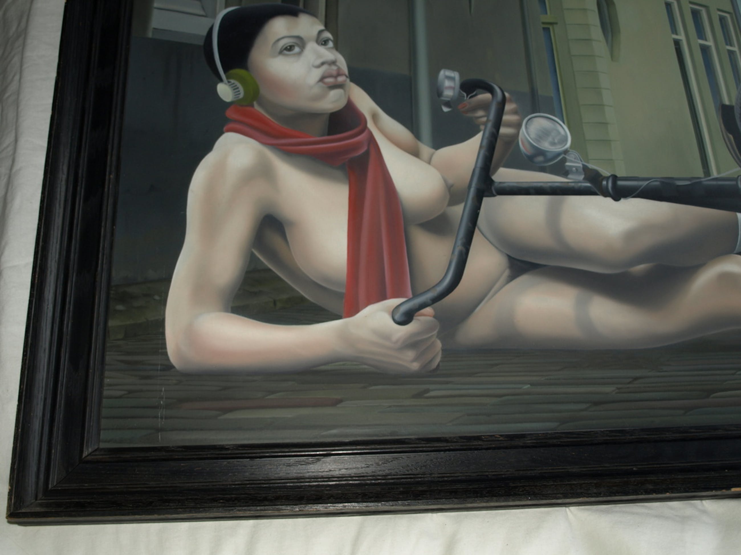 Het werk is een ode aan de Utrechtse kunstenaar J.H. Moesman (1909-1988) en diens bekendste schilderij “Het Gerucht”, een blote dame op een fiets met een viool op de bagagedrager. Anders dan op dit schilderij van Moesman gaat de vrouw op het werk van Godfried van Utrecht onderuit.
