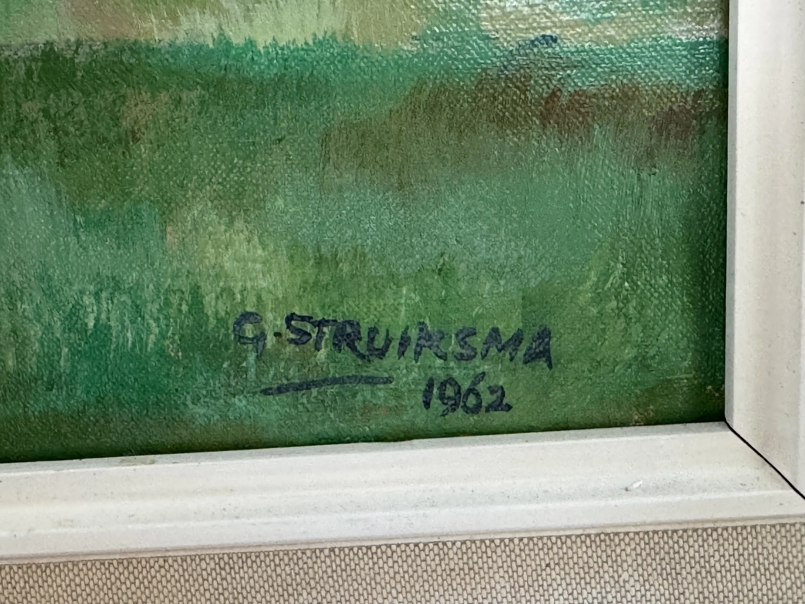 Olieverf schilderij van Goffe Struiksma. In opdracht geschilderd voor de Gemeente Heerenveen in 1962 als afscheidscadeau voor Burgemeester G.H. Kuperus.