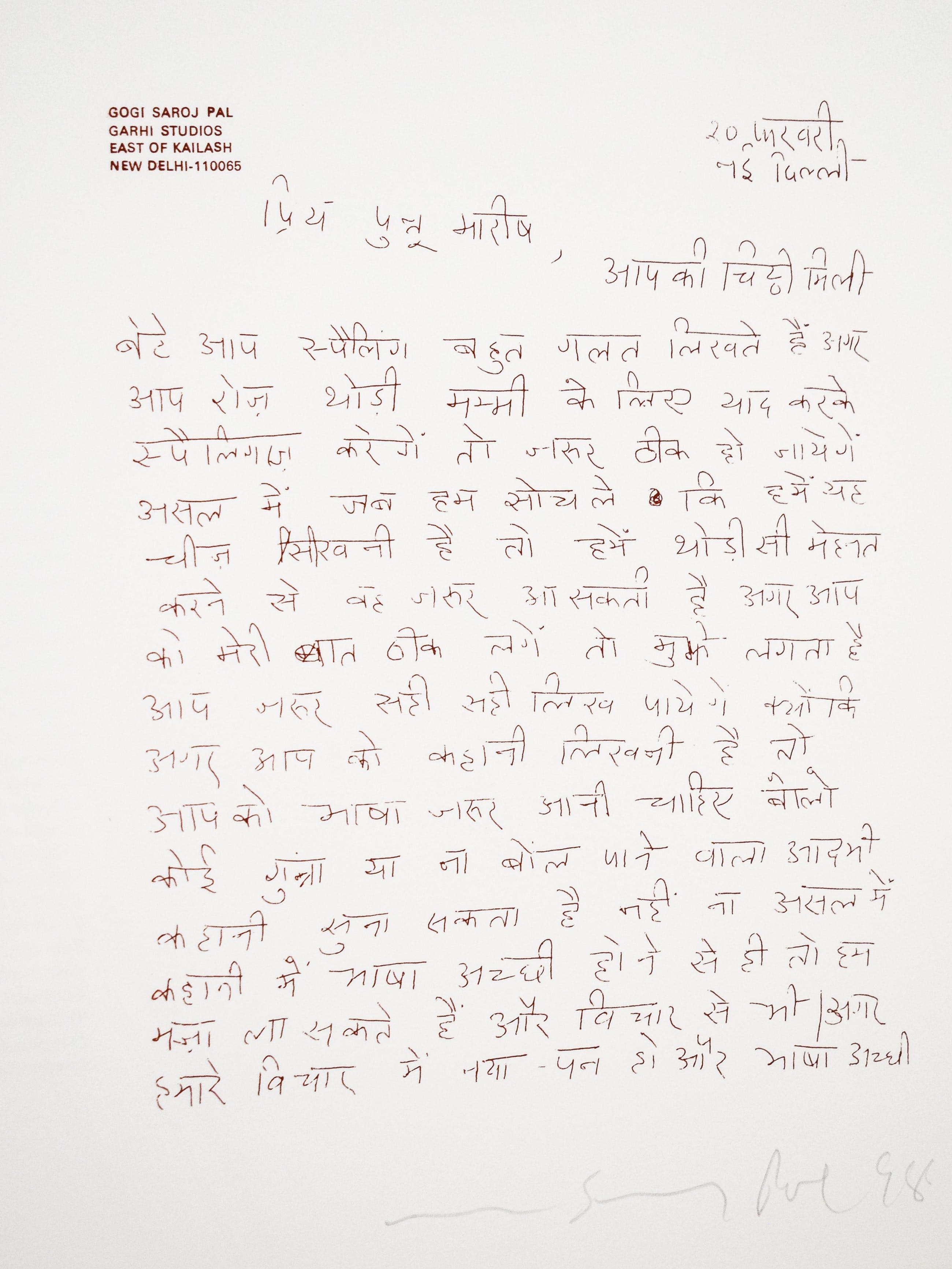 Gogi Saroj Pal (geboren 1945 in Neoli, Uttar Pradesh, India) is een vooraanstaande Indiase kunstenaar. Ze werkt in vele media, waaronder gouache, olie, keramiek en weven. Haar werken hebben meestal vrouwen als onderwerp, en veel van haar schilderijen hebben een fantastisch element dat nog steeds commentaar geeft op de vrouwelijke toestand. Haar vroege werken waren realistischer, maar in de loop van de tijd is ze overgestapt op eenvoudigere, meer gestileerde schilderijen die een aanzienlijke impact hebben.