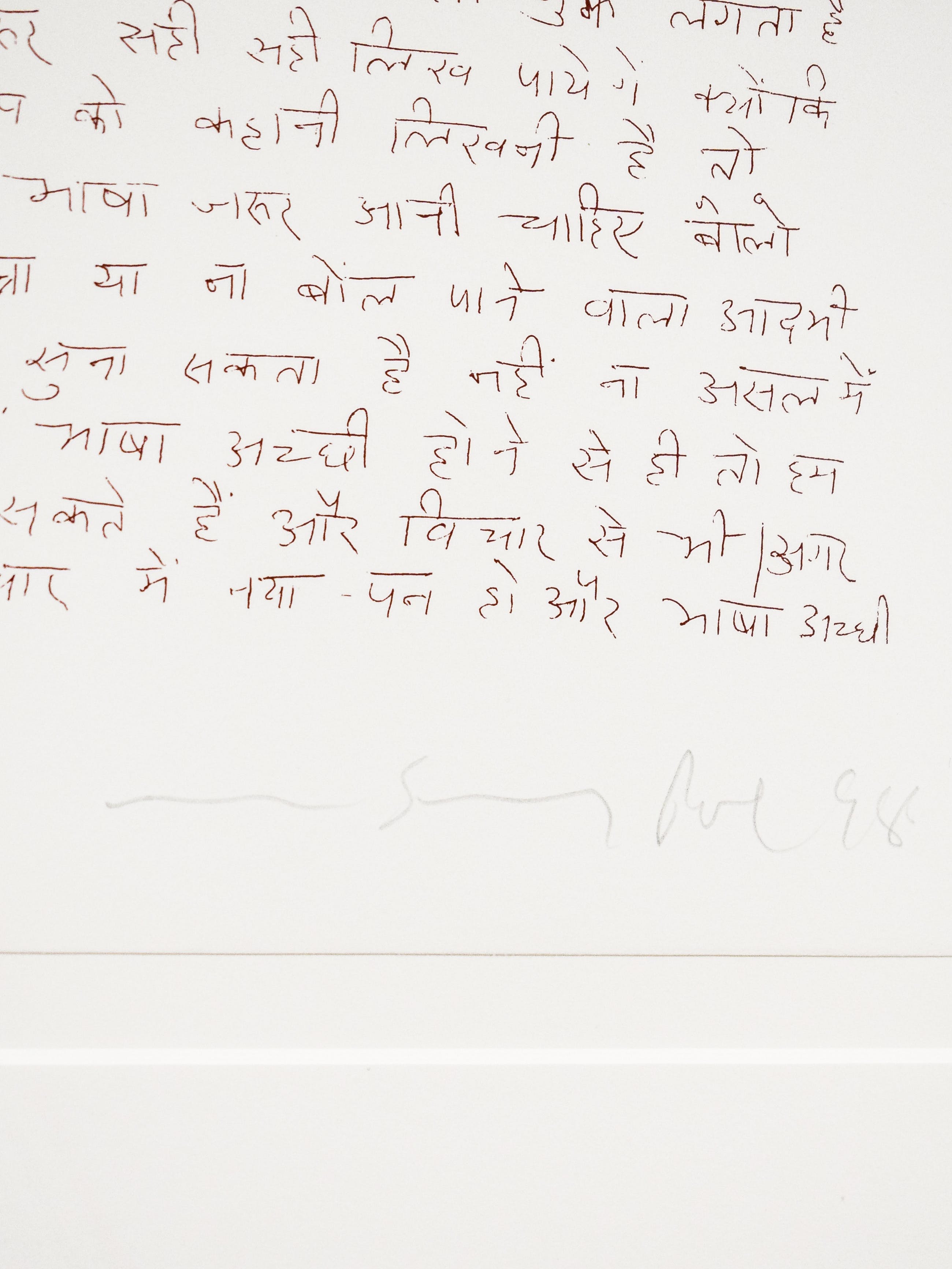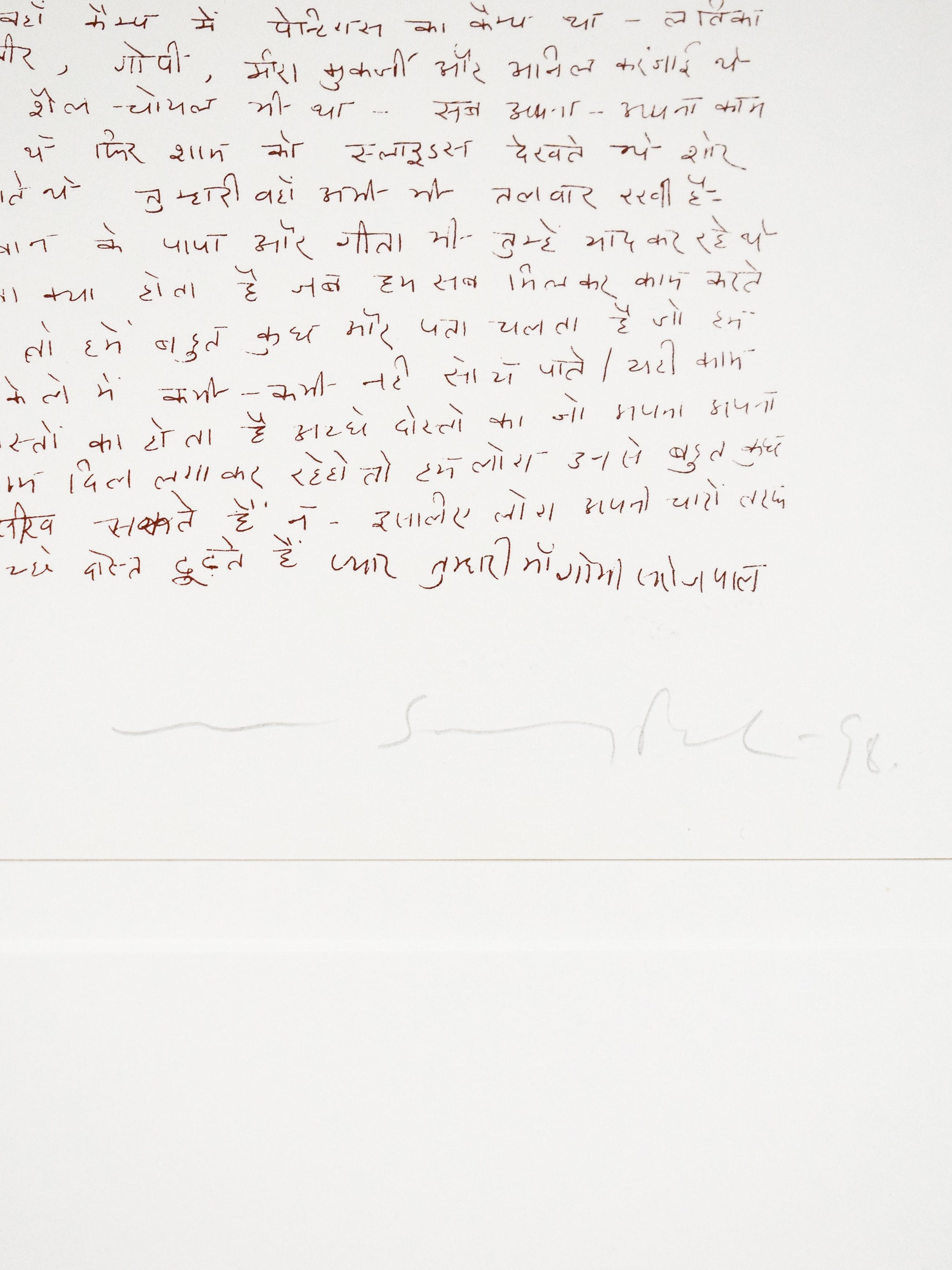 Ze heeft een diploma in schilderen van het College of Art in Lucknow, Uttar Pradesh, India. In de loop der jaren heeft ze bijna 30 soloshows gehad en een aantal prijzen gewonnen, waaronder de National Award van de Lalit Kala Akademi. Ze nam ook deel aan een groot aantal groepstentoonstellingen zowel in India als daarbuiten: onder andere Joegoslavië, Duitsland, Frankrijk en Japan. Aangezien het werk uit een bedrijfscollectie komt, kan de lijst wat gebruikssporen overeenkomstig met de leeftijd tonen, deze zijn eenvoudig te verwijderen door de houten lijst licht op te schuren