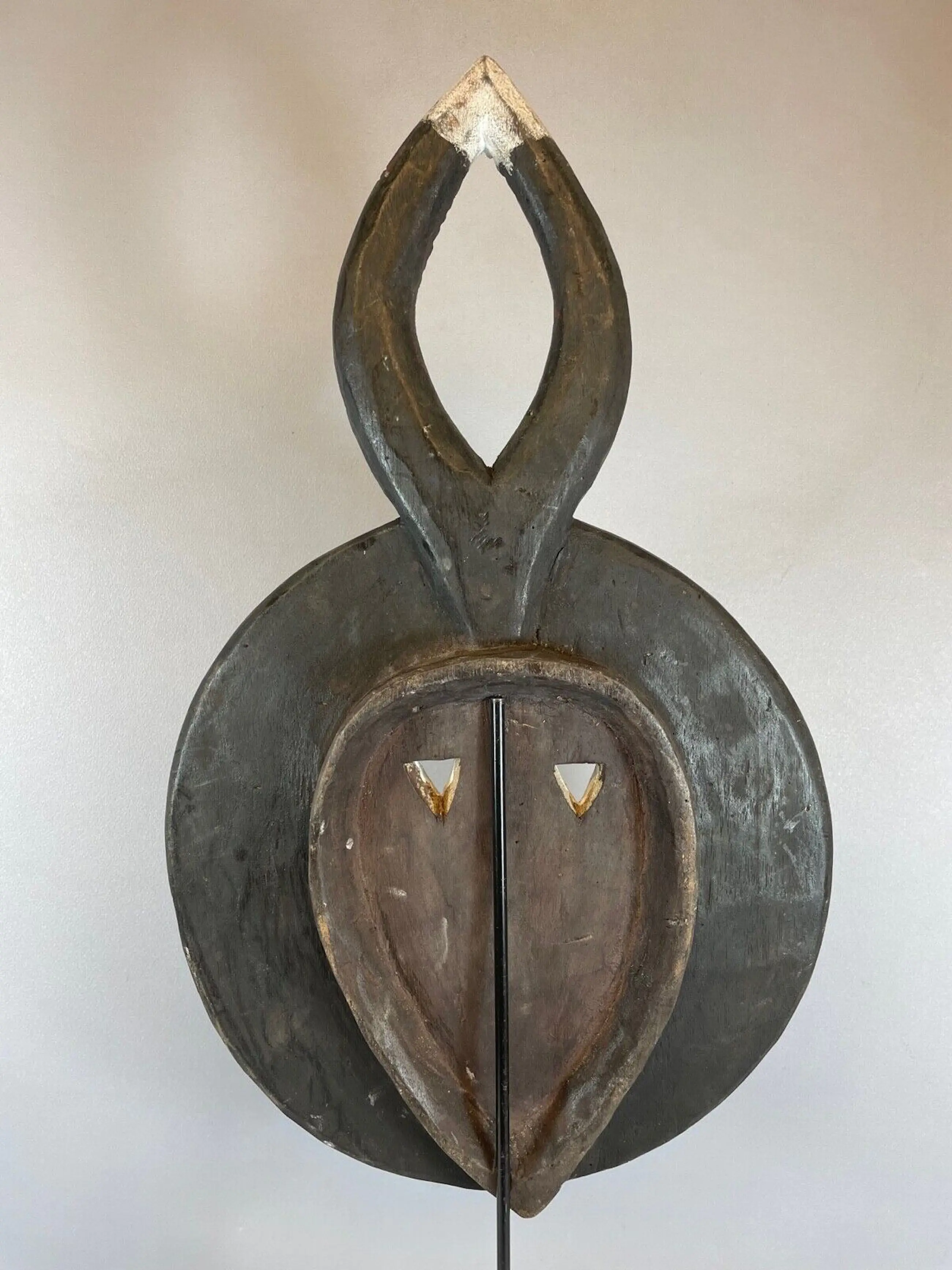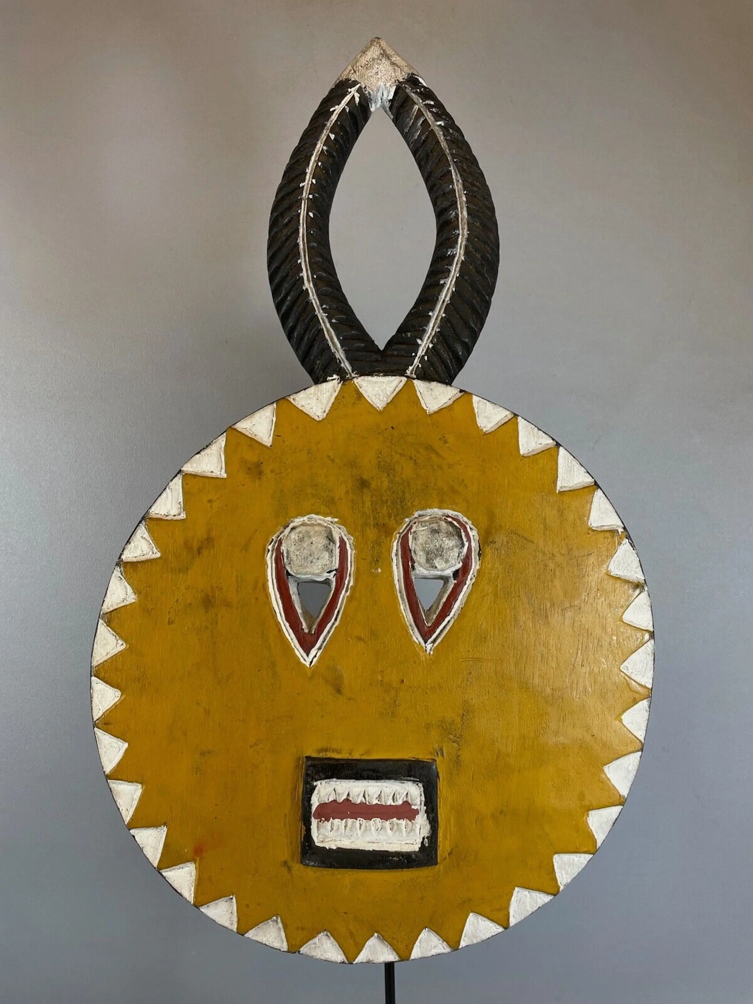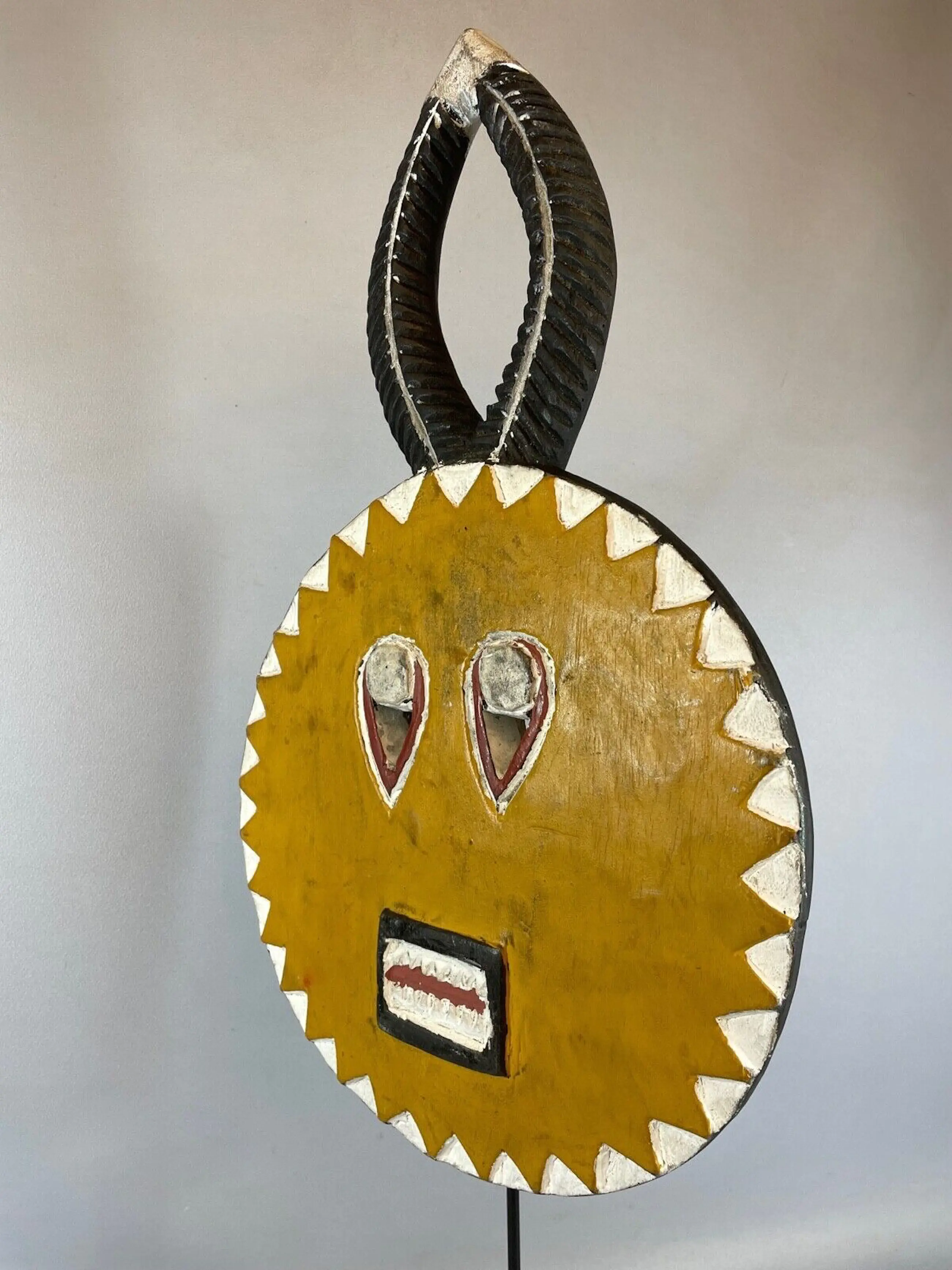The goli is also paraded during the occasions of a new harvest, the visit of dignitaries, or at the funerals of notables. This is a unique mask that is steeped in tradition, The unusual shape has made this mask one very sort after African mask for collectors All sizes listed are approximate.