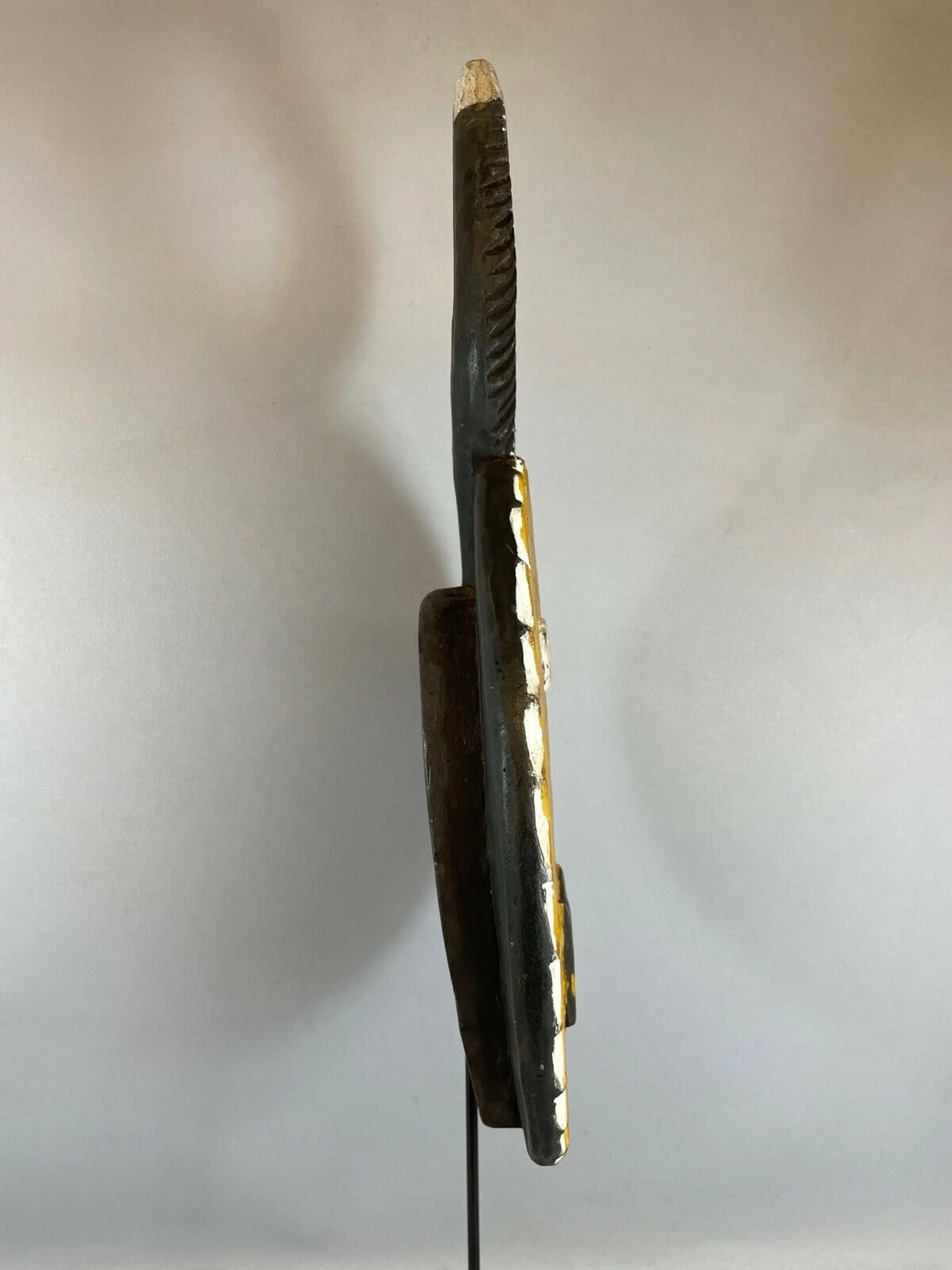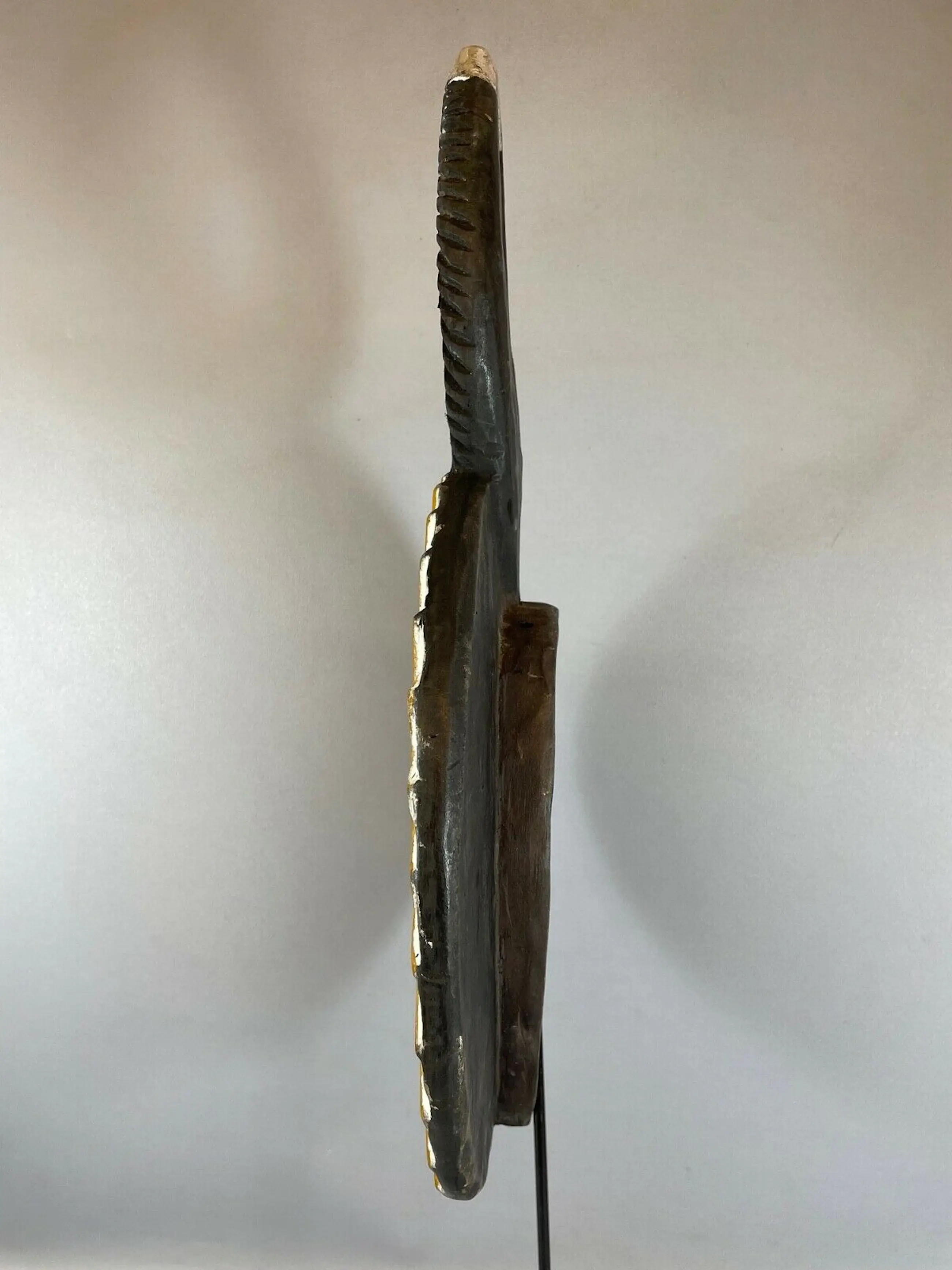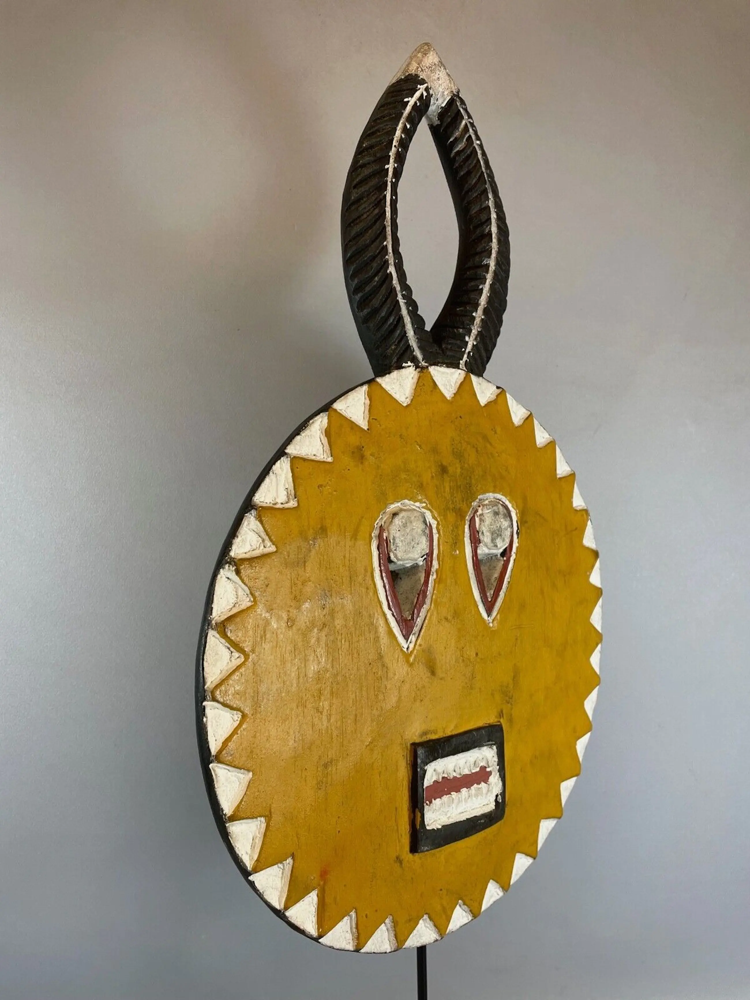 The goli is also paraded during the occasions of a new harvest, the visit of dignitaries, or at the funerals of notables. This is a unique mask that is steeped in tradition, The unusual shape has made this mask one very sort after African mask for collectors All sizes listed are approximate.