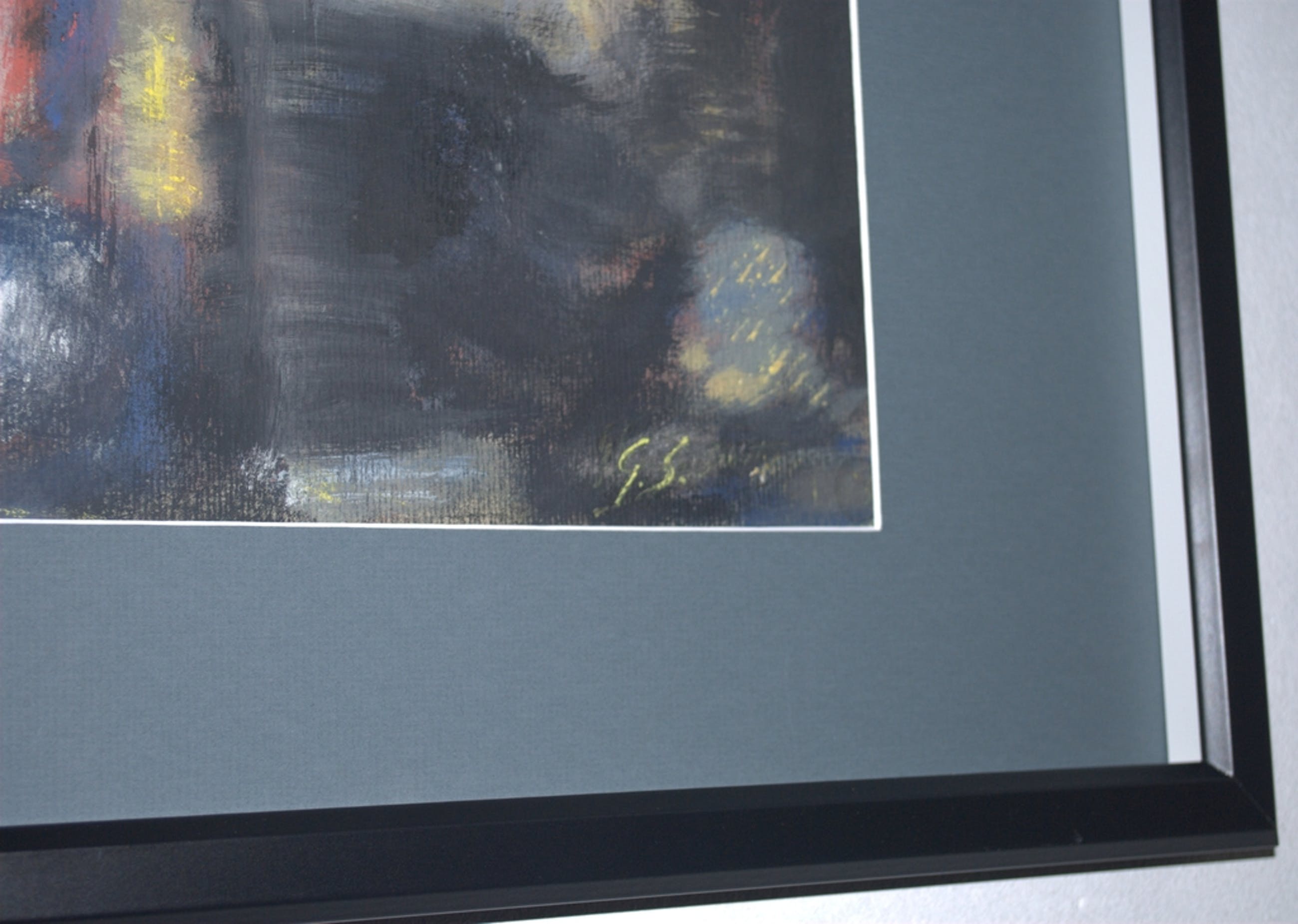 Achter plexiglas en passepartout, in een fraaie lijst, 54X73 cm.