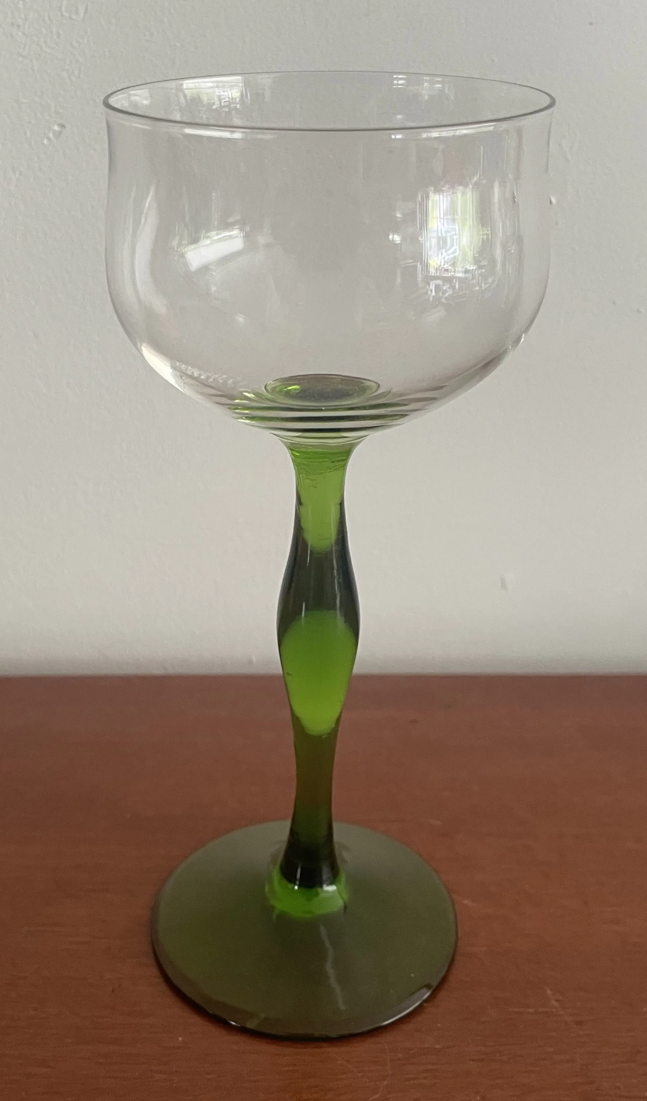 3 x kikkerpoot wijnglazen uitgevoerd in groen en helder glas. Ontwerp Göran Hongell in 1947 en geproduceerd tussen 1947-1966 bij Karhula. In zeer goede gebruikte conditie. Geen schade.