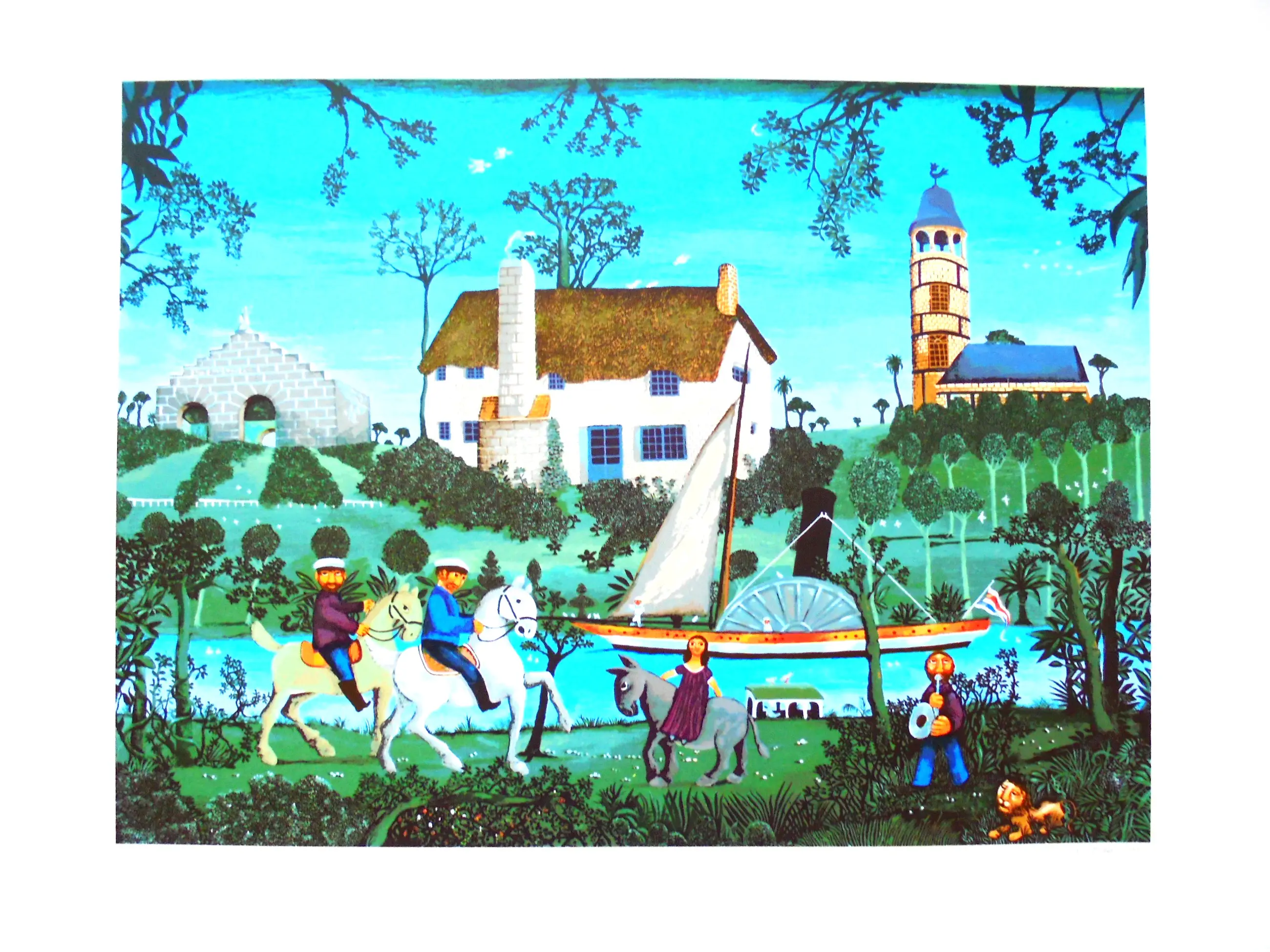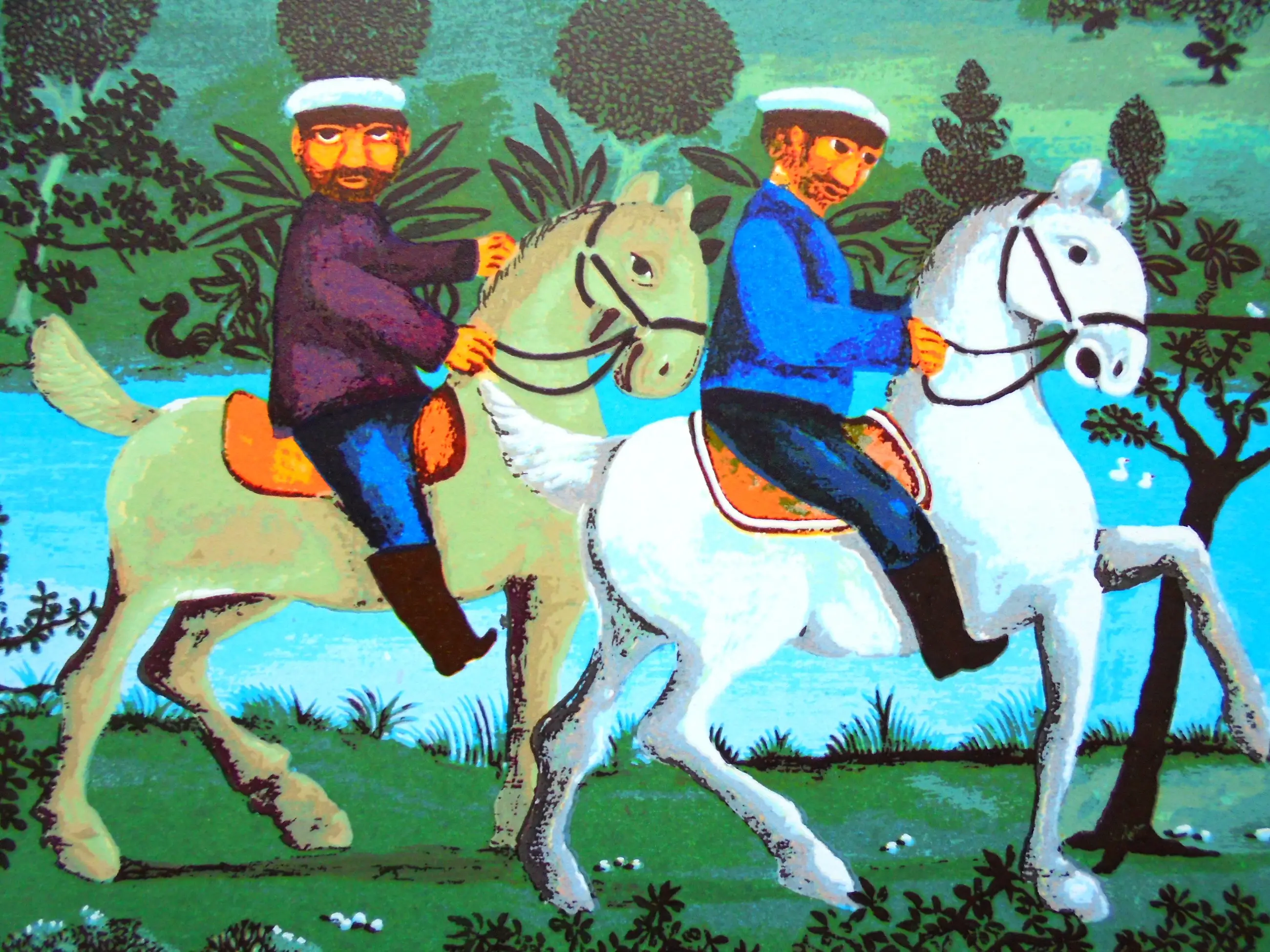 Gorki Bollar - Romantisch uitje langs het water. Naïeve kunst. Prachtig van kleur.