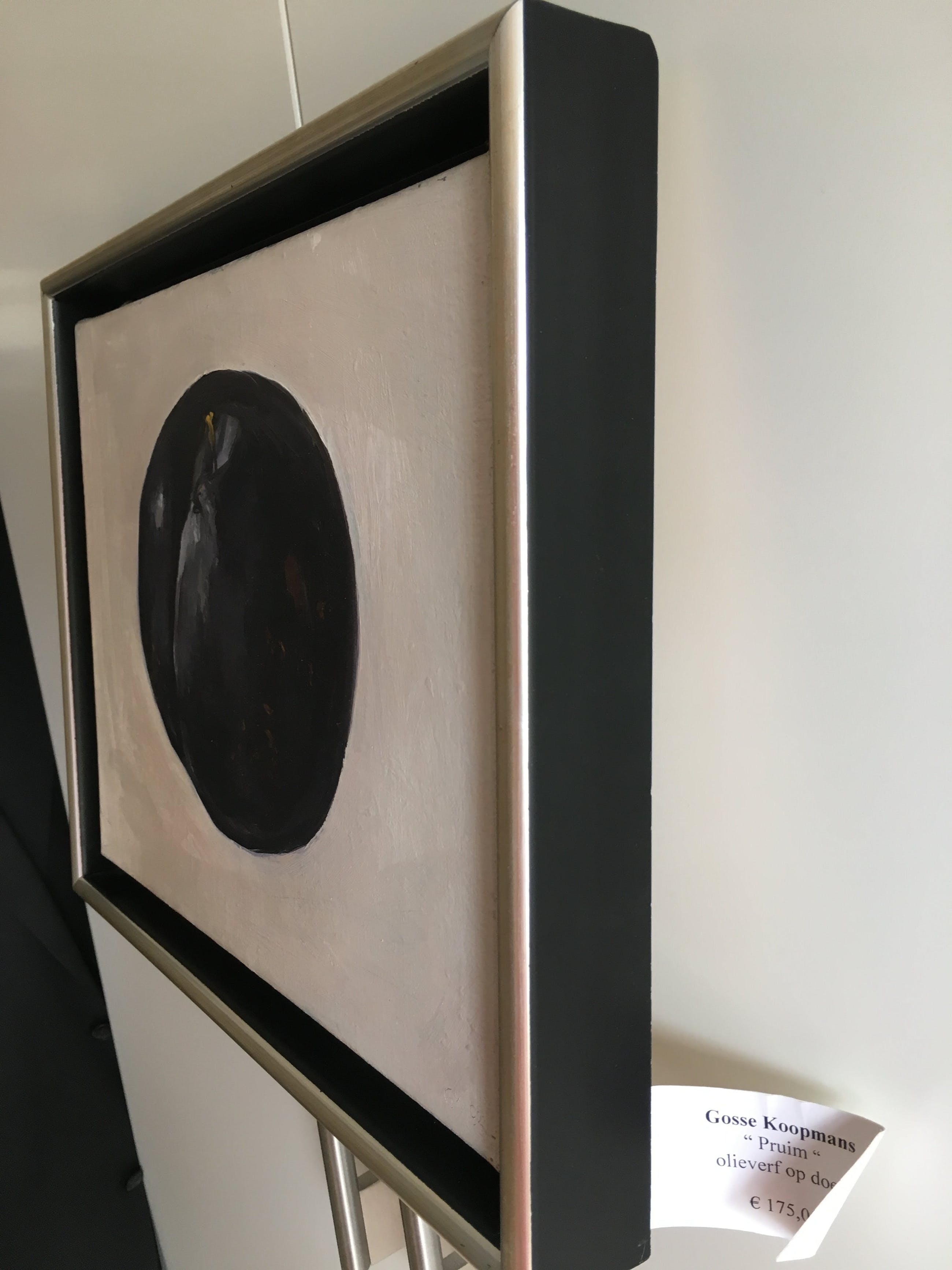 Mooi simplistisch stilleven van Gosse Koopmans op een zeer mooie manier in een goed toonbare lijst geplaatst. Het schilderij vormt als gewild een twee-eenheid met mijn andere aangeboden werk (de schaal). De eenvoud van de studie maakt het een uniek object en een bijzonder exemplaar van de kunstenaar Gosse Koopmans.
