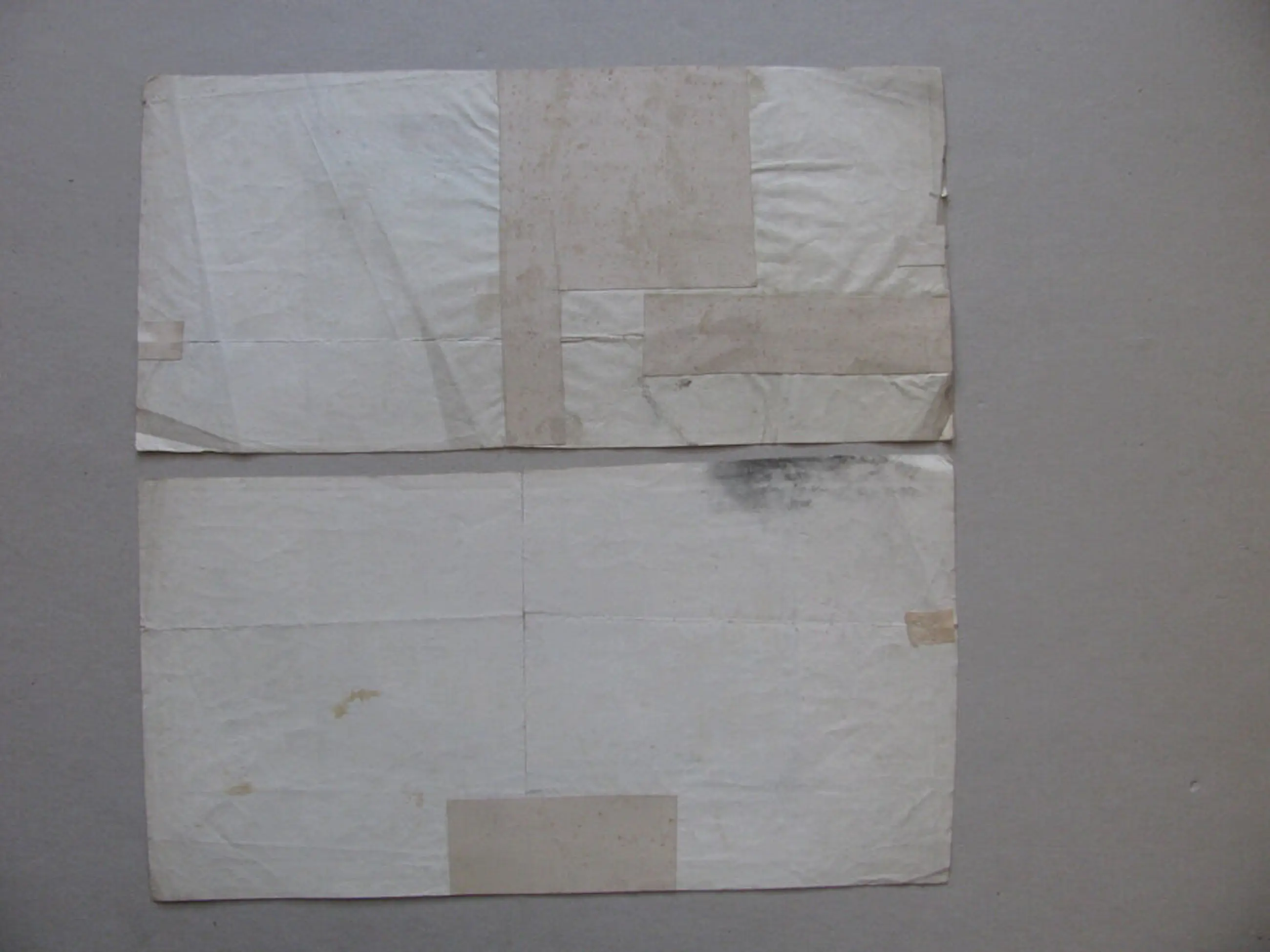 | Scheuren gedeeltelijk verstevigd met oud, handgemaakt papier. | |||||||