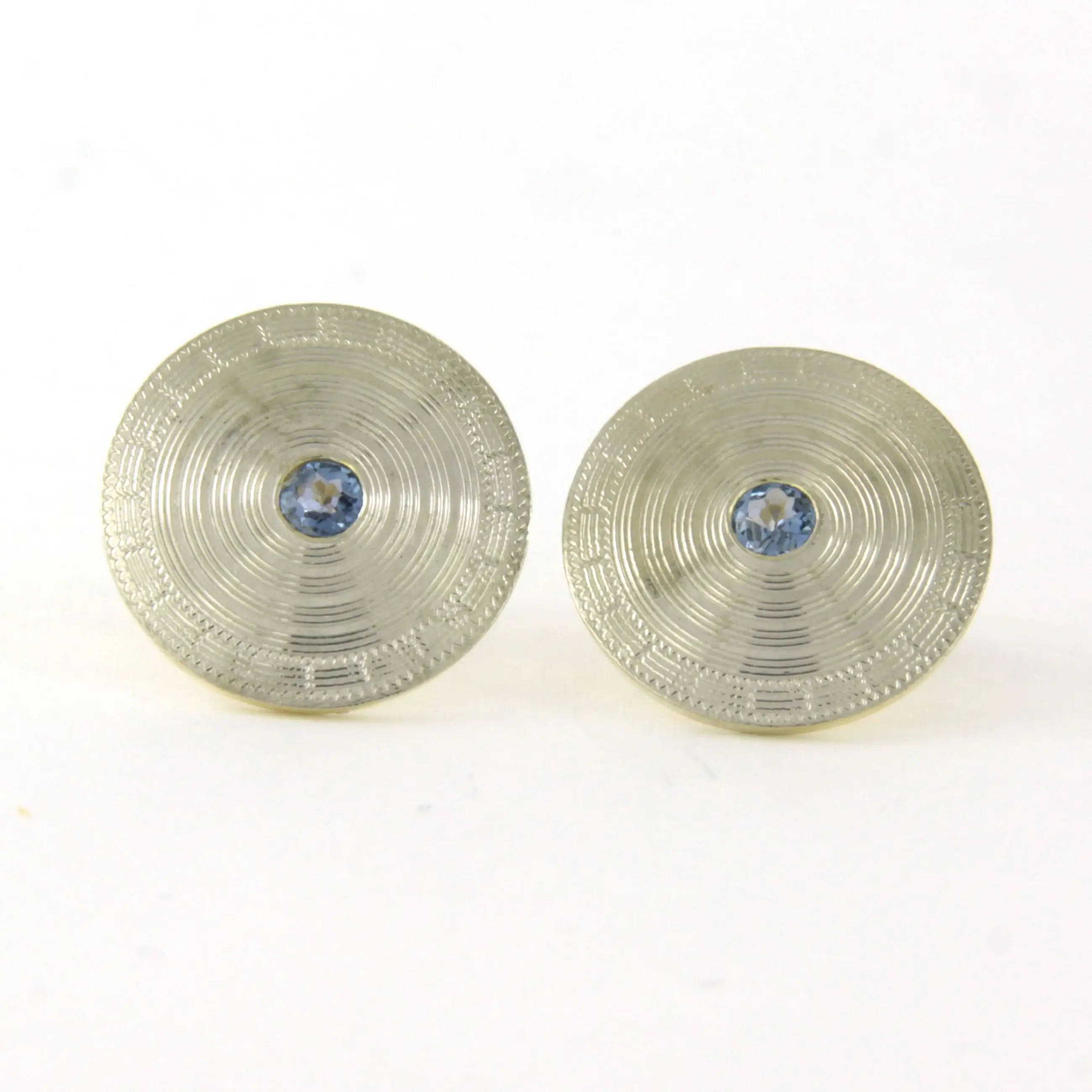 Goud met platina oorknoppen bezet met saffier 5.3 gram
