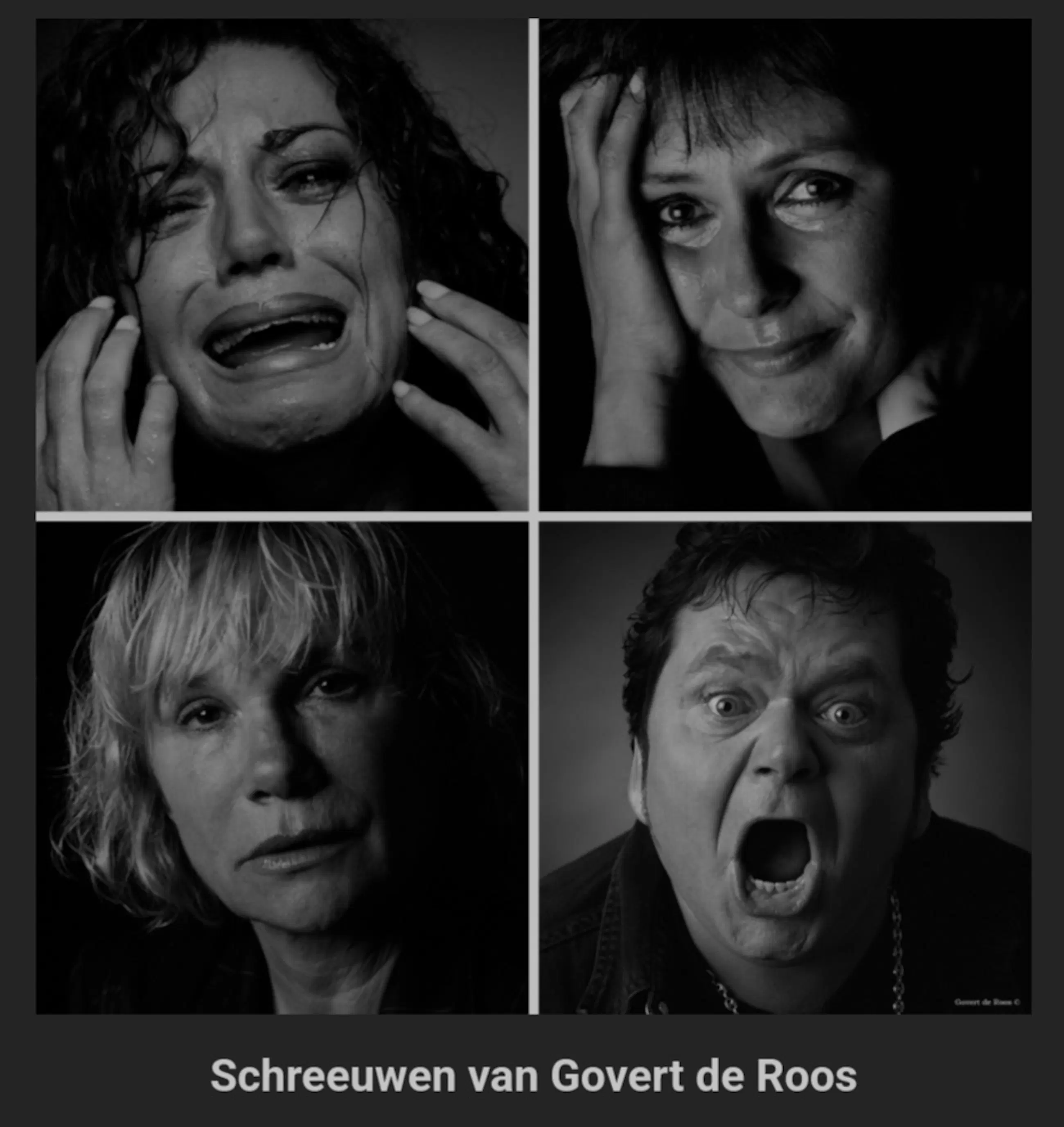 Fotoboek van Govert de Roos met indrukwekkende en spraakmakende zwart-wit portretten van bekende Nederlanders in een heftige gemoedsgesteldheid. In woedende, huilende of schreeuwende toestand zijn o.a. afgebeeld: Herman Brood, Barry Hay, Rob de Nijs, Chantal Janzen, André Hazes, Kitty Courbois en Katja Schuurman.