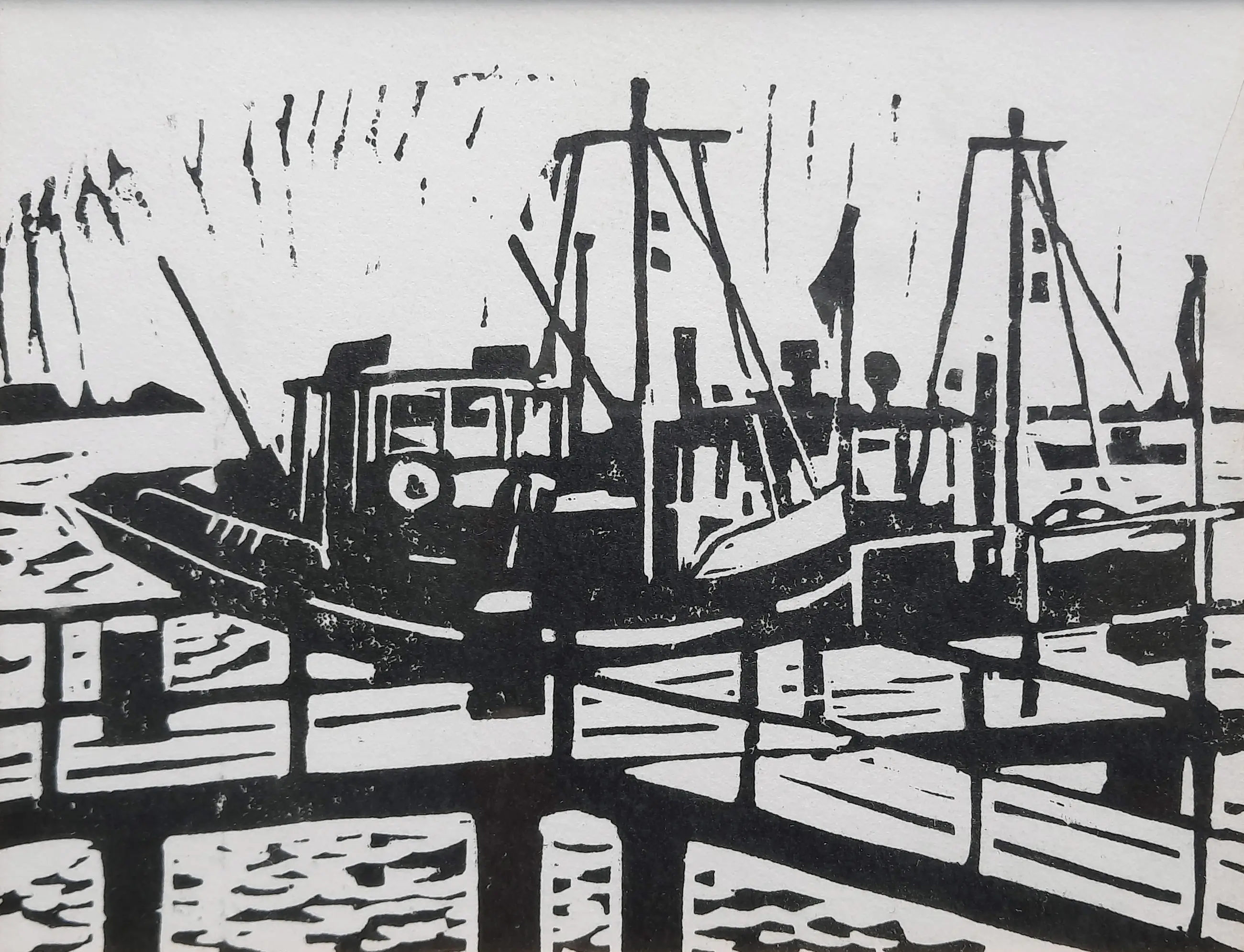 In authentiek lijstje achter glas en in passe-partout. Uitsnede 10 x 13 cm. Uitgegeven als nieuwjaarskaart door de kunstenaar zelf.