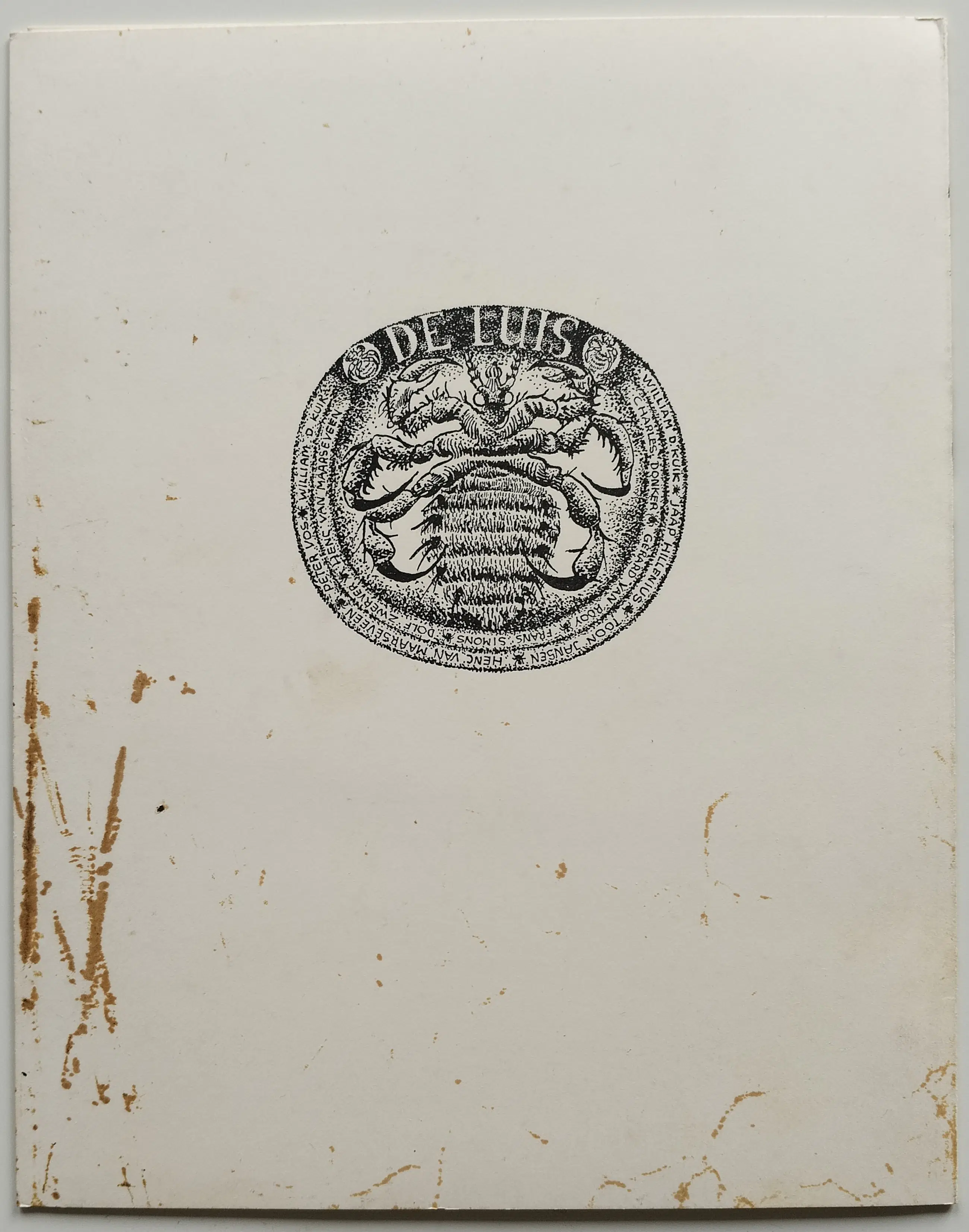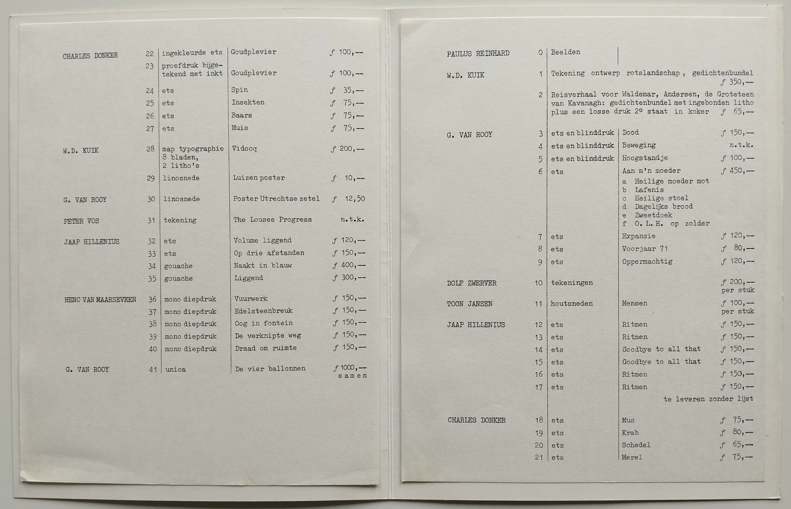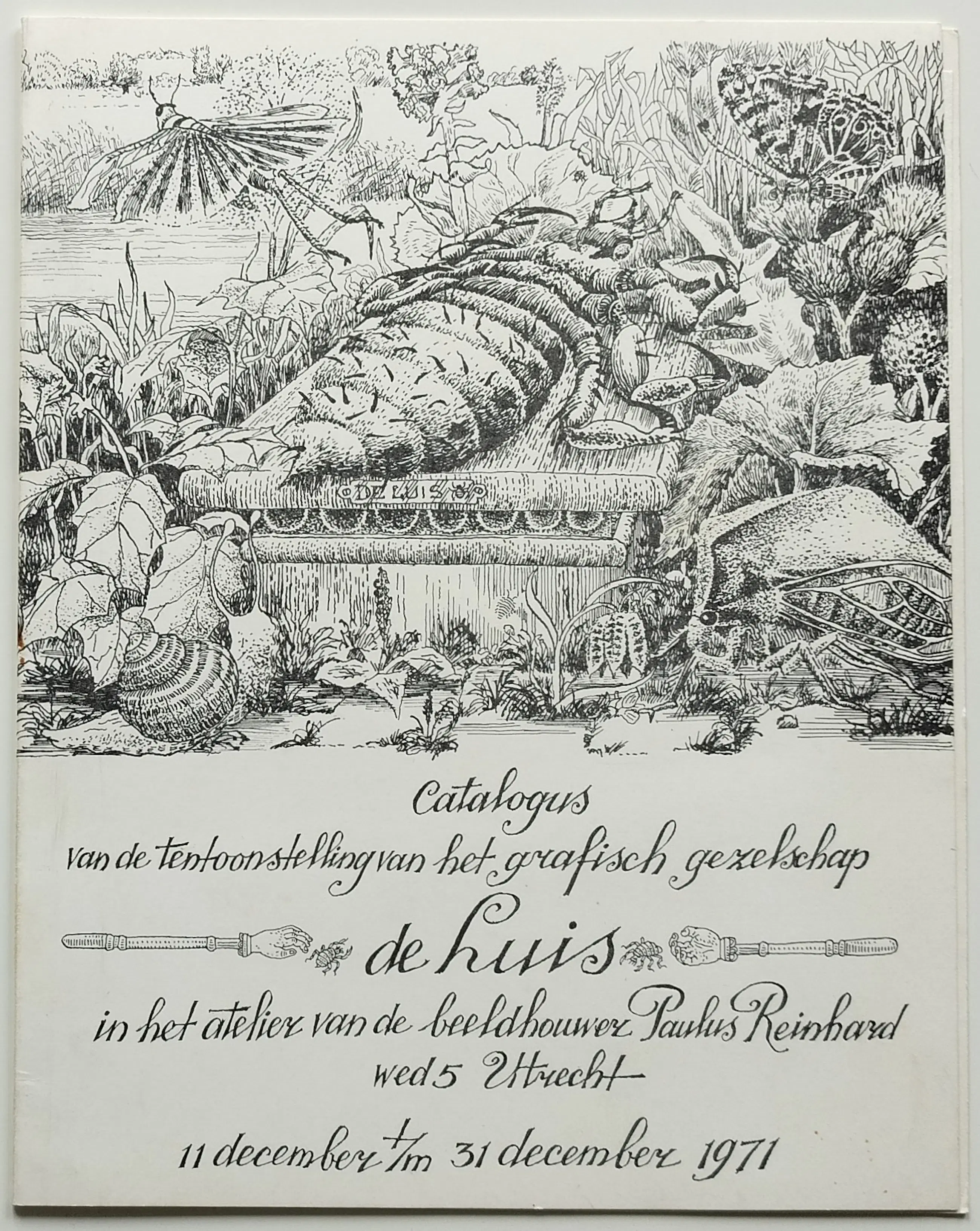 Catalogus in het atelier van beeldhouwer Paules Reinhard 1971 met prijslijst Afmeting 25x20 cm (hxb) Achterkant heeft vlekken, verder goed.