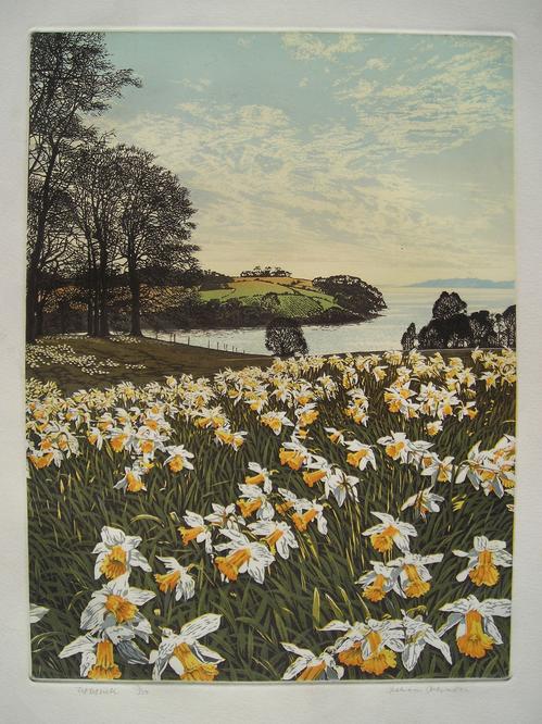 Graham Evernden - Osterglocken auf der Wiese, Farbradierung, handsign.