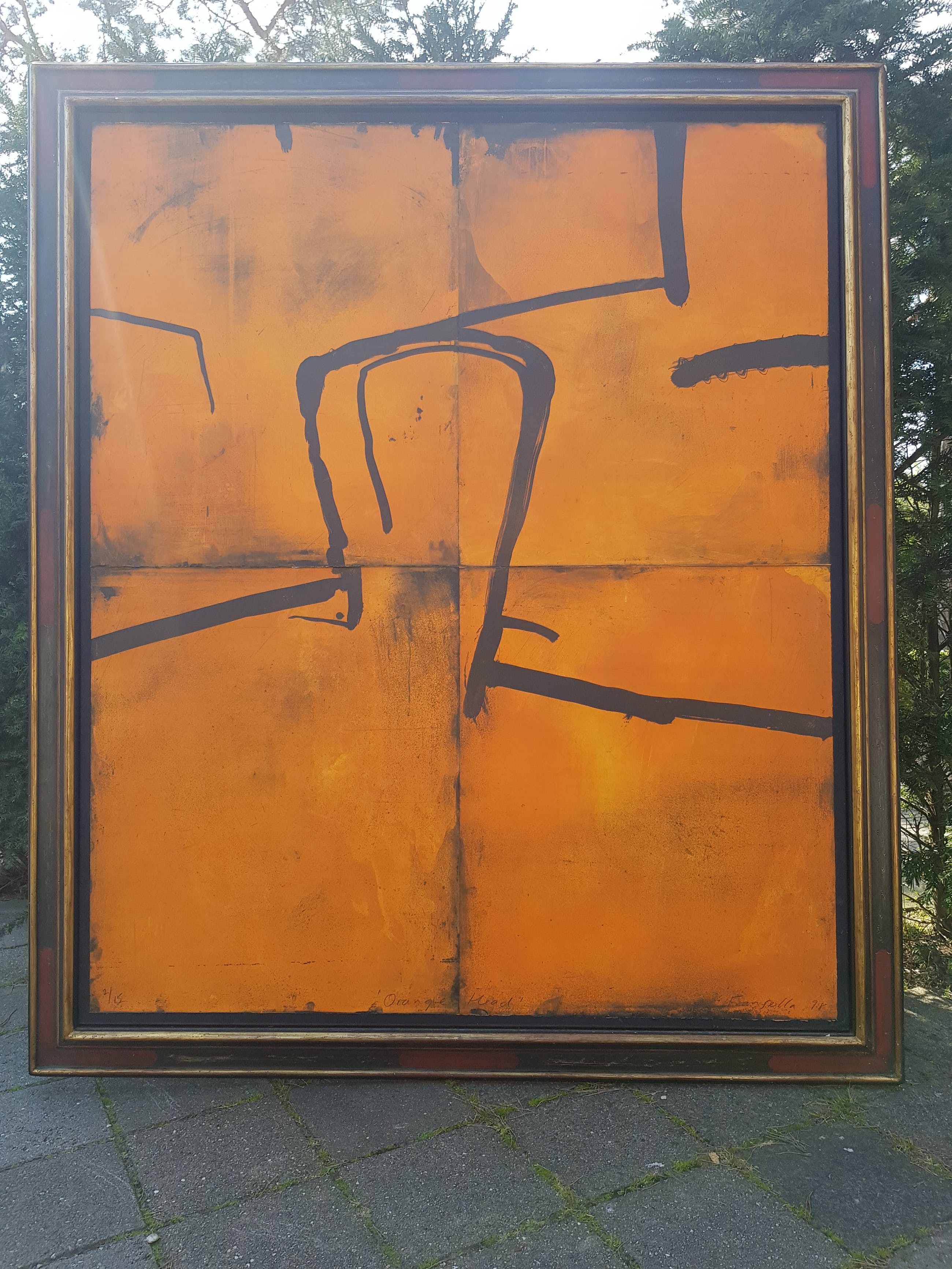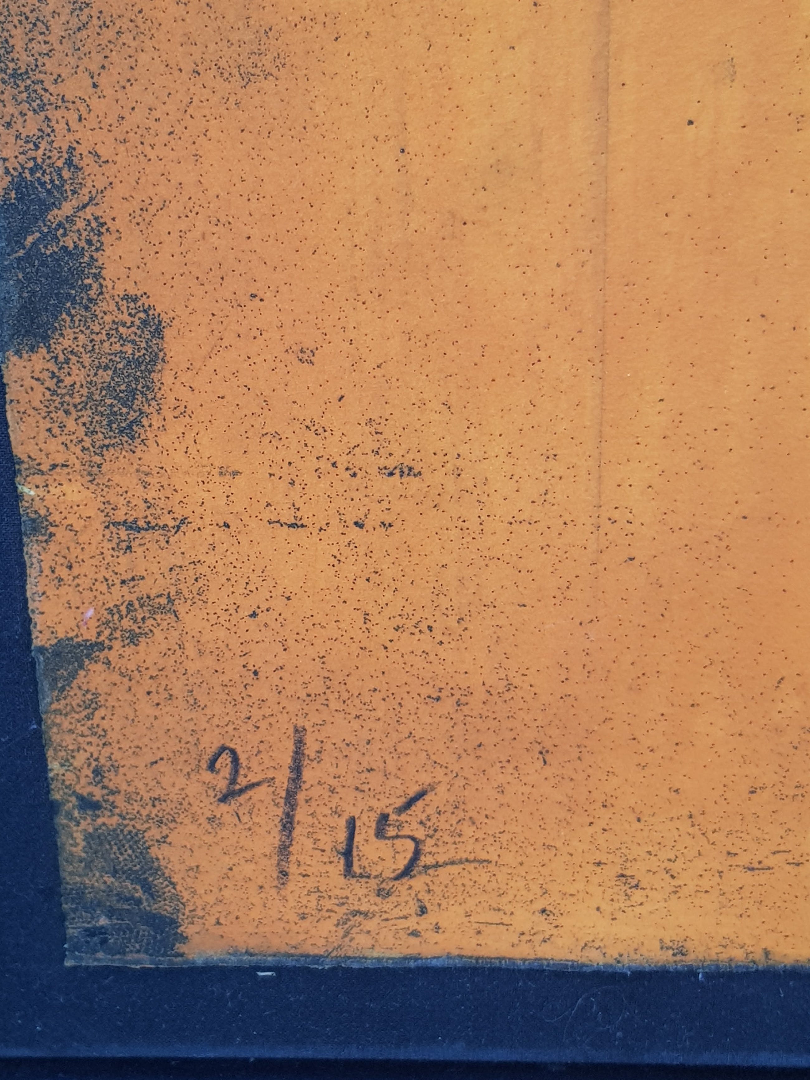 Zeer bijzondere grafiek van de Australische kunstenaar Graham Fransella. Het werk heeft een oplage van 15 stuks, dit betreft editie-nummer 2. Het is een monumentaal werk, bestaande uit 4 verschillende etsen. Het heeft als titel "Orange Head".