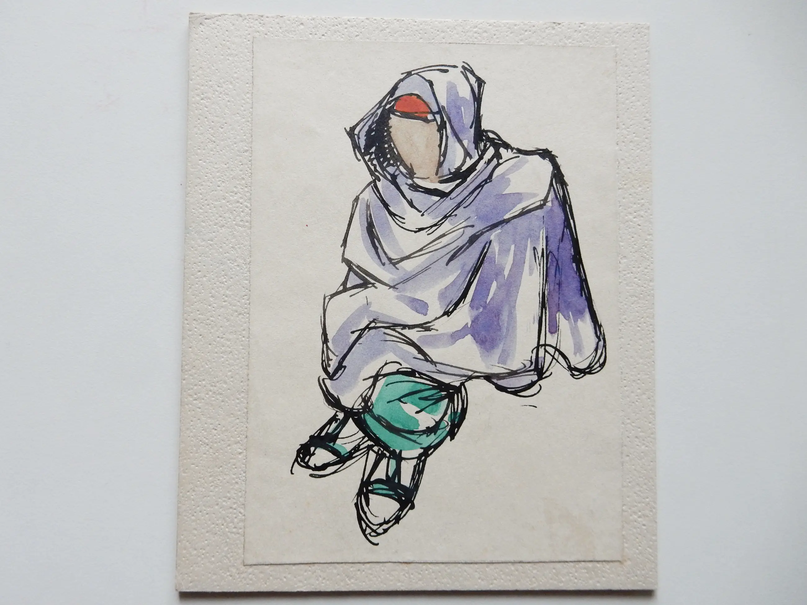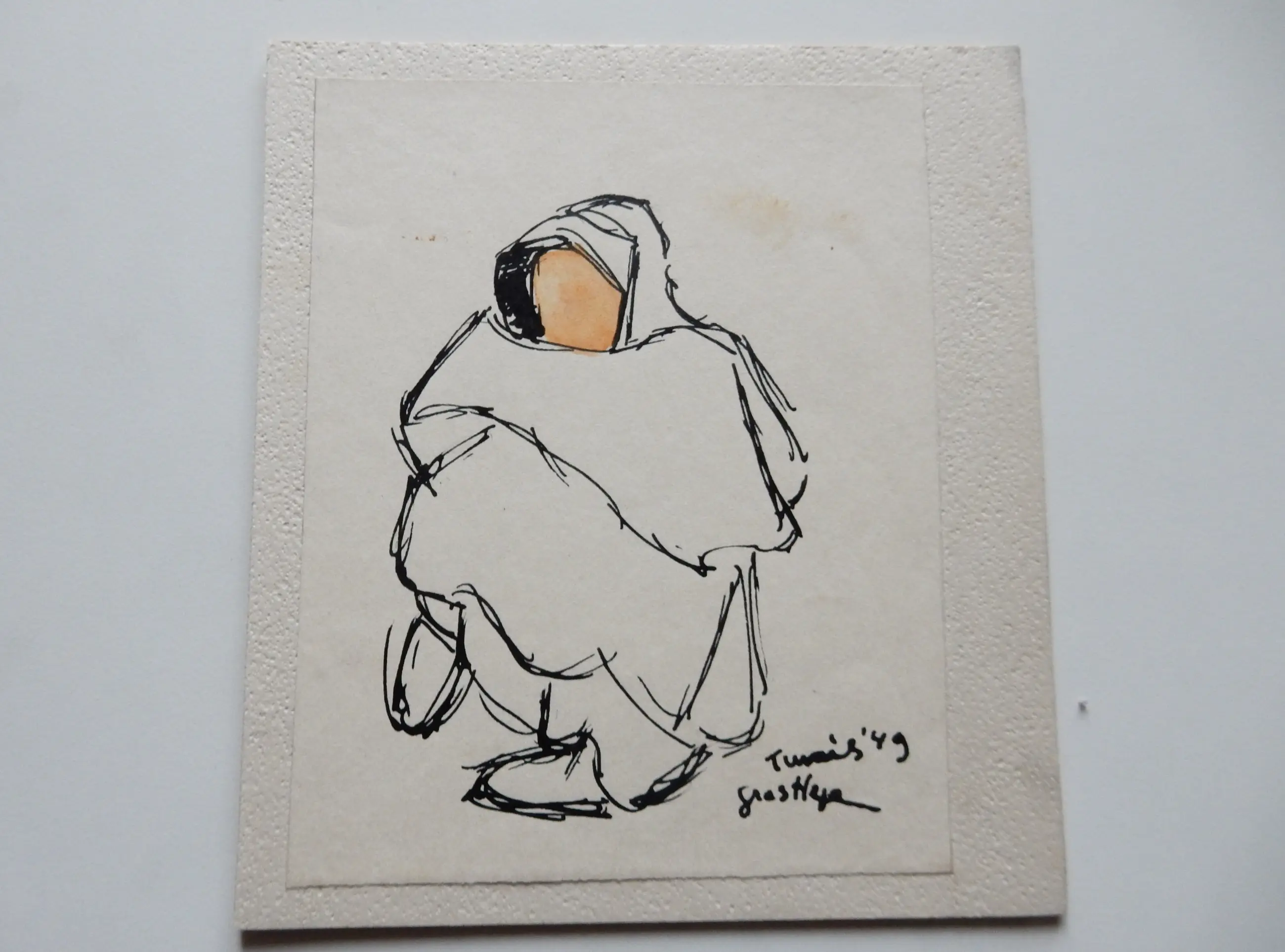 In prima conditie, twee kleinste tekeningen zijn gemonteerd op een stukje karton