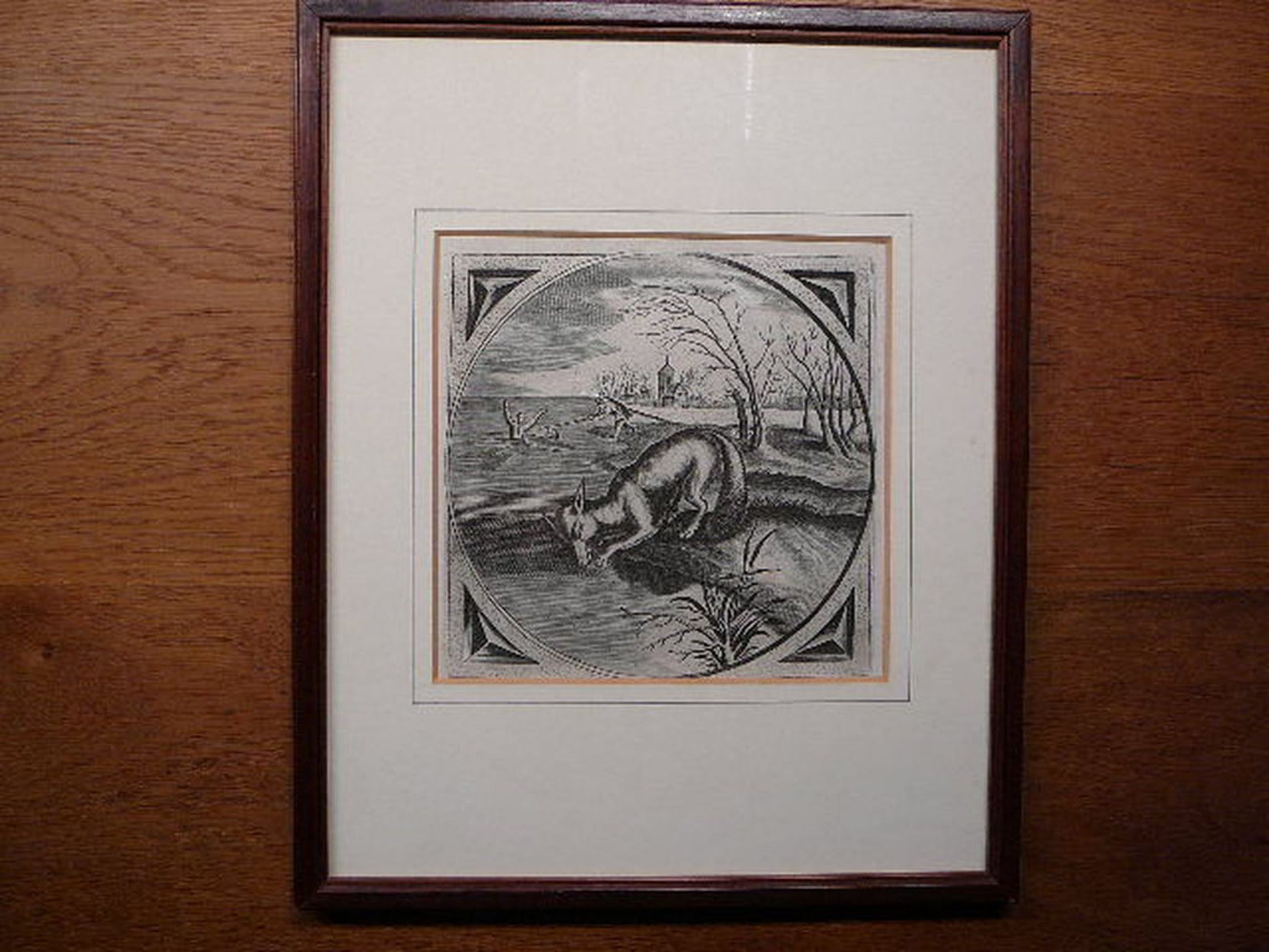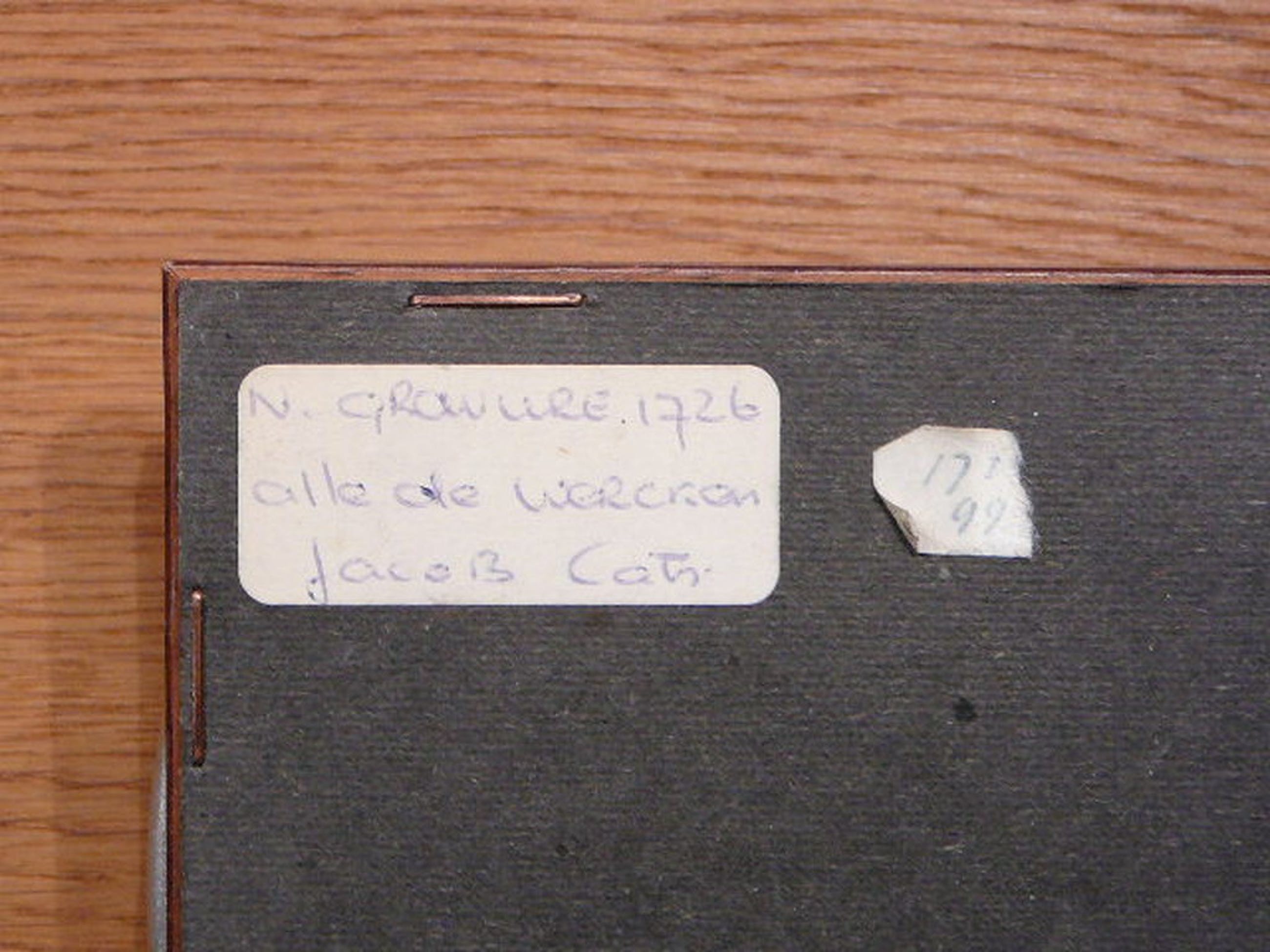 Nr 171-99 staat op achterkant vermeld. Netjes ingelijsd in houten lijstje.