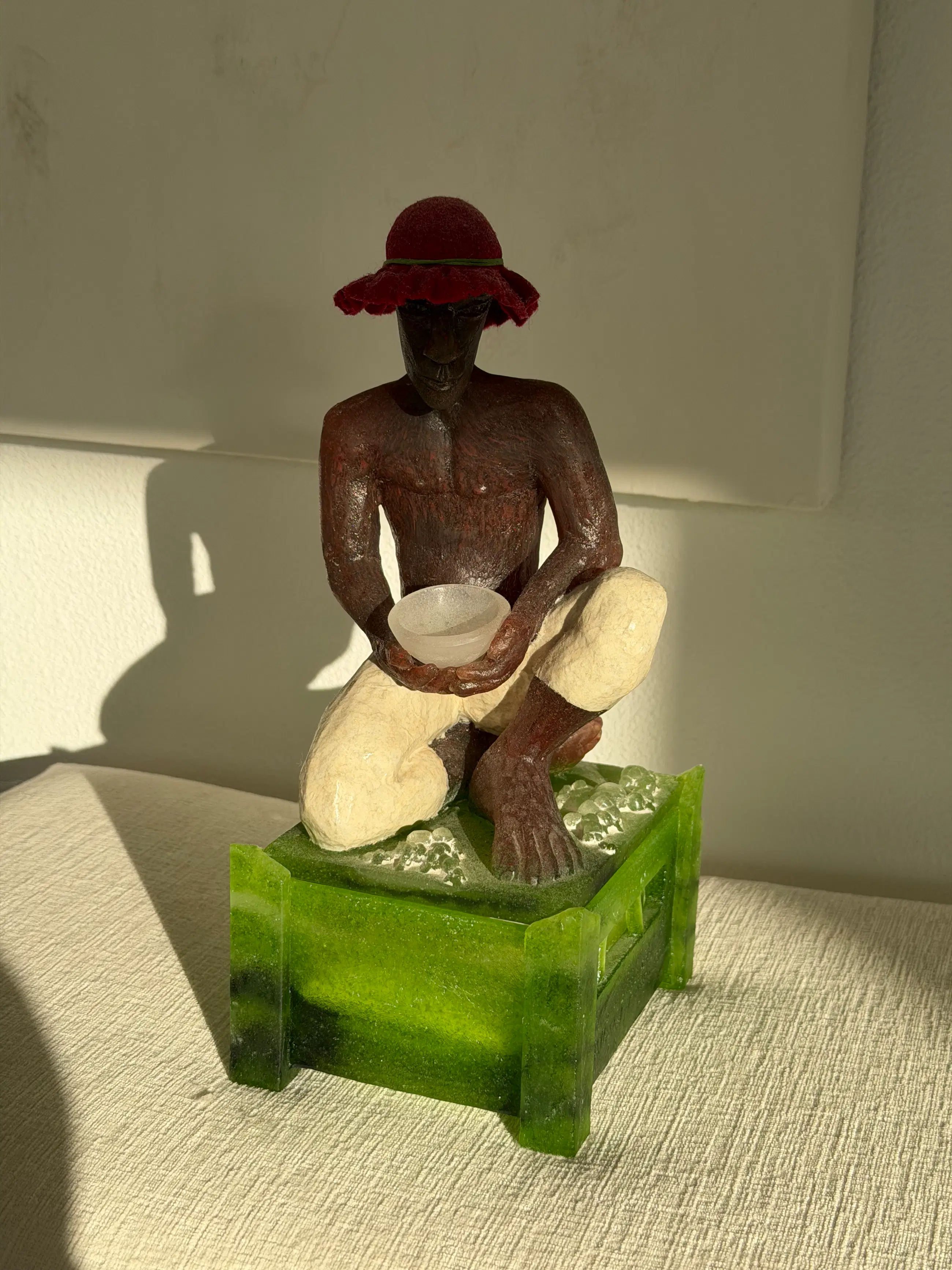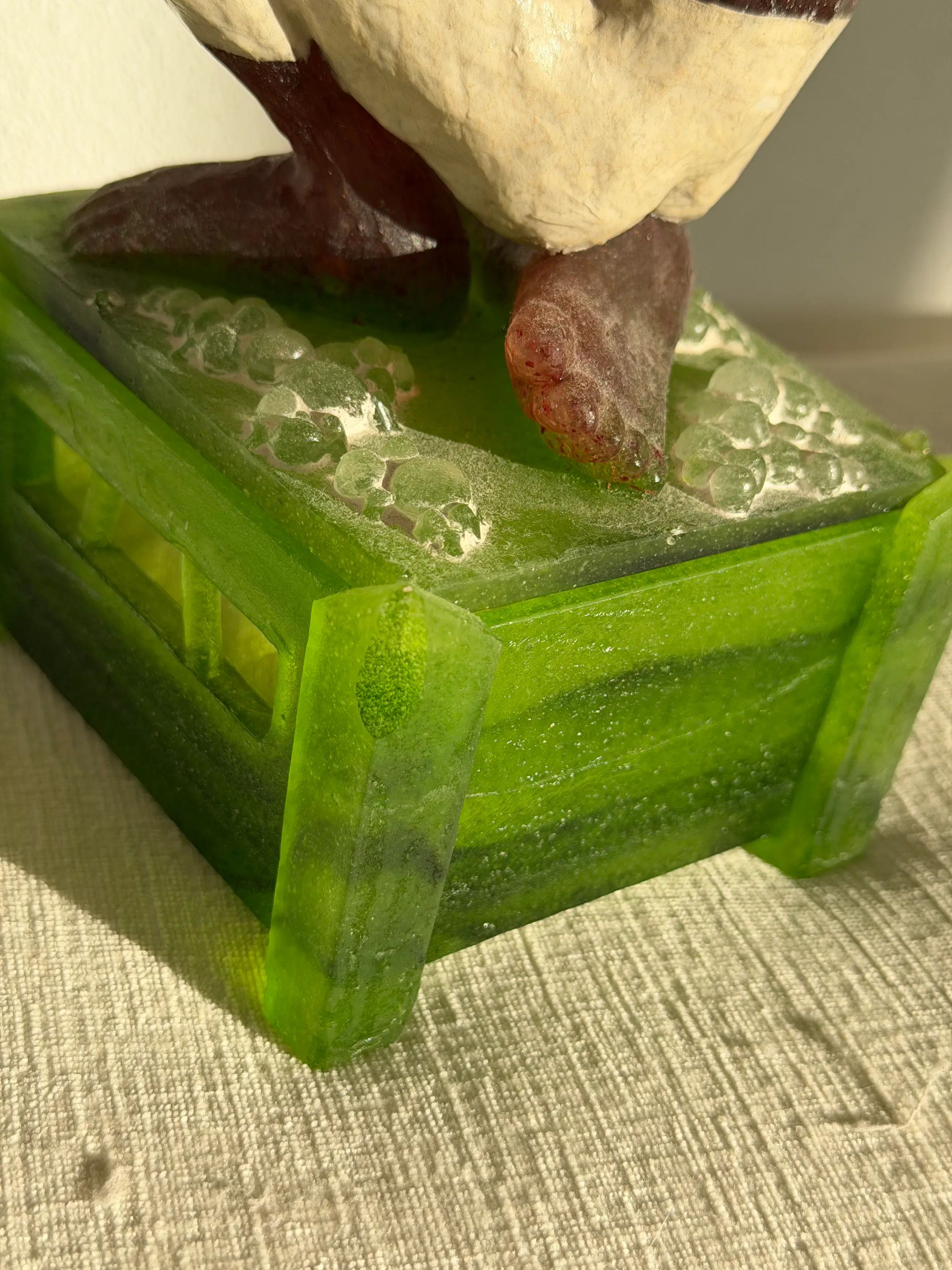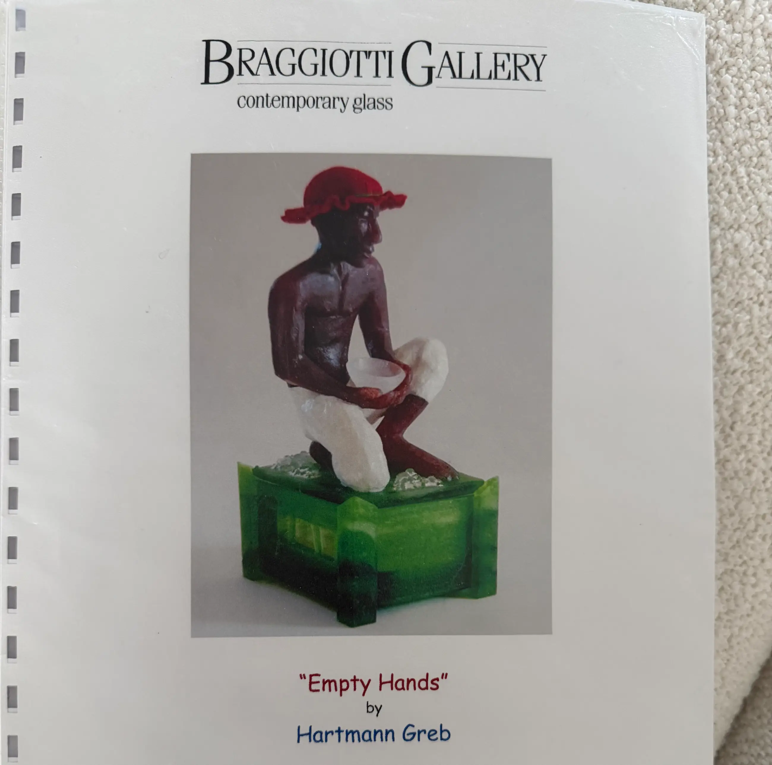 Kunstobject Empty Hands door Hartmann Greb. Cast glass, textiel and buttons. 1 beschadiging op het groen zie foto.